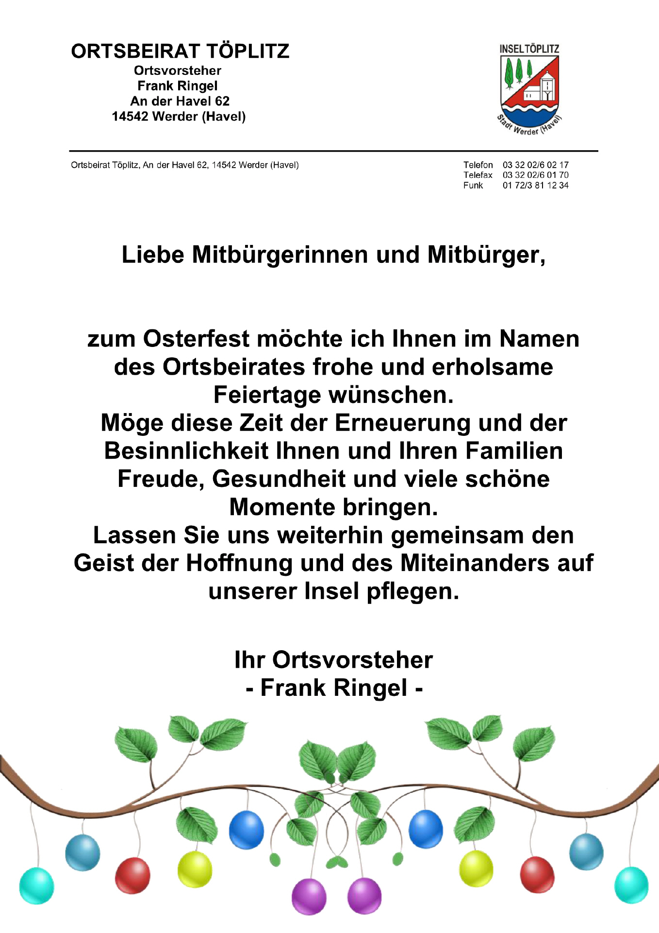 -Ortsvorsteher Insel Töplitz-