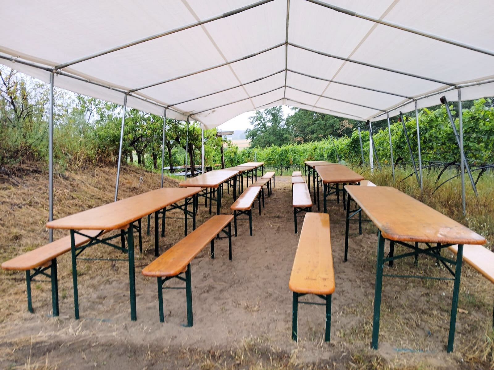 Das Wetter am Samstag, mit sehr viel Regen, meinte es nun ausgerechnet zum Fest nicht so gut. Aber man kann in der Besenwirtschaft sitzen oder auch draußen auf dem Weinberg unterm Zelt verweilen, bei einem Glas Wein das Ambiente zwischen den Reben sowie die Aussicht genießen.