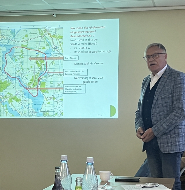 Für den Ortsteil Töplitz wurde das Projekt „Umbau des Inselzentrums auf dem Dorfplatz zu einem modernen Bürgerhaus“ eingereicht. Die geplanten Gesamtkosten belaufen sich auf rund 1 Million Euro, wobei eine Förderung in Höhe von ca. 740.000 Euro beantragt wurde.