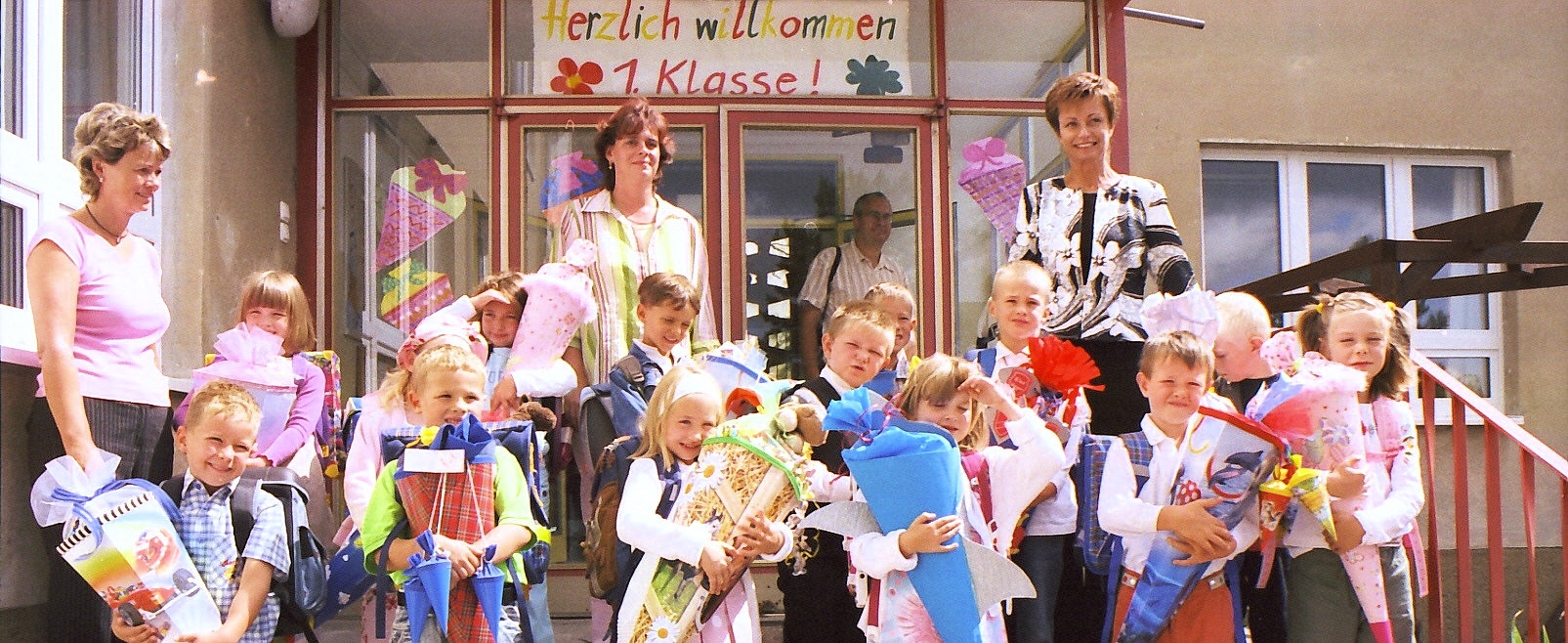 Bild von der Einschulung 2005 an der Inselstunde Töplitz. Die Feierlichkeiten fanden damals noch im Saal vom ehemaligen "Spezialbau" (Spezi) statt. Anschließend ging es mit einem Kremser der Familie Wagner aus Leest weiter zur Inselschule, zu den Schultüten.
