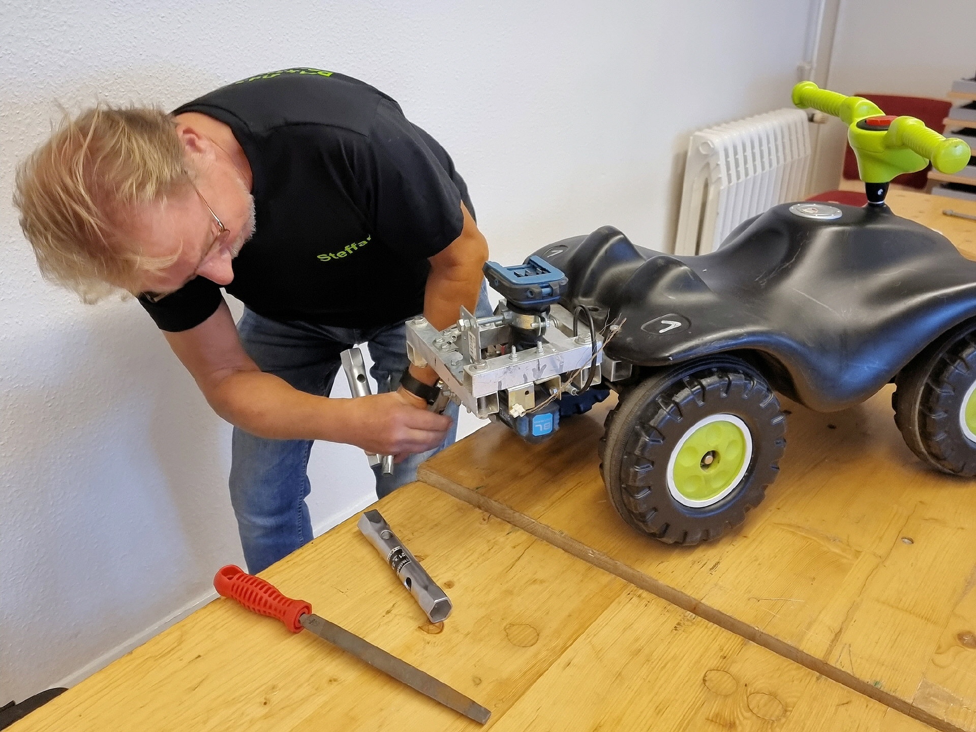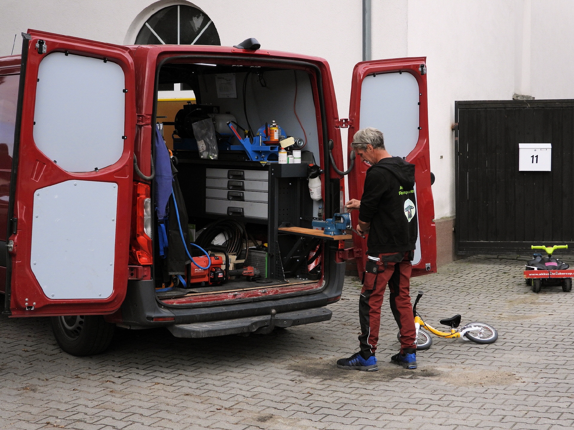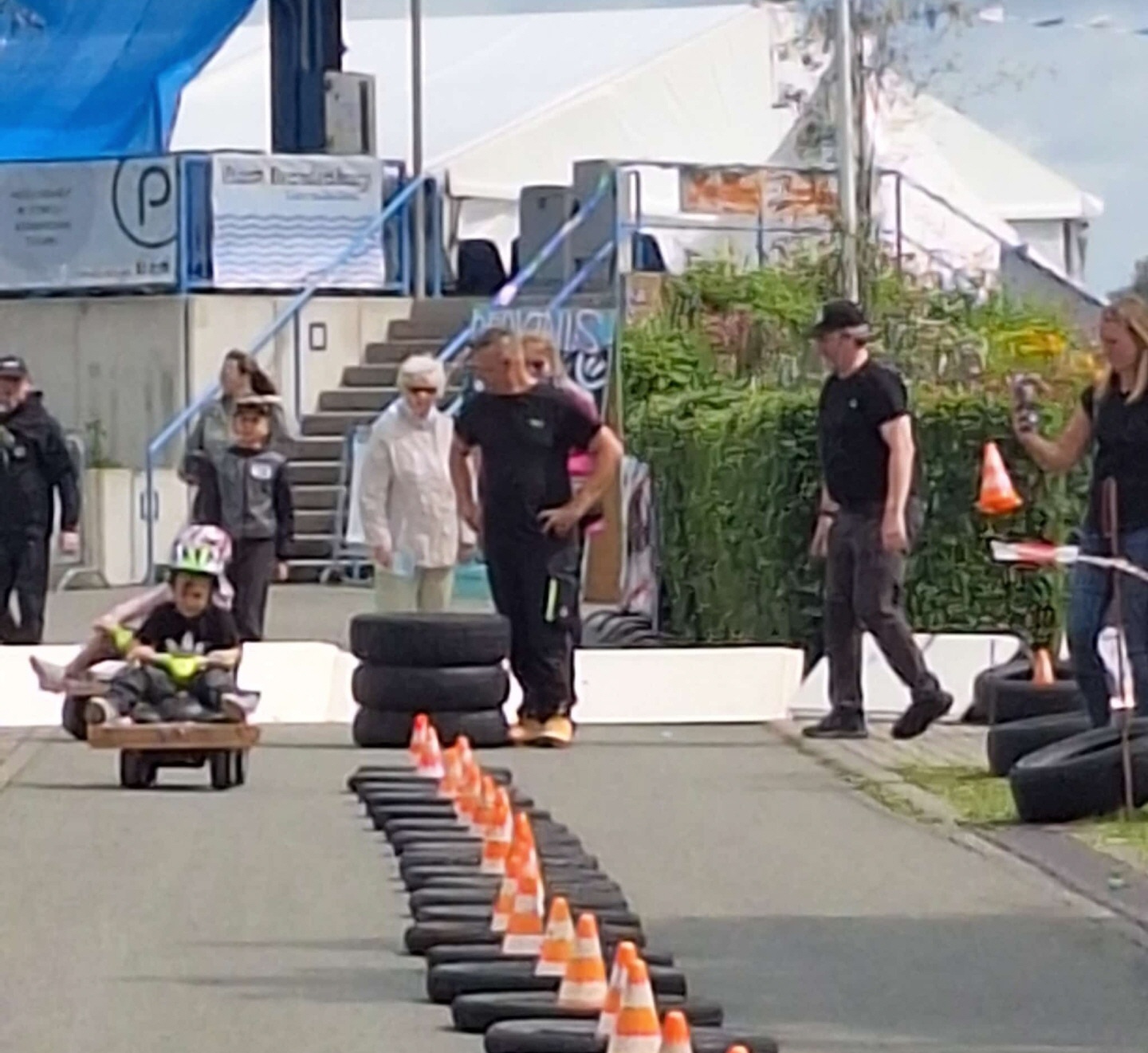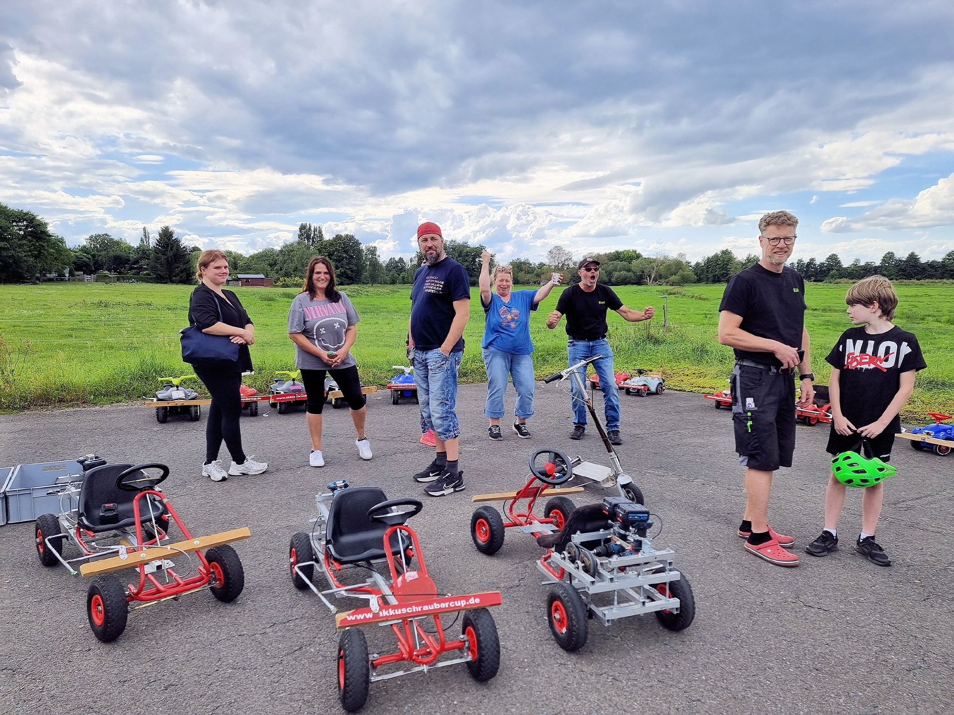 Neben den Mitgliedern und Aktiven waren auch einige Gäste anwesend, darunter junge Familien mit Kindern, die zuschauen, mitbasteln und letztendlich die reparierten, neu aufgebauten und instandgesetzten Fahrzeuge testen konnten. Den Kindern hat es großen Spaß gemacht, mit Mama, Papa oder auch Oma und Opa zu basteln und anschließend auf der Rennstrecke, dem Parkplatz in der Straße zur Fähre, die Reifen qualmen zu lassen.