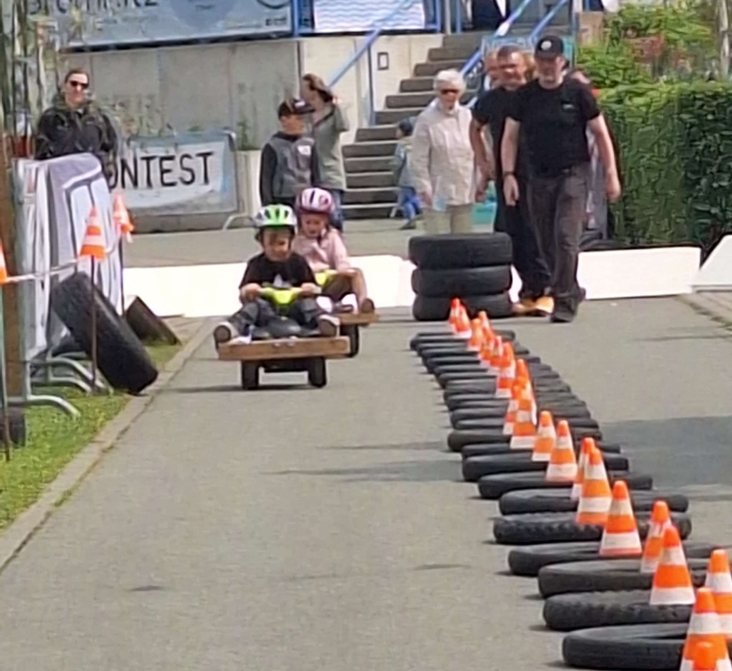 In den Startklassen BobbyCar, BigBobby und KettCar ging es bei den spannenden Rennen um Minuten und Sekunden, denn es warteten die begehrten Pokale und Medaillen. Neu beim Rennen war die Klasse Eigenbauten, in der selbstkreierte Fahrzeuge als Showeinlage vorgeführt wurden.