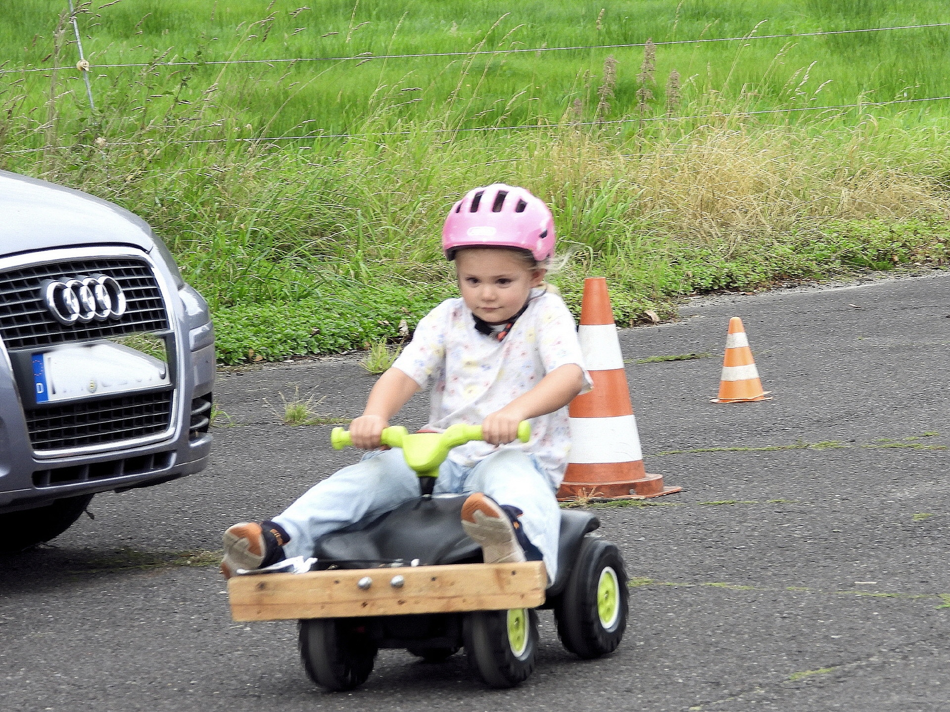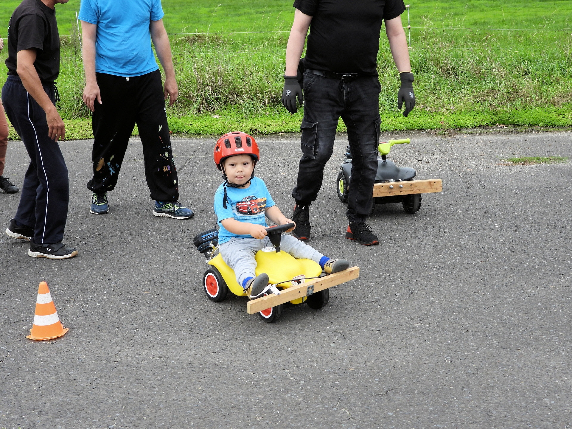 Die BobbyCar-Klasse und die BigBobby-Klasse waren gut besucht, und auch bei den KettCars herrschte großer Andrang. Neu im Renn-Programm war die Klasse "Eigenbauten-Sonderfahrzeuge", in der die Bastler ihrer Kreativität freien Lauf ließen.