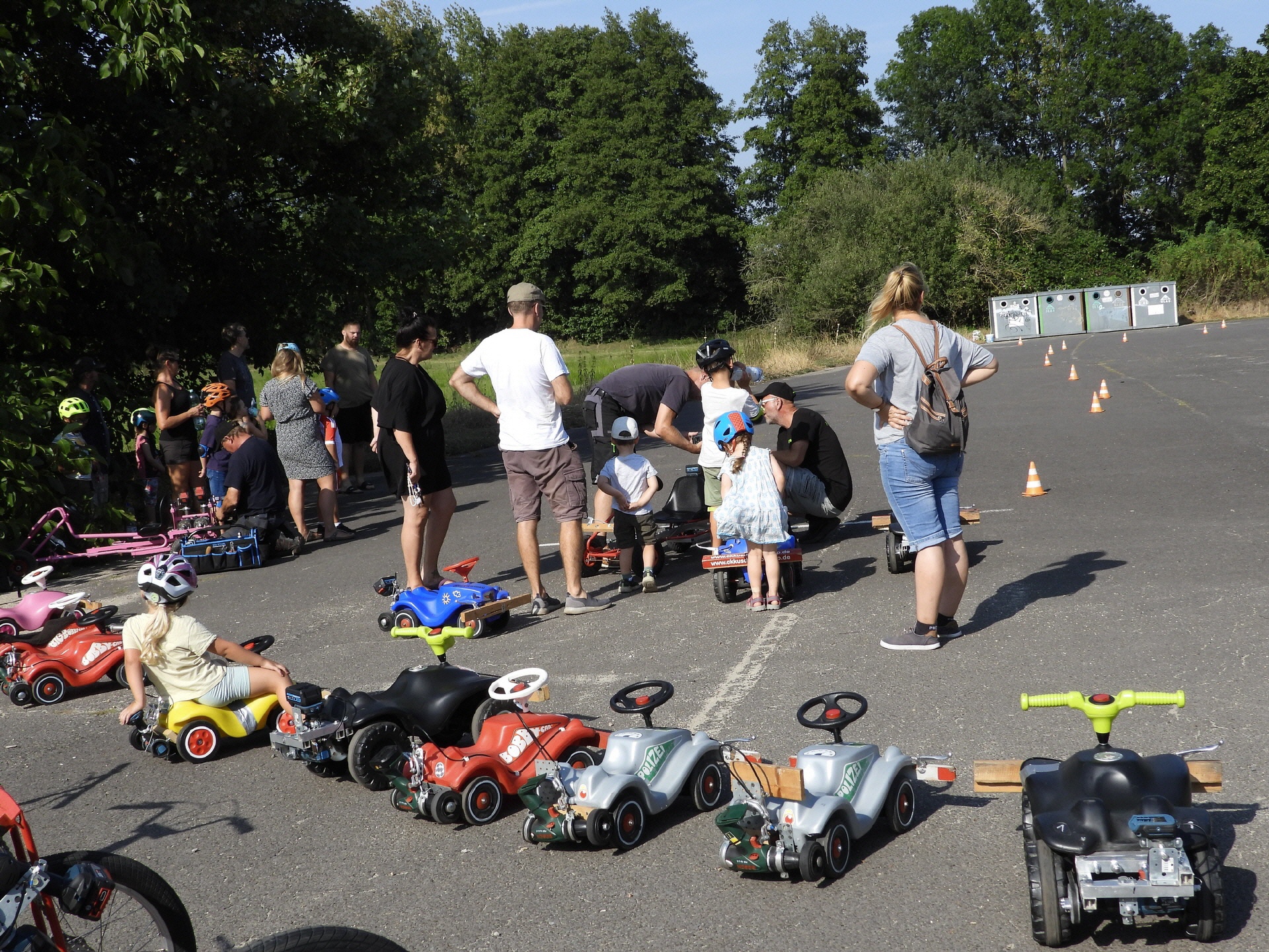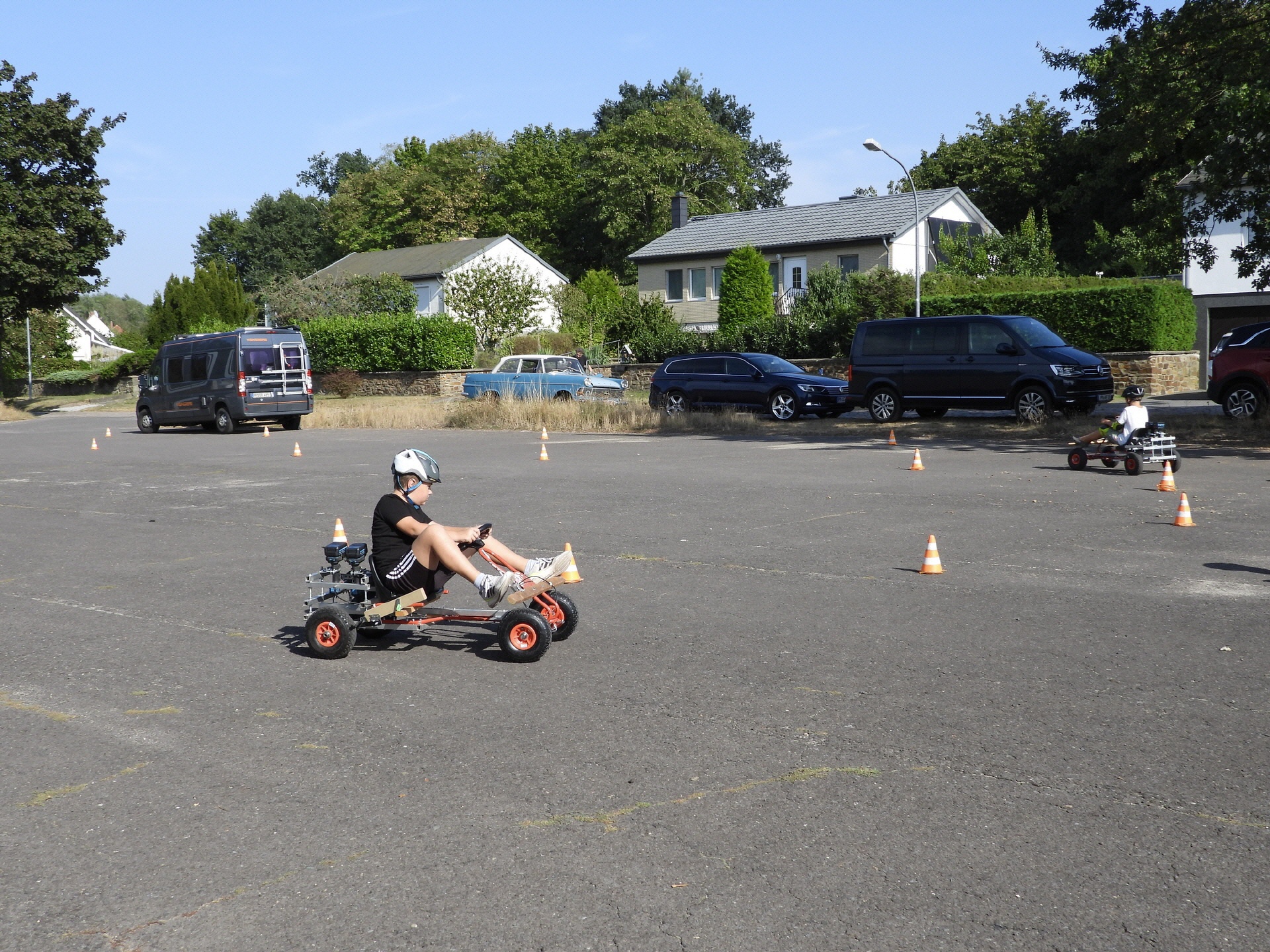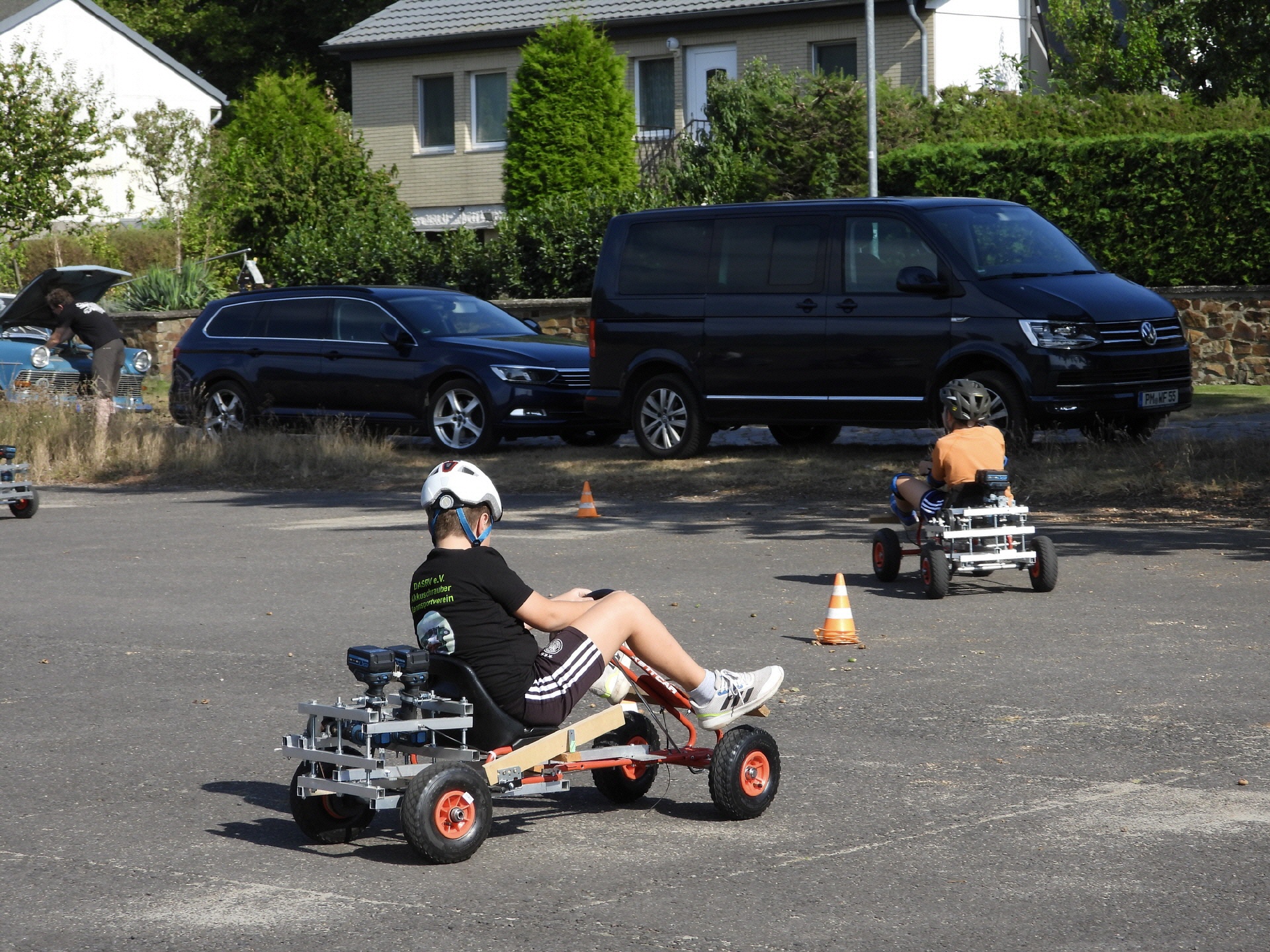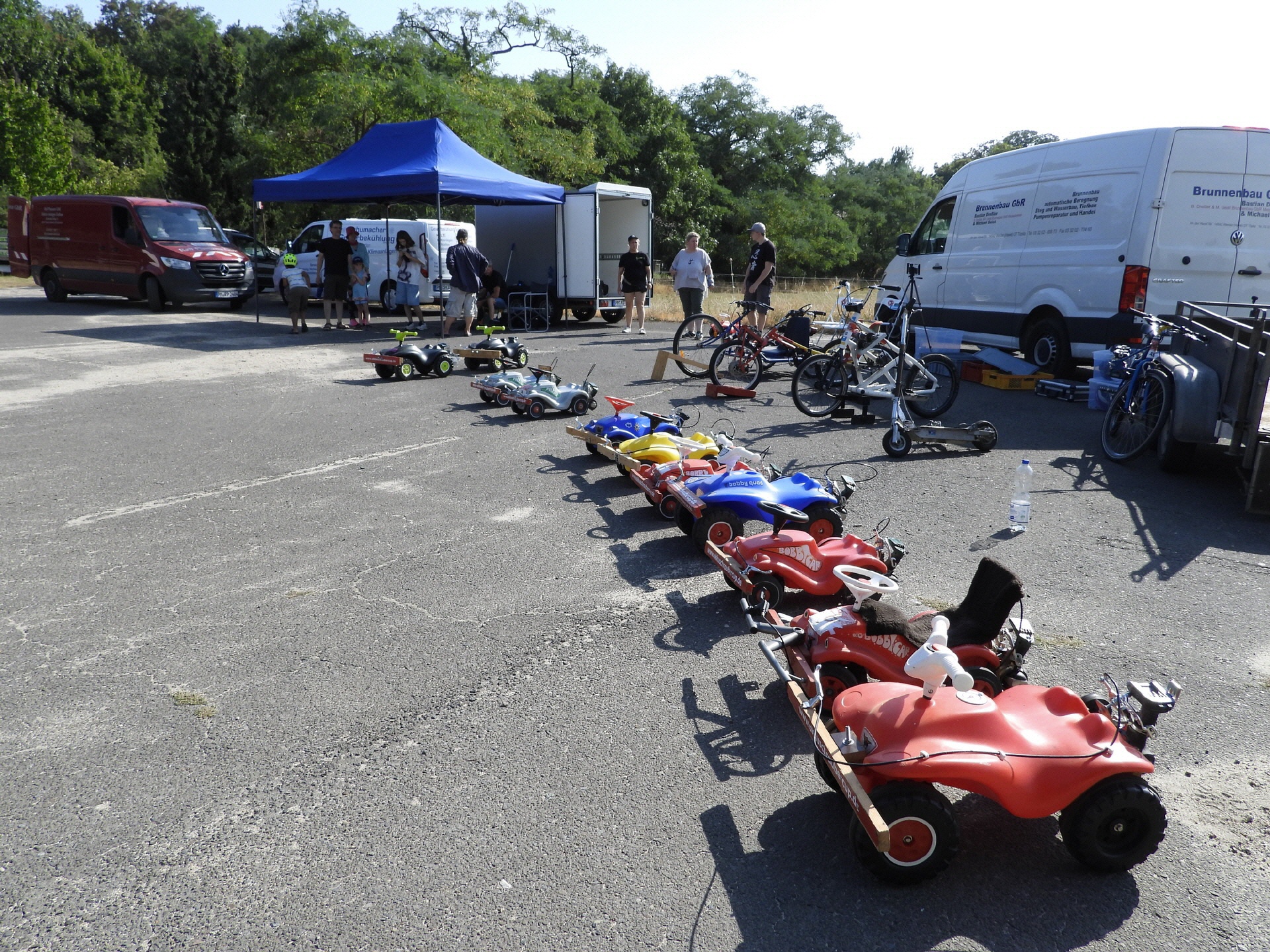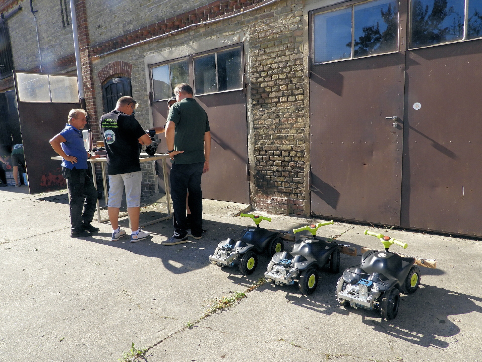 Erfreulicherweise fanden sich, neben den Vereinsmitgliedern, Bastlern und Schraubern, zahlreiche Gäste sowie Familien mit Kindern am Rennplatz ein und nutzten die Gelegenheit zum Testen der Technik. Die Kids waren begeistert und drehten auf dem Platz Runden um Runden.