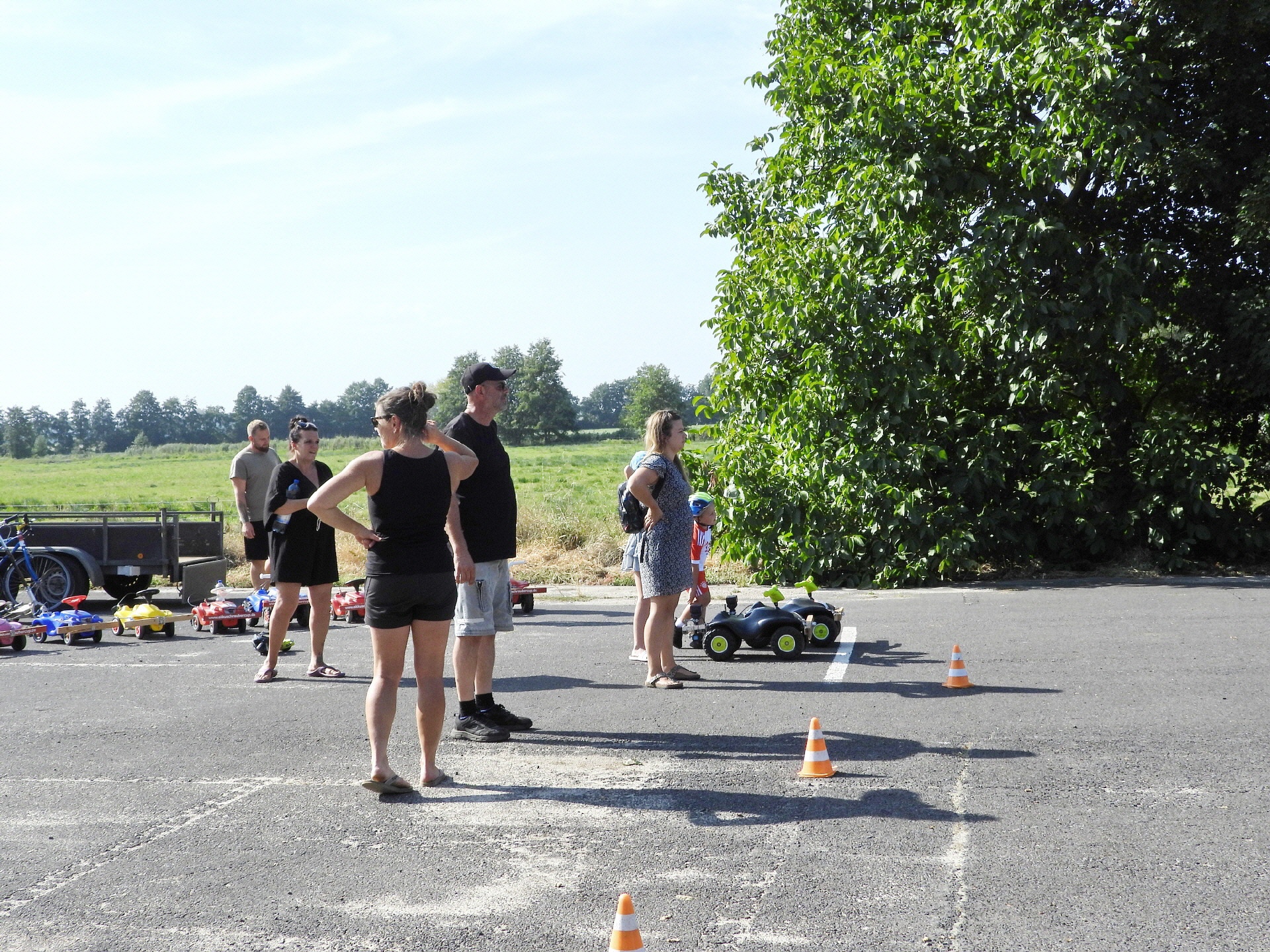 Bei der kleinsten Rennklasse (BobbyCars) kam sogar eine Familie mit einem eigenen „Rohling“. Eigentlich war nur die Lenkung zu justieren und der Papa wollte sich ein paar Tricks abholen. Da der Akkuschrauberverein aber auch alte ausrangierte Fahrzeuge dabei hatte, wurde gemeinsam mit Papa und Sohn das mitgebrachte BobbyCar zur Rennmaschine umgerüstet. Nach knapp einer Stunde konnte der kleine Rennfahrer bereits seine ersten Runden fahren und die glücklichen Augen strahlten.