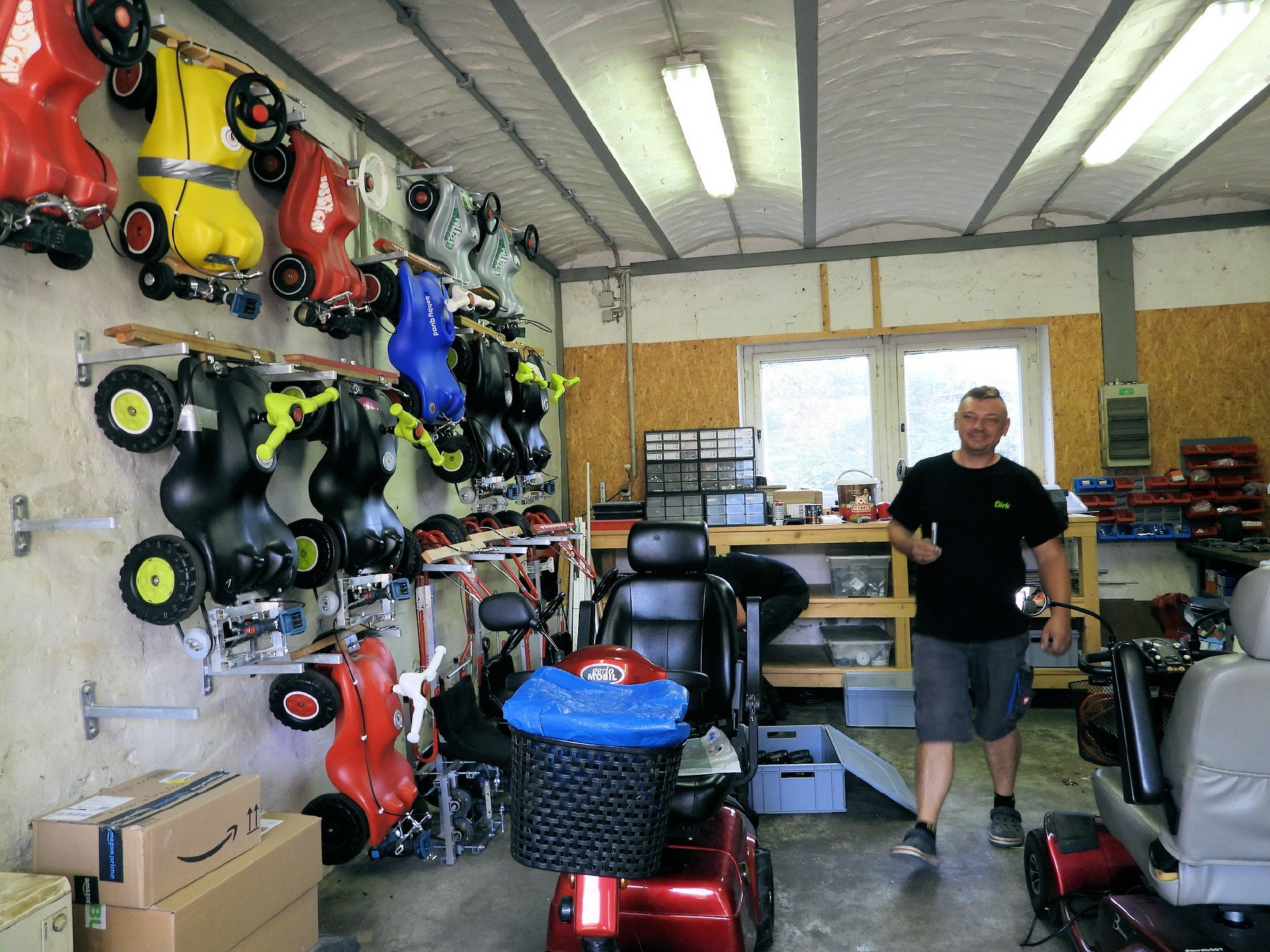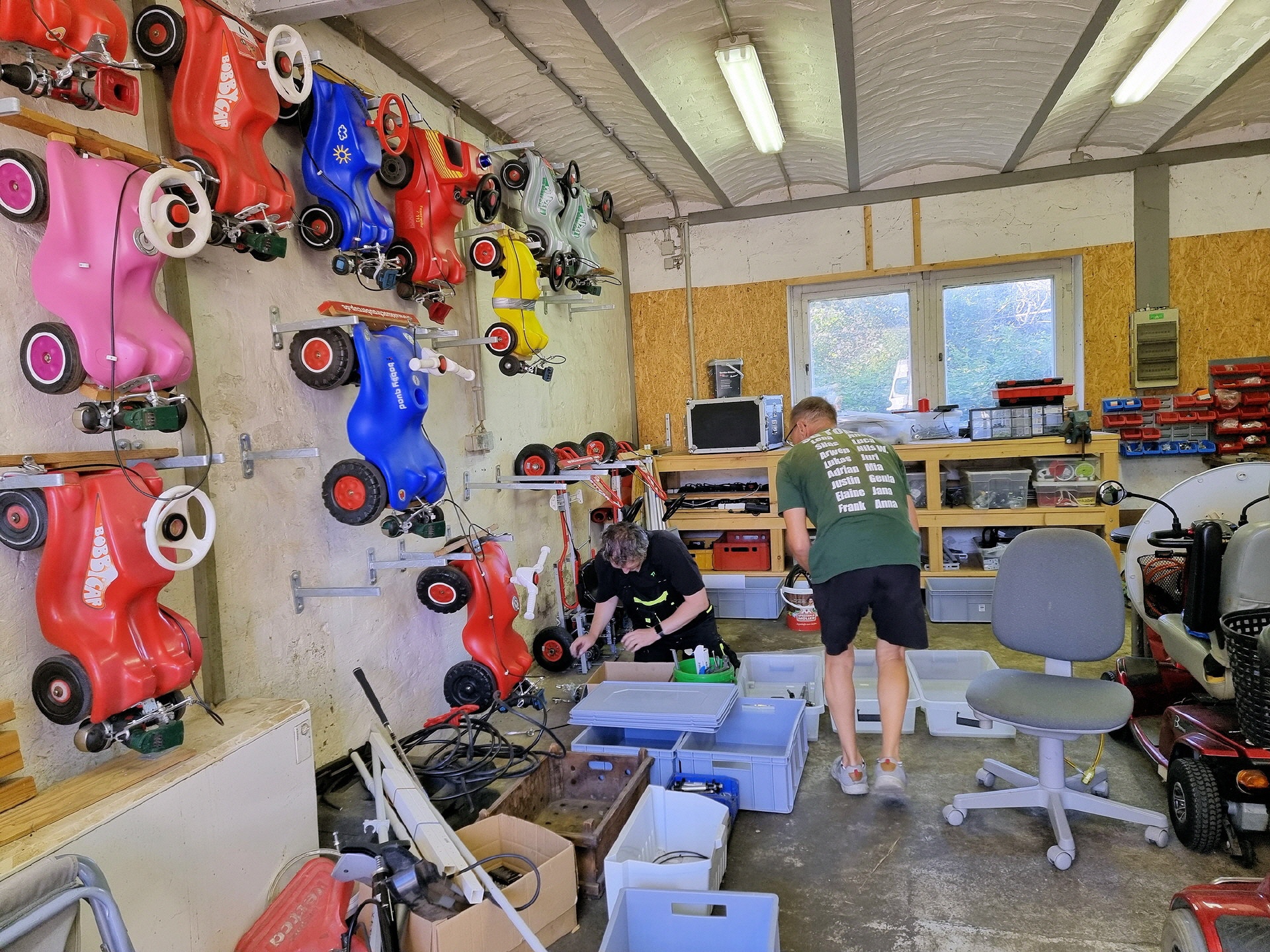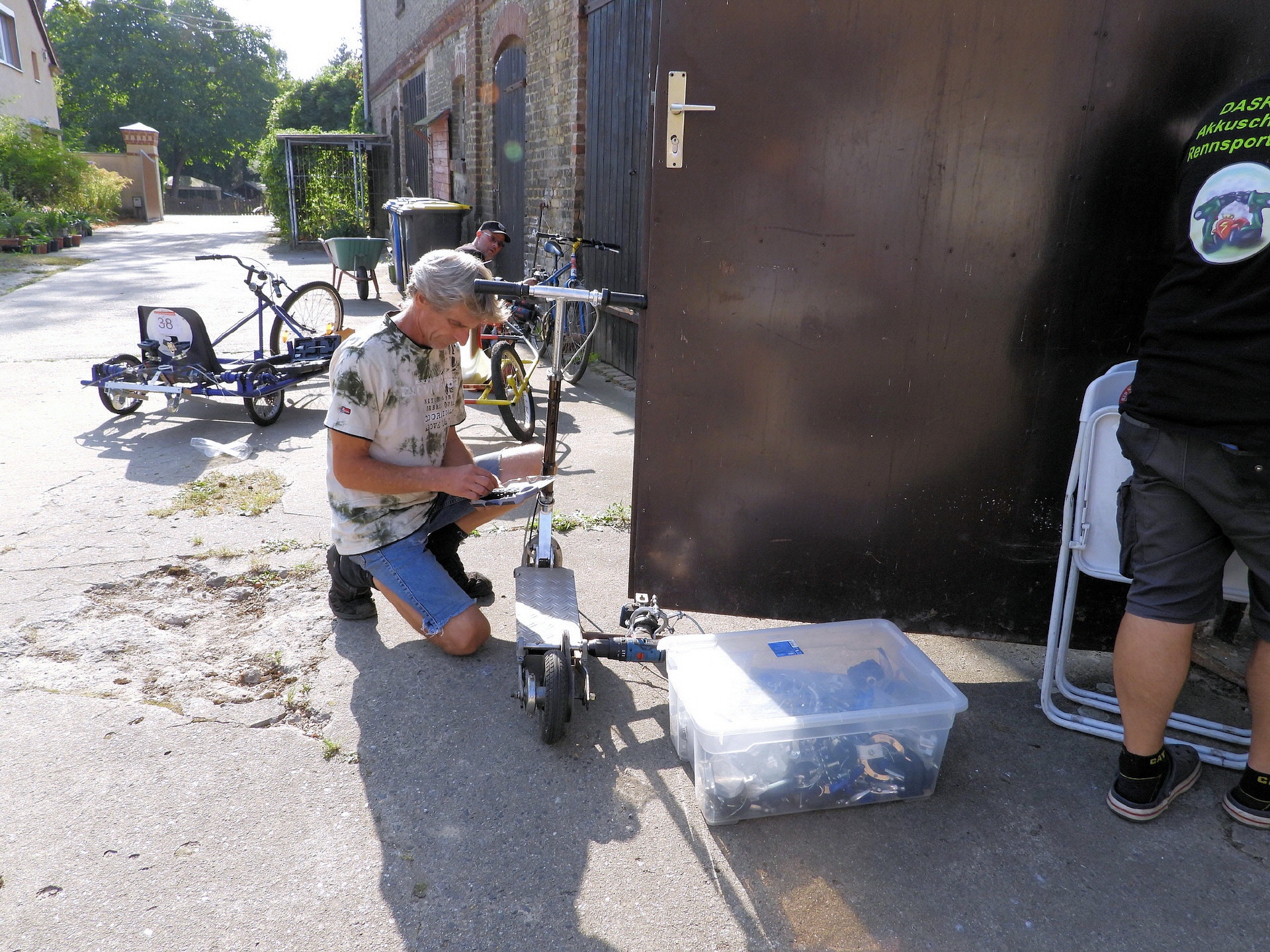 In der KettCar-Klasse standen umfangreiche Umbauarbeiten an. Nach 5 Jahren gaben die Vorderachsen nach und die Lenkungsteile sowie Vorderräder wurden ausgetauscht. Auch die Bremsanlage wurde optimiert. Hier war von Vorteil, dass „Bulli“ seinen kompletten Werkstattwagen mitgebracht hat.