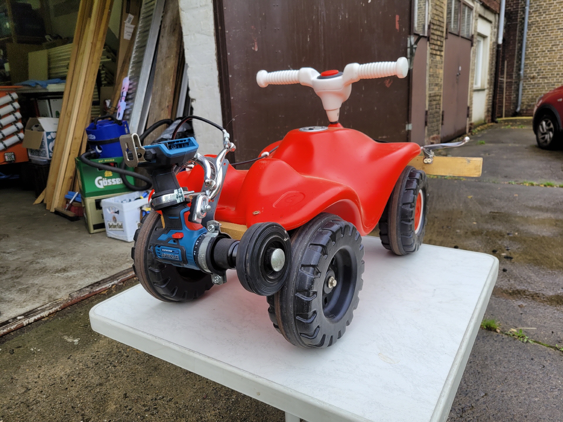 Antrieb: Akkuschrauber mit Reibrad - oder Keilriemenantrieb