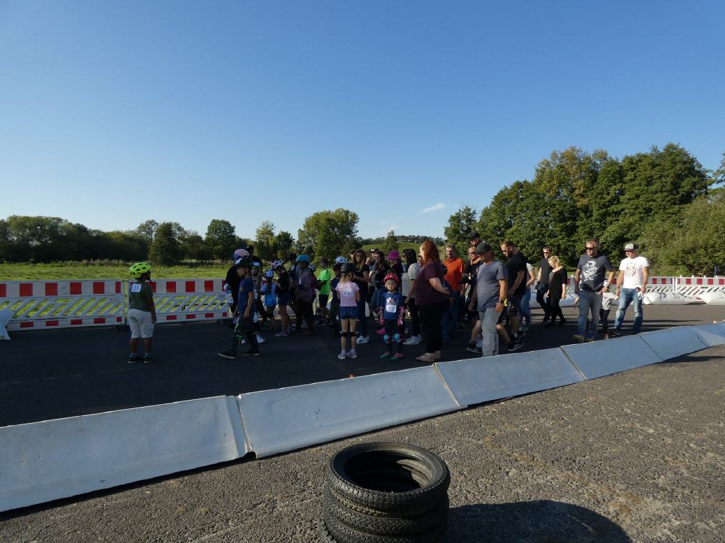 Auch diesmal ging es mit Bastian Dressler und den Aktiven zu Fuß auf die Rennstrecke, um Wichtiges zum Fahren auf dem Parcours zu erörtern.