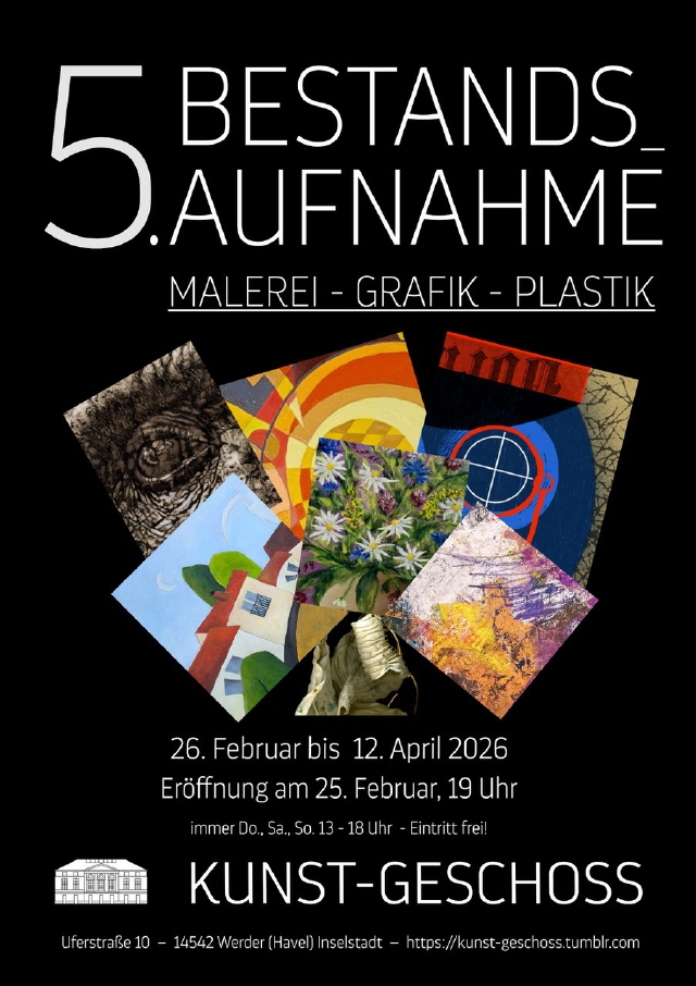 5. Bestandsaufnahme Malerei-Grafik-Plastik bis 12. April 2026, Donnerstag, Samstag, Sonntag, von 13-18 Uhr