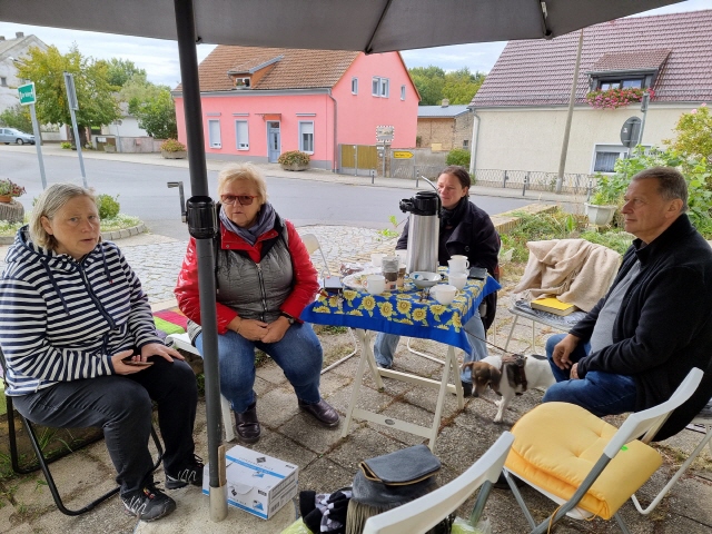 Direkt vor dem Töplitzer Einkaufsmarkt am Dorfplatz trifft man sich jeden Freitag in entspannter Runde von 9 bis 11 Uhr – ganz locker und ungezwungen zum Freitagsvormittagskaffee.