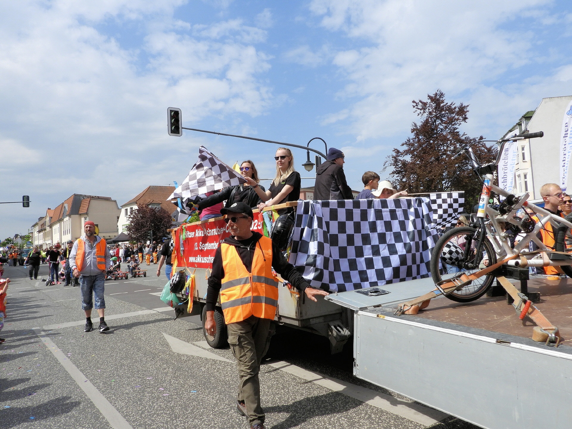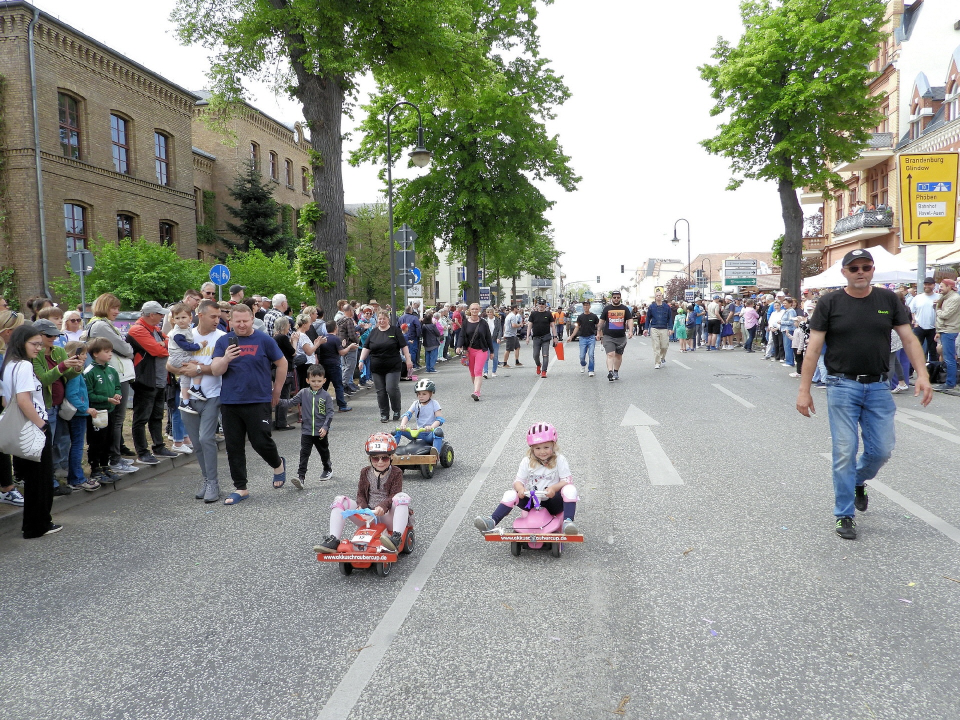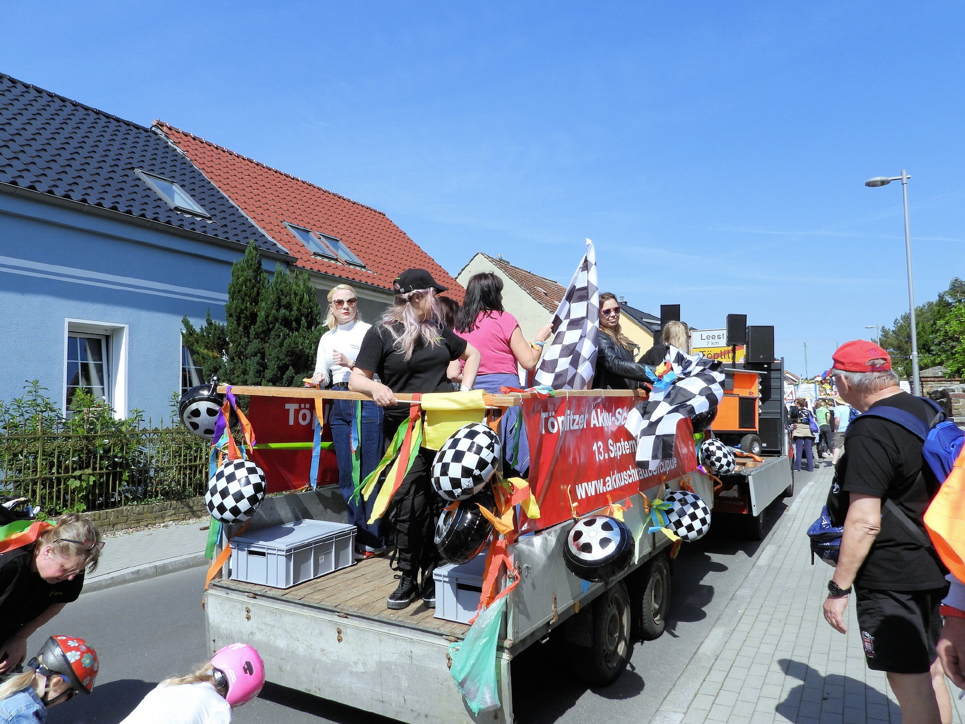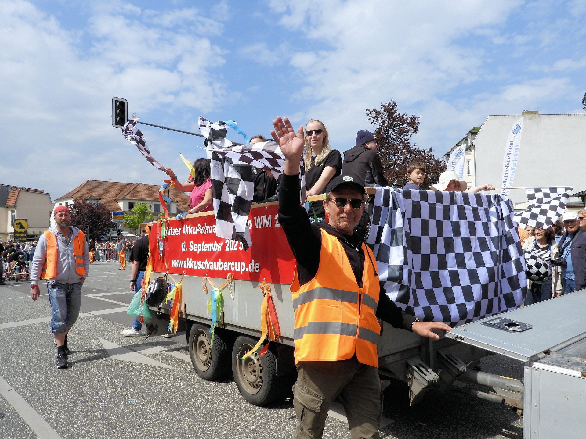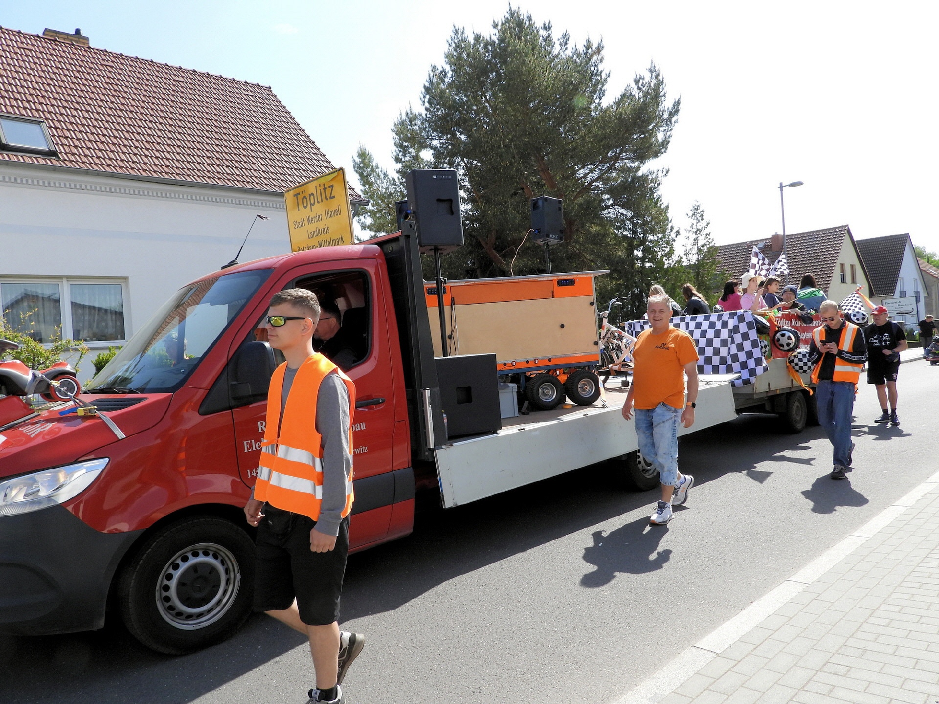 Angeführt wurde der Tross durch den "Töplitzer Inselsoundbollerwagen" mit DJ Oli und die auf dem Anhänger jubelnde Fangemeinde. Als Schluss folgten die Fahrer mit ihren Akkuschrauber-Boliden, ein Spass nicht nur für die Rennfahrer selbst sondern auch für die Zuschauer.