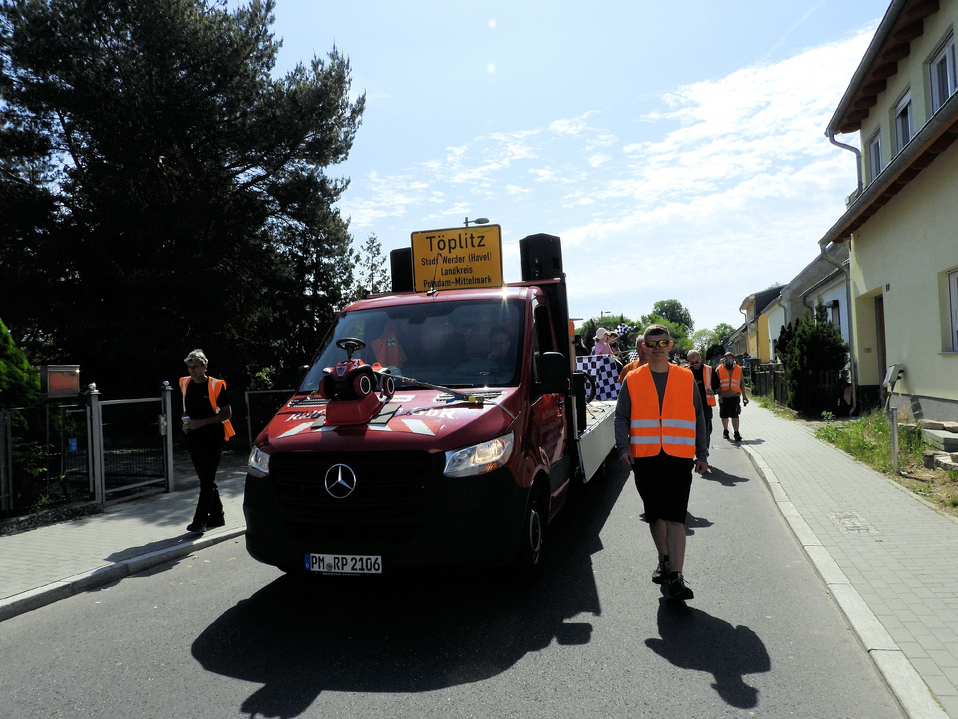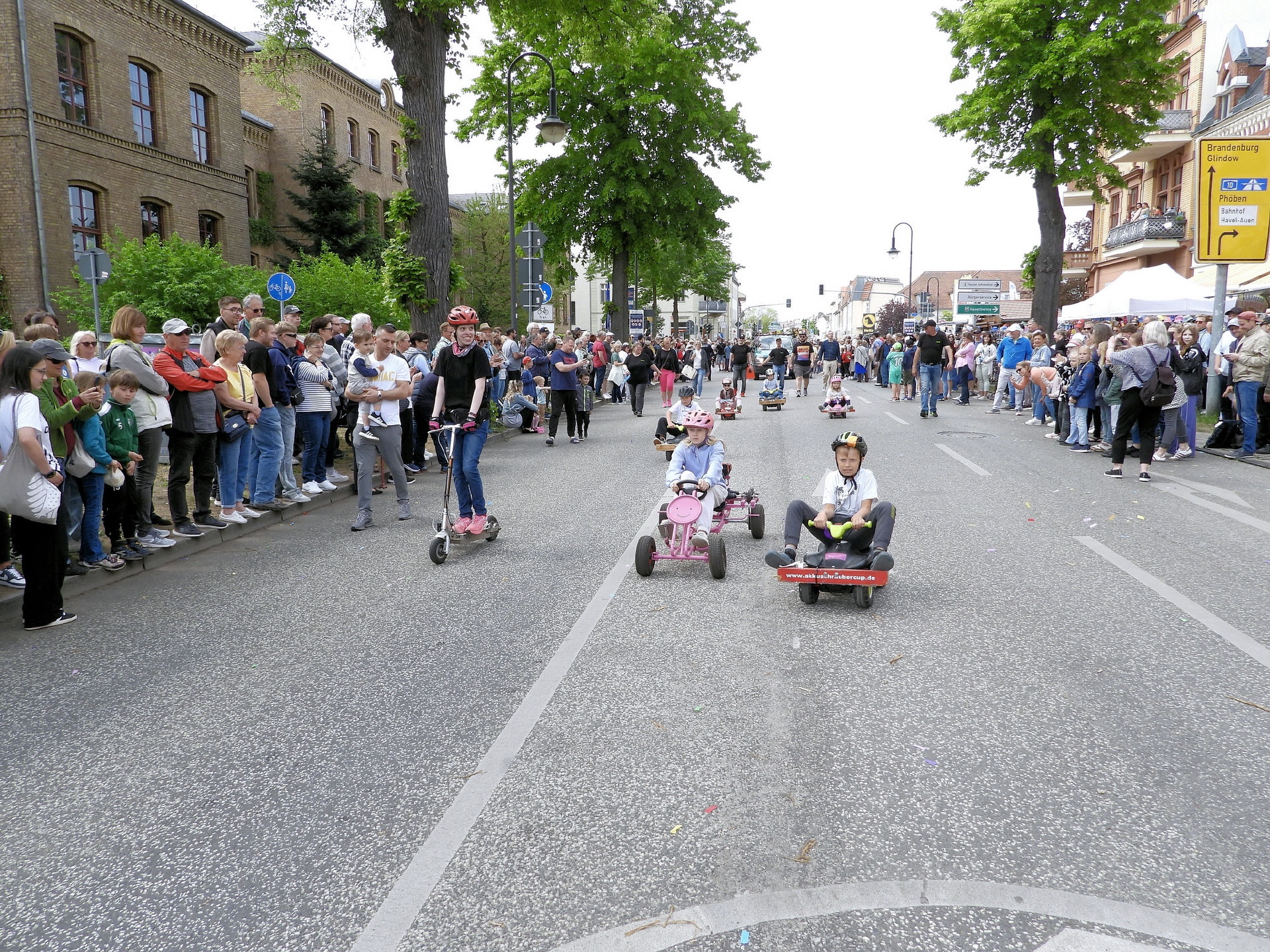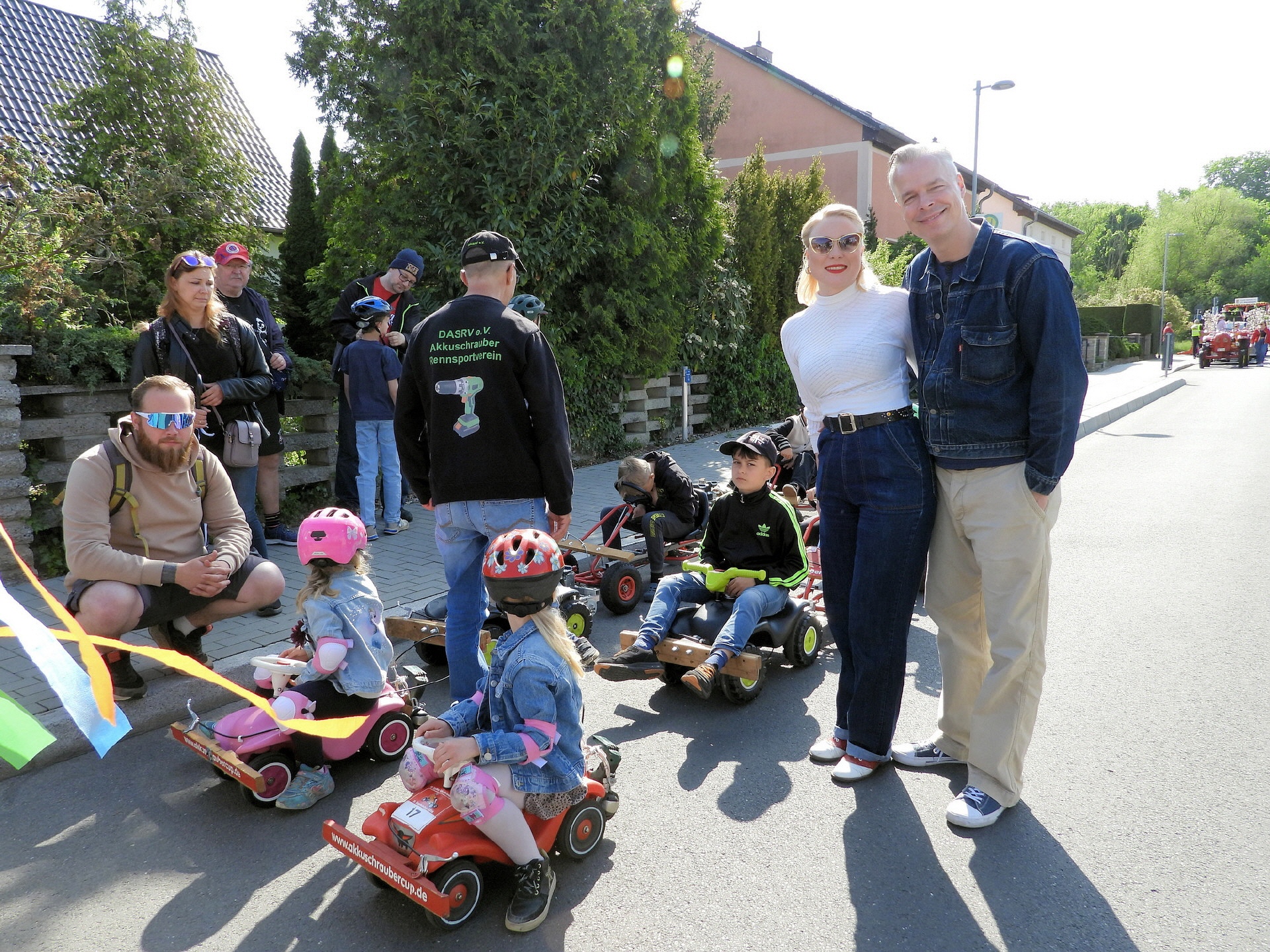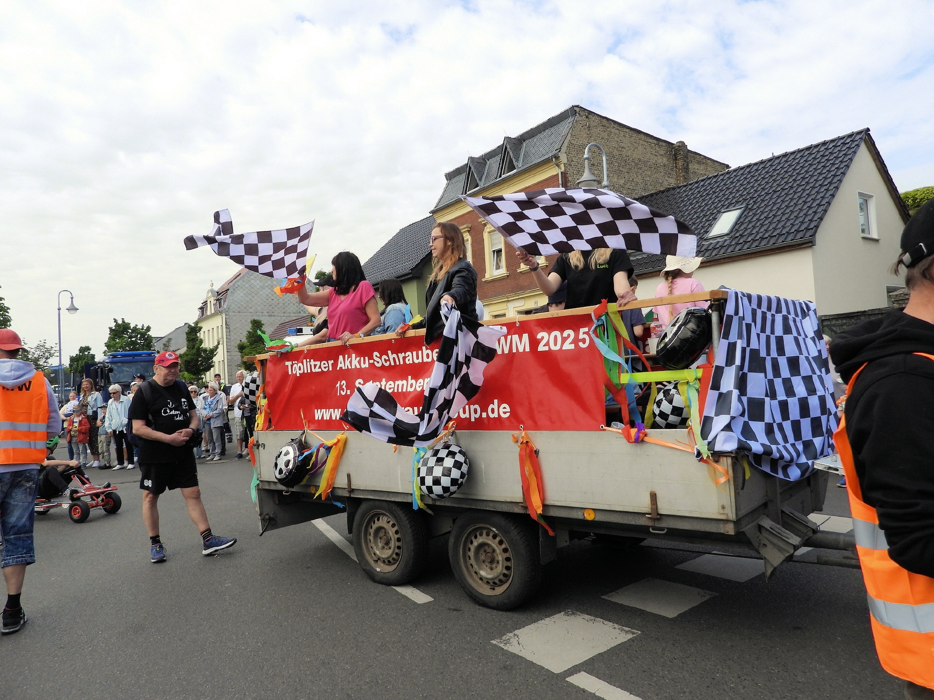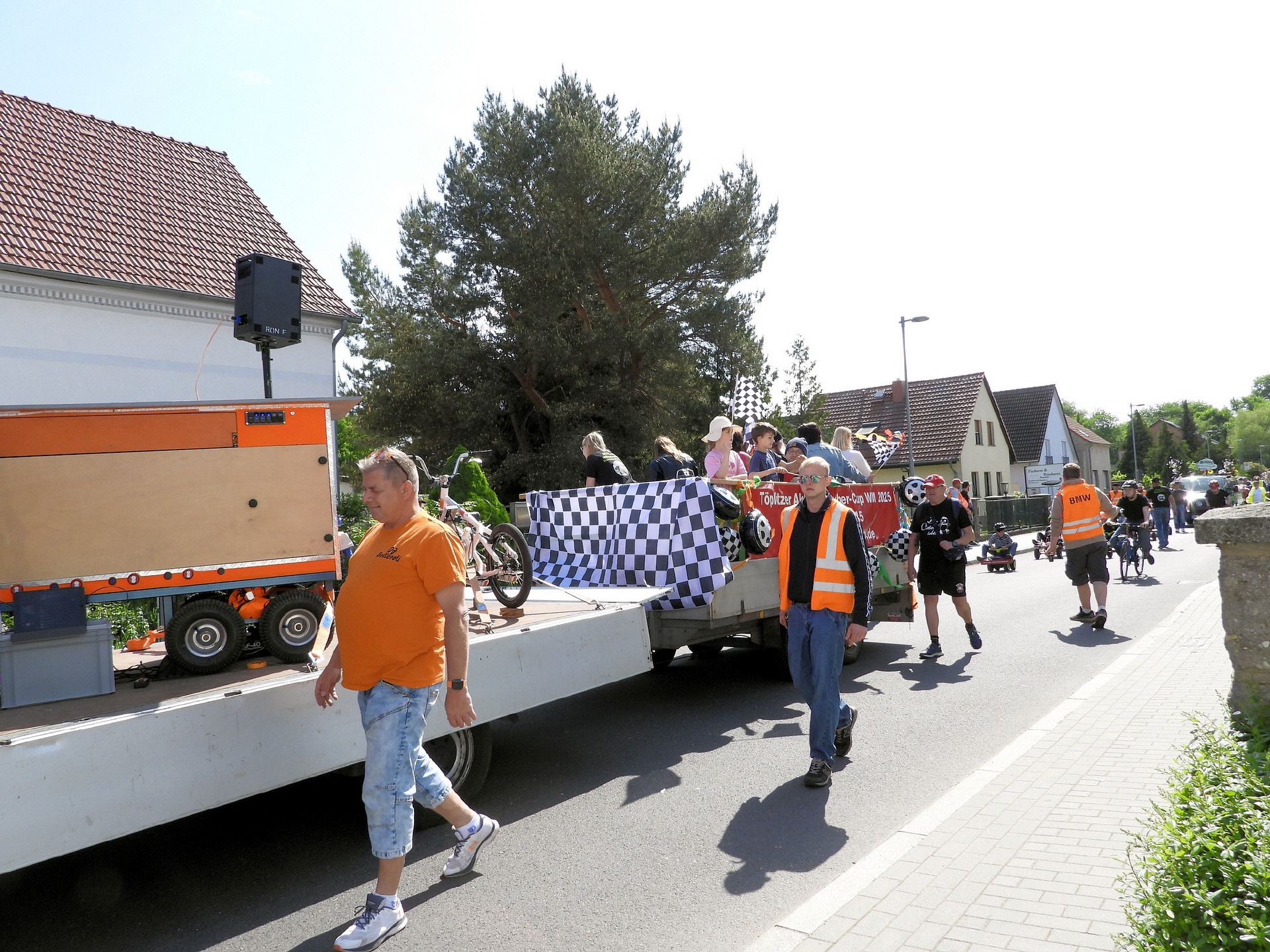 Angeführt wurde der Tross durch den "Töplitzer Inselsoundbollerwagen" mit DJ Oli und die auf dem Anhänger jubelnde Fangemeinde. Als Schluss folgten die Fahrer mit ihren Akkuschrauber-Boliden, ein Spass nicht nur für die Rennfahrer selbst sondern auch für die Zuschauer.