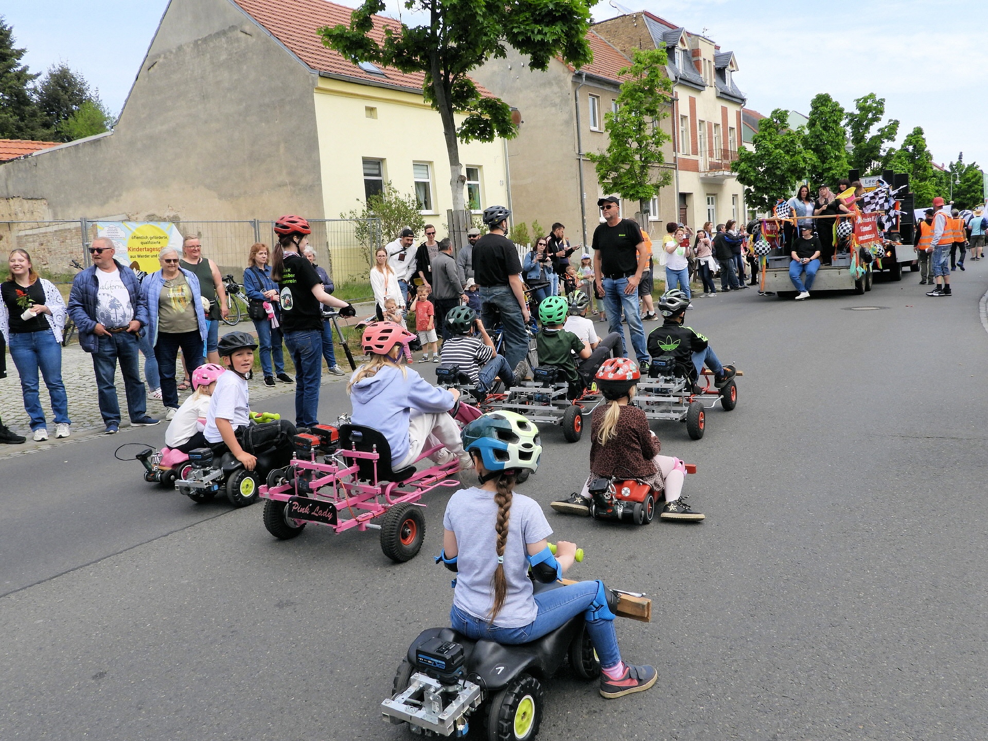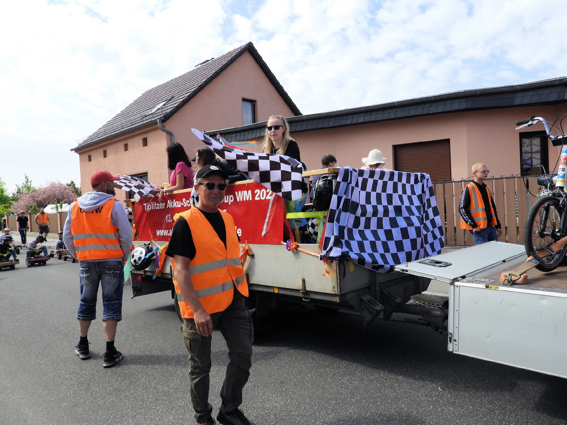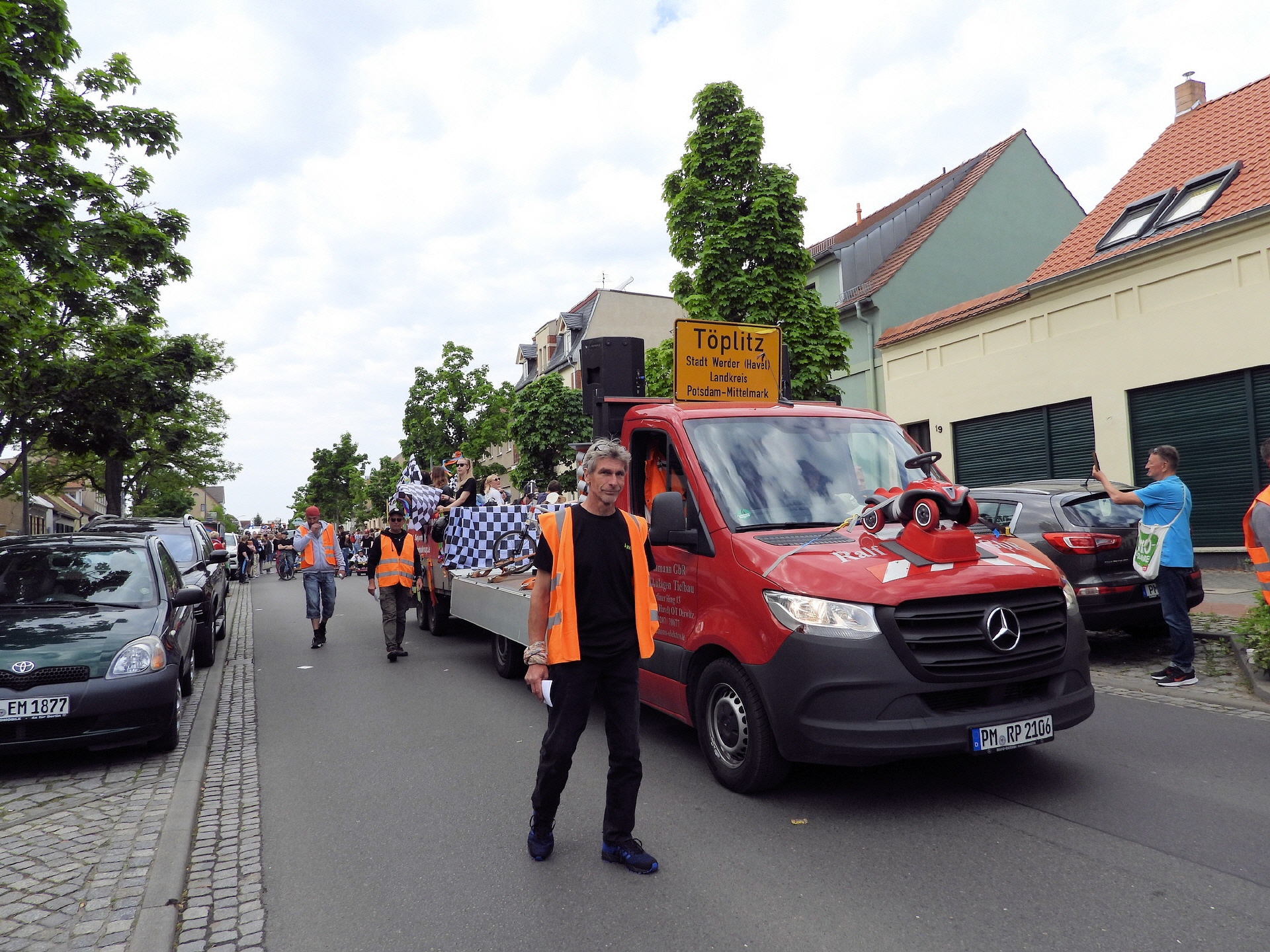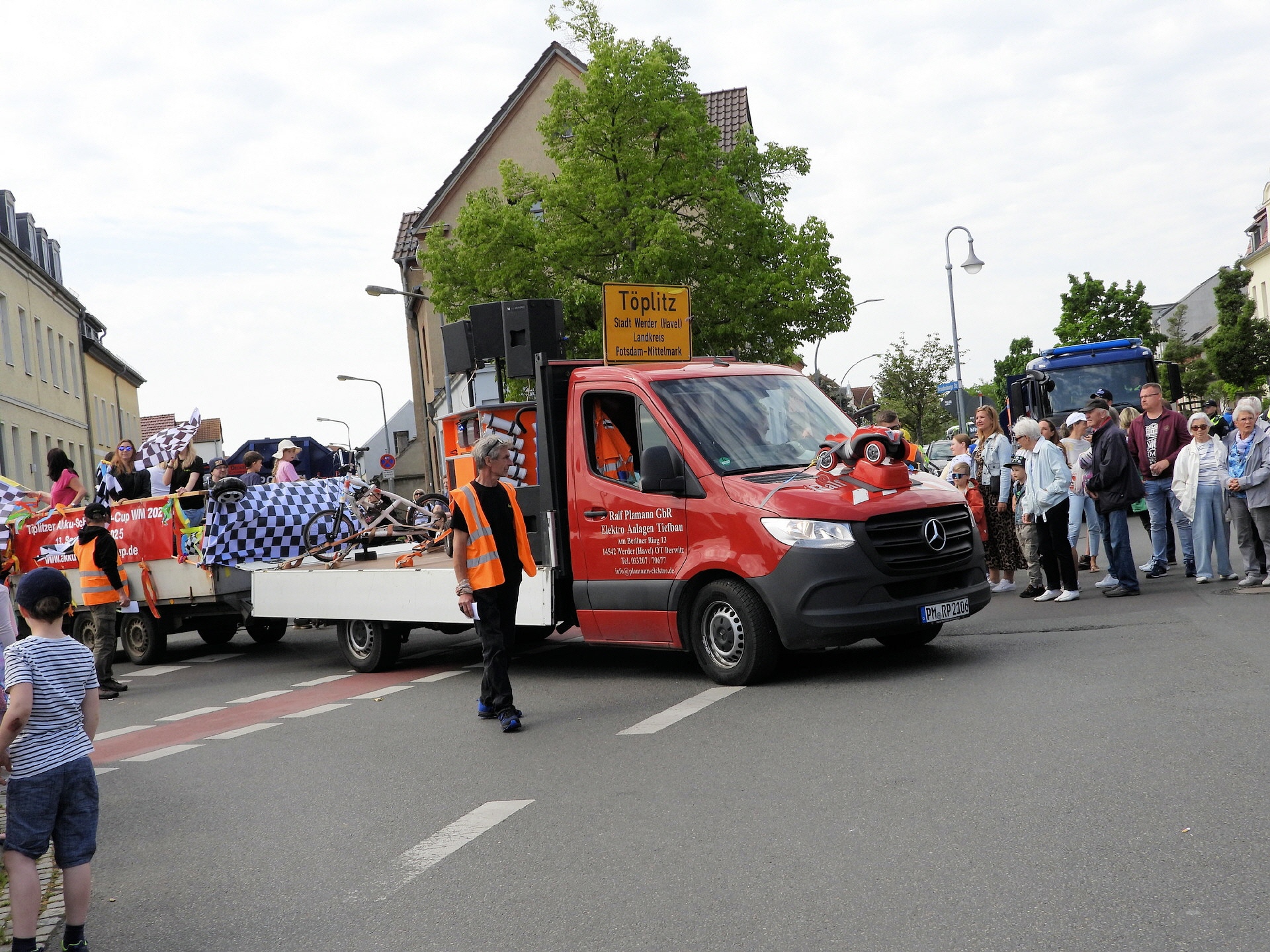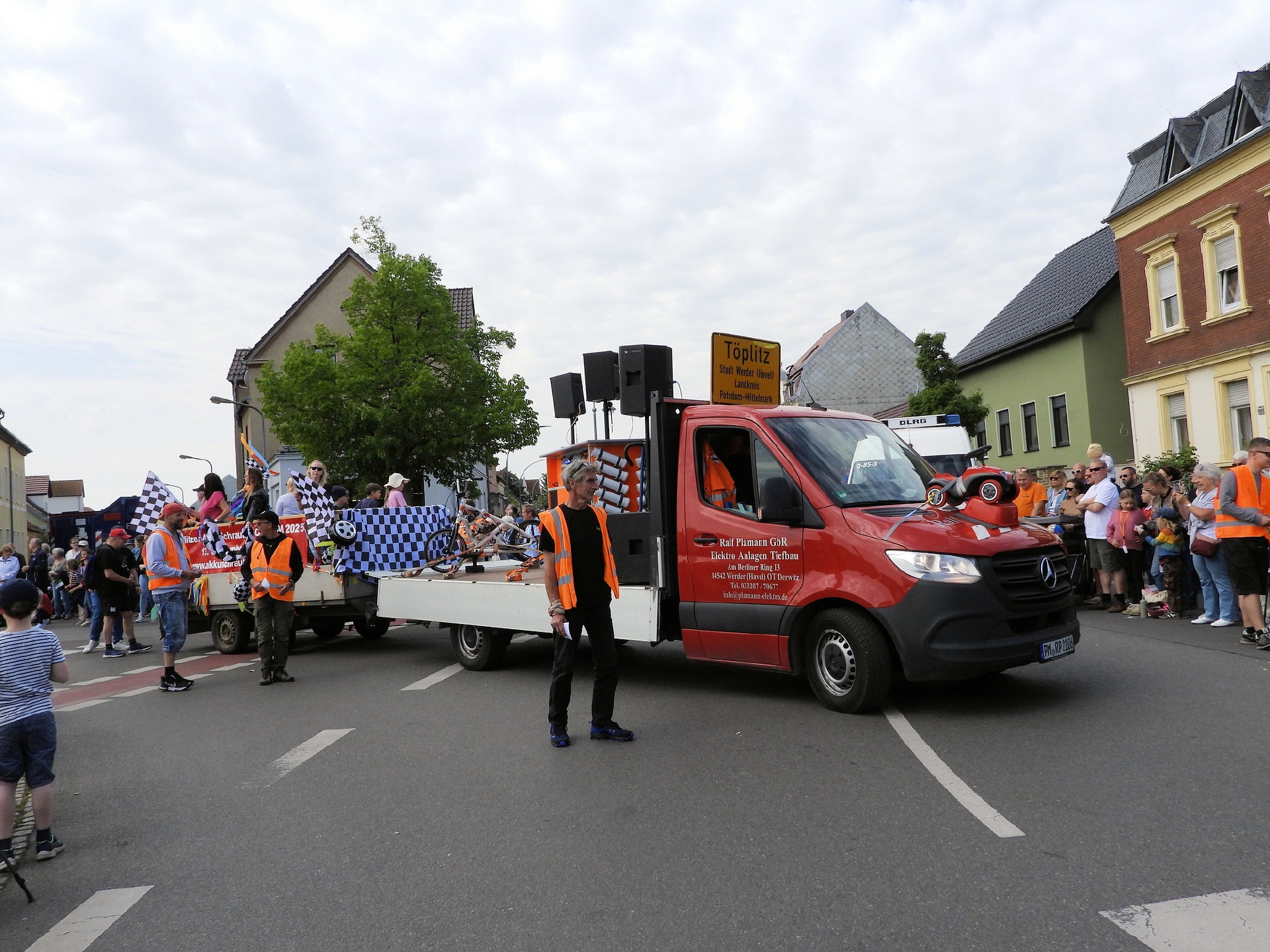 Angeführt wurde der Tross durch den "Töplitzer Inselsoundbollerwagen" mit DJ Oli und die auf dem Anhänger jubelnde Fangemeinde. Als Schluss folgten die Fahrer mit ihren Akkuschrauber-Boliden, ein Spass nicht nur für die Rennfahrer selbst sondern auch für die Zuschauer.