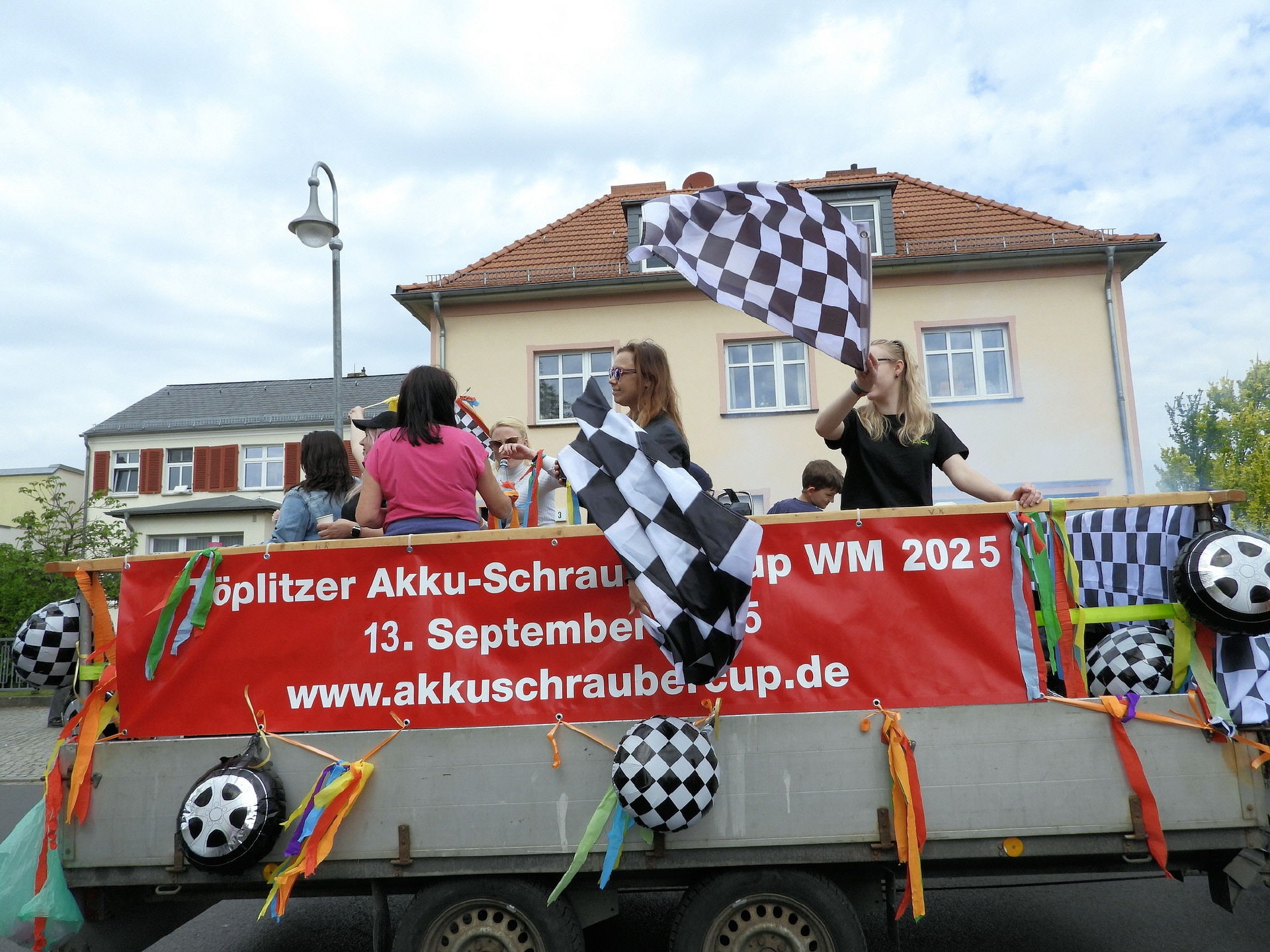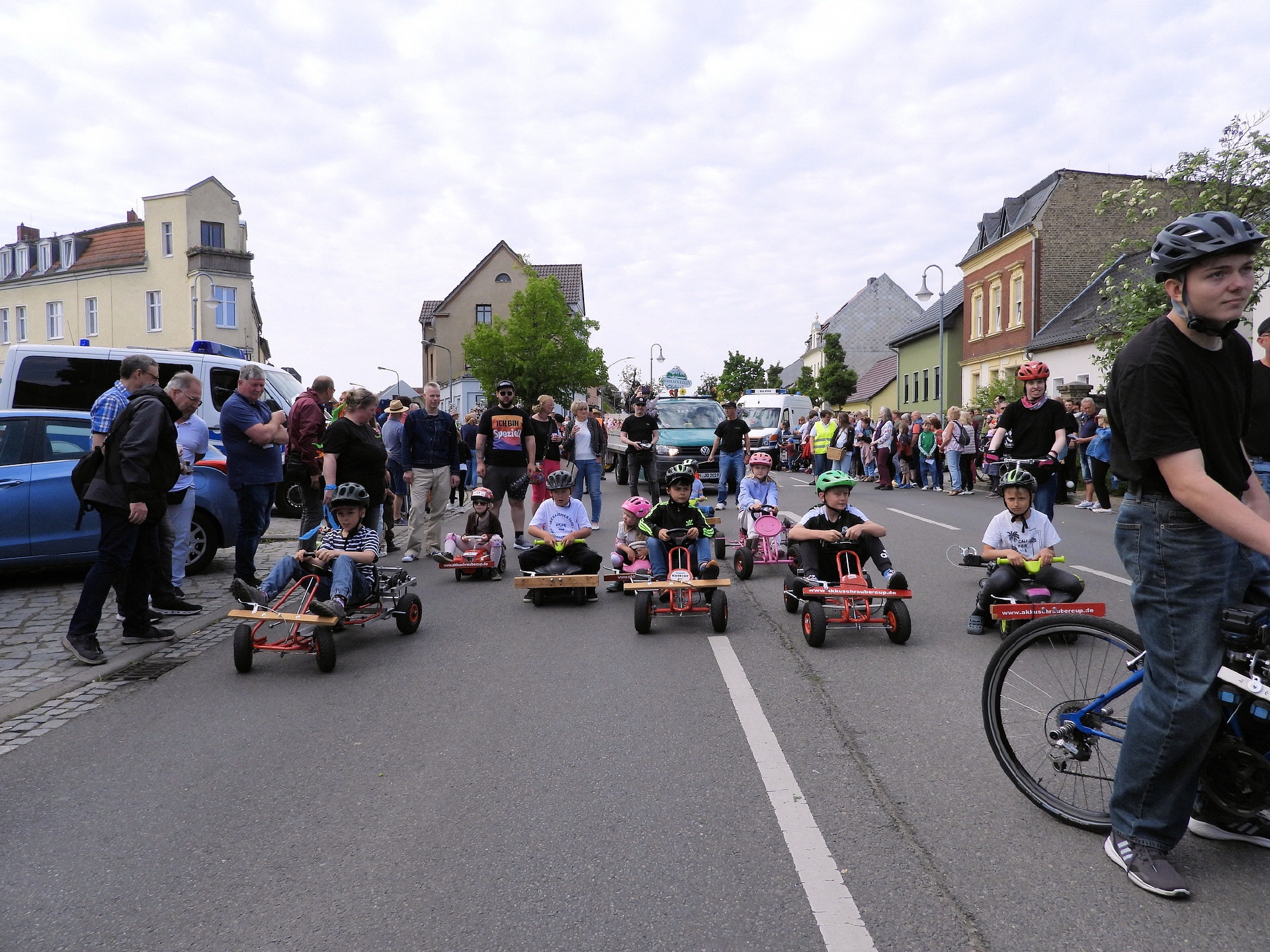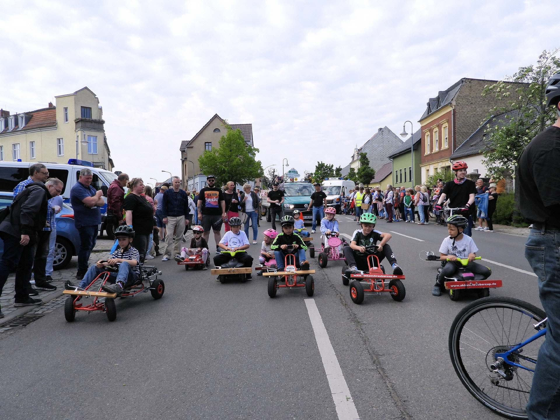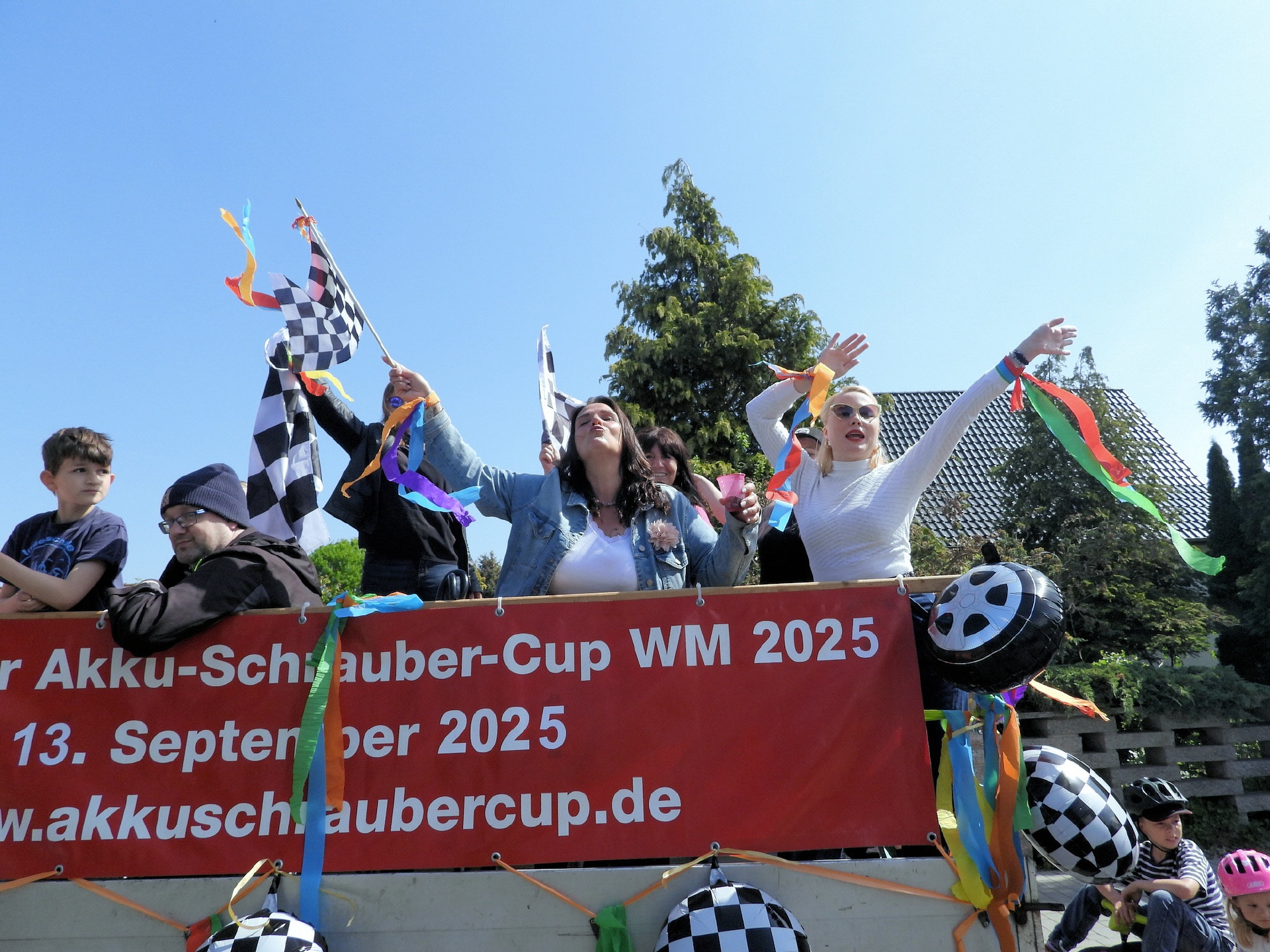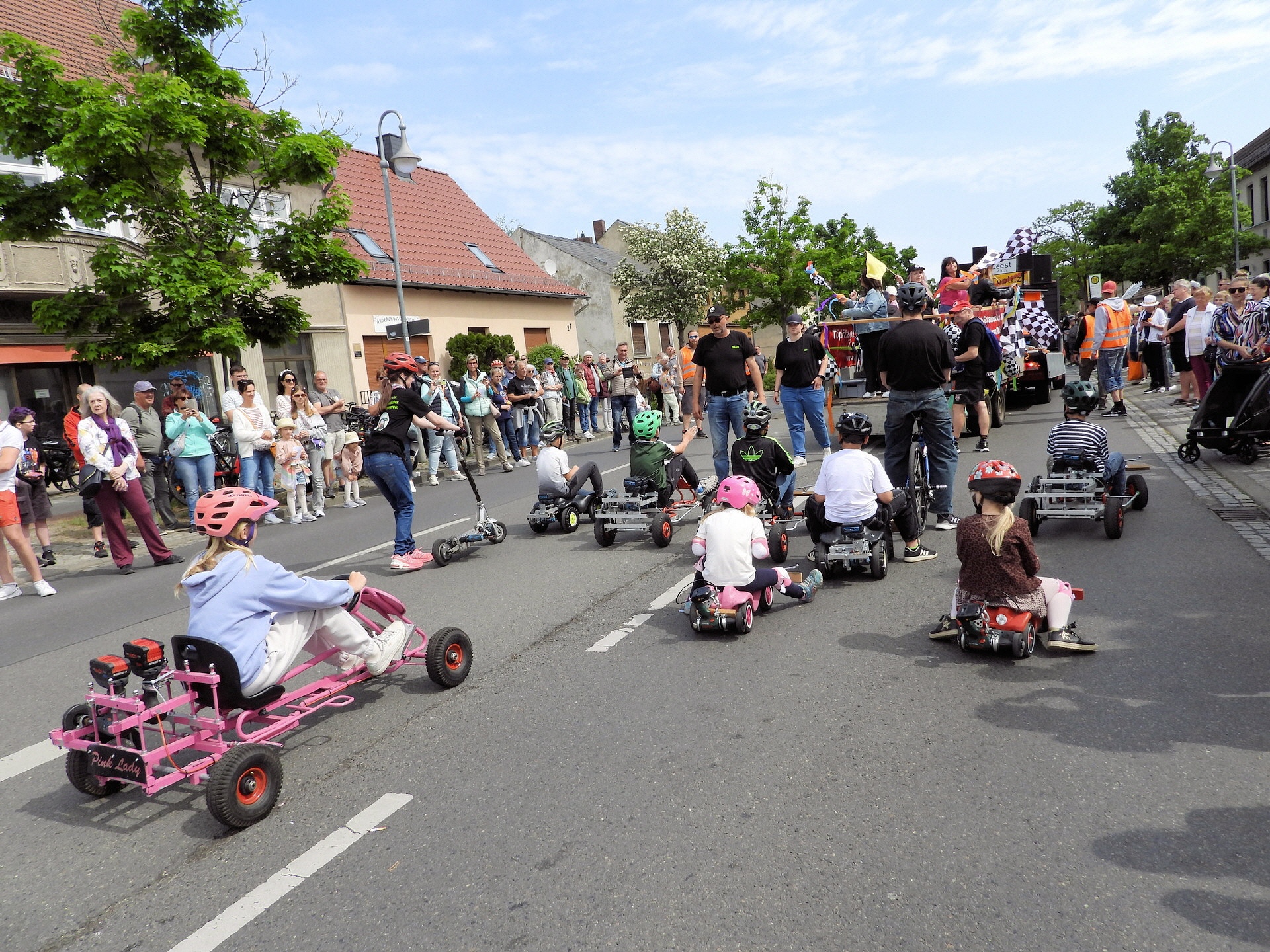 Angeführt wurde der Tross durch den "Töplitzer Inselsoundbollerwagen" mit DJ Oli und die auf dem Anhänger jubelnde Fangemeinde. Als Schluss folgten die Fahrer mit ihren Akkuschrauber-Boliden, ein Spass nicht nur für die Rennfahrer selbst sondern auch für die Zuschauer.