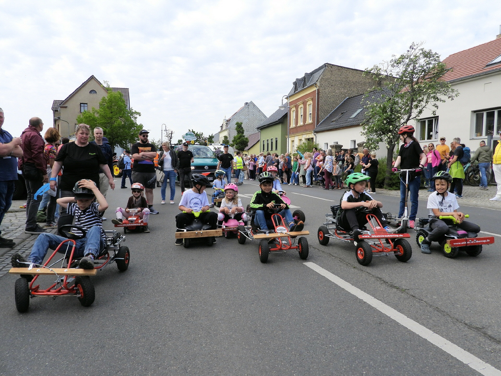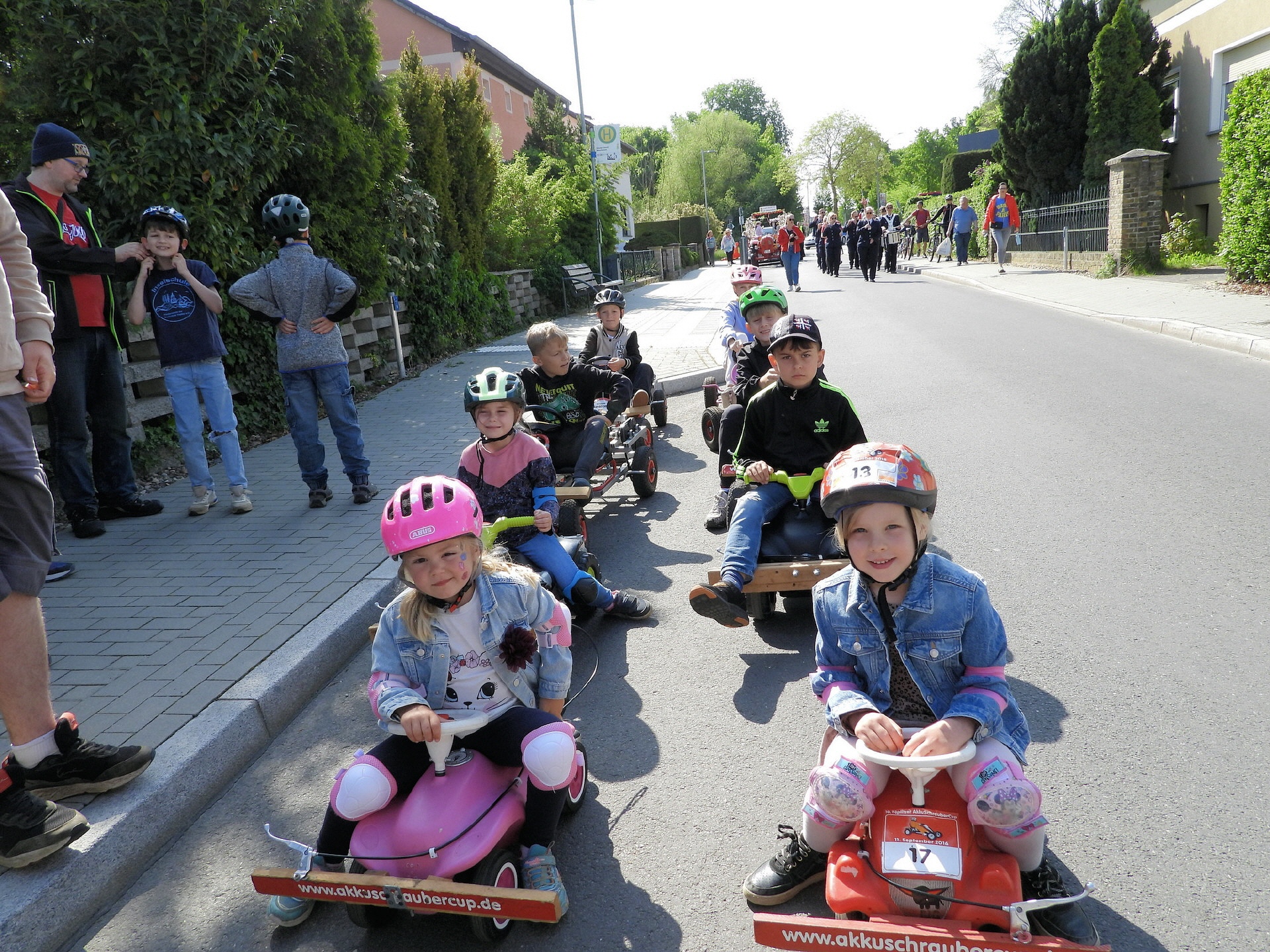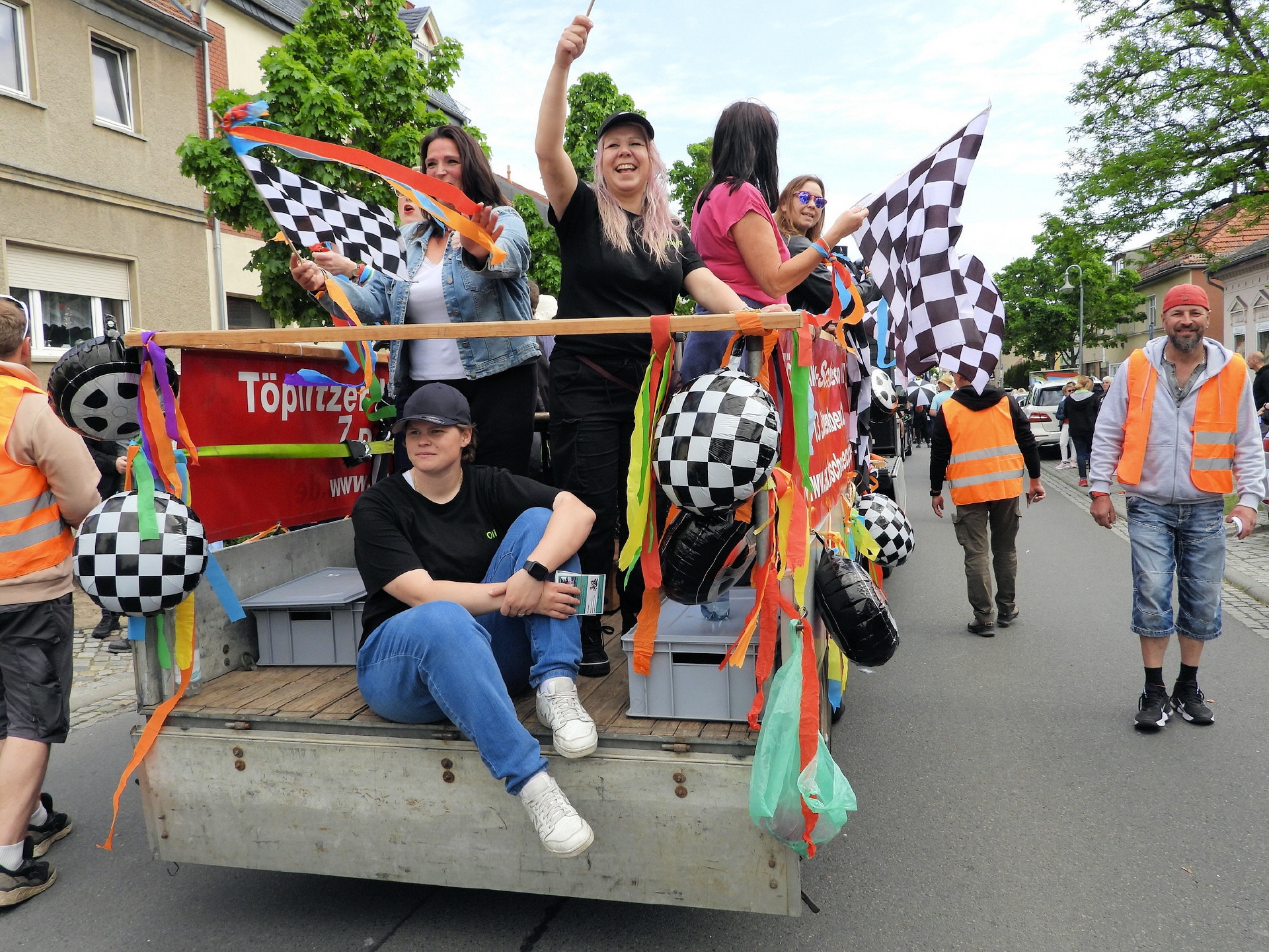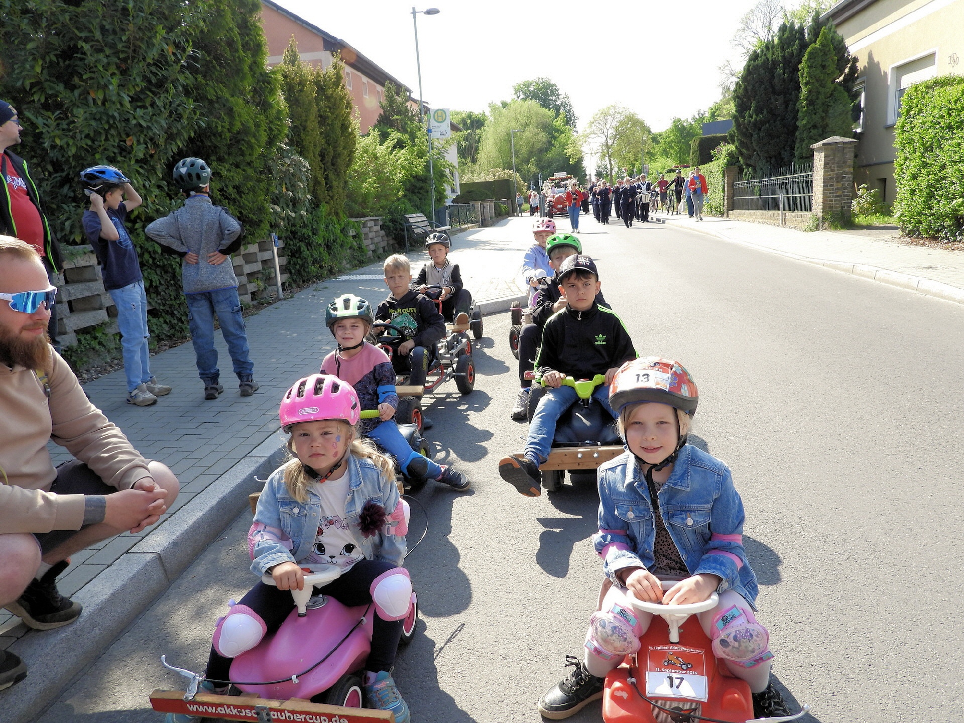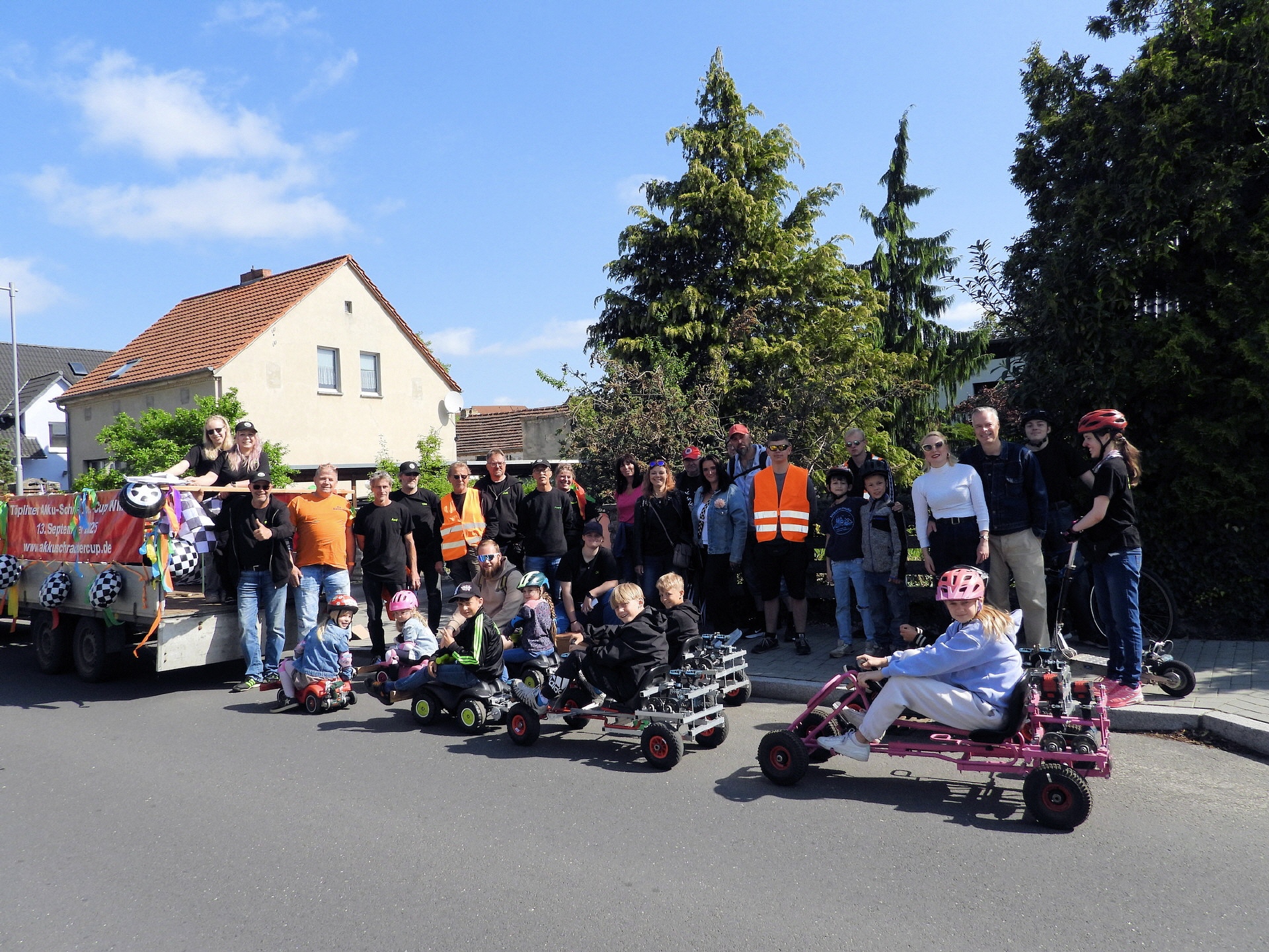 Angeführt wurde der Tross durch den "Töplitzer Inselsoundbollerwagen" mit DJ Oli und die auf dem Anhänger jubelnde Fangemeinde. Als Schluss folgten die Fahrer mit ihren Akkuschrauber-Boliden, ein Spass nicht nur für die Rennfahrer selbst sondern auch für die Zuschauer.