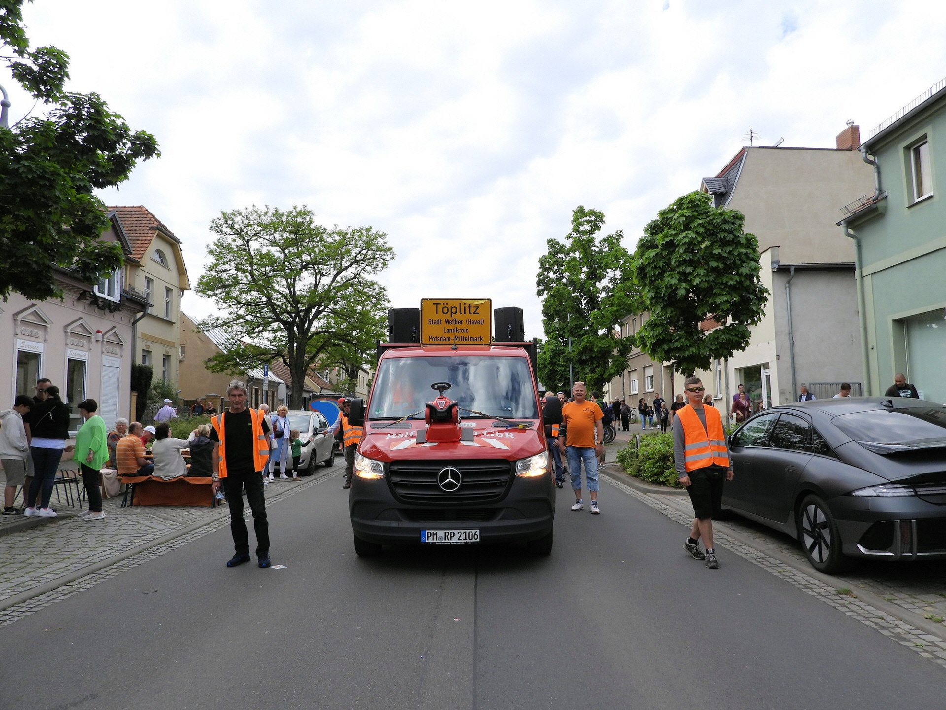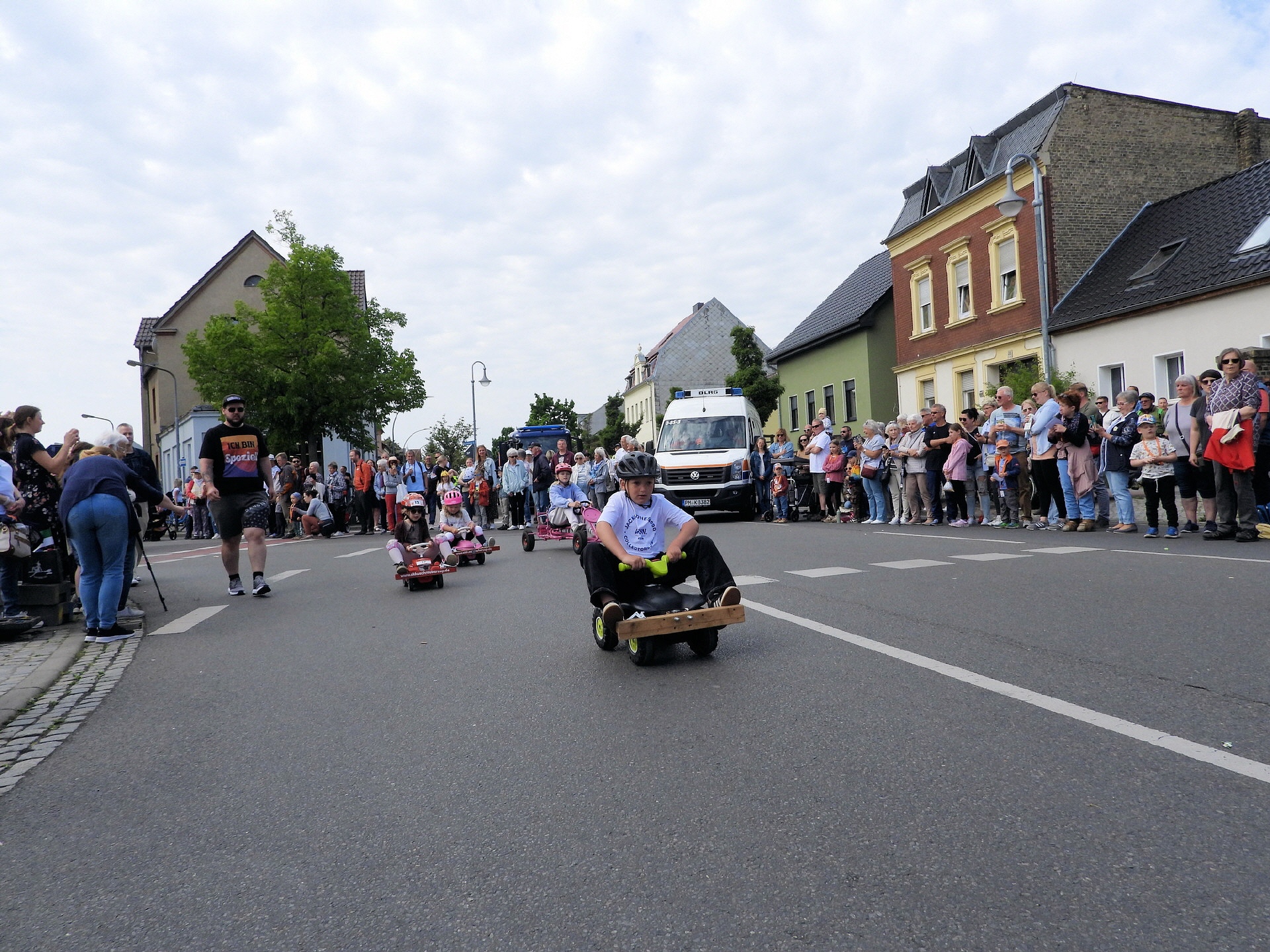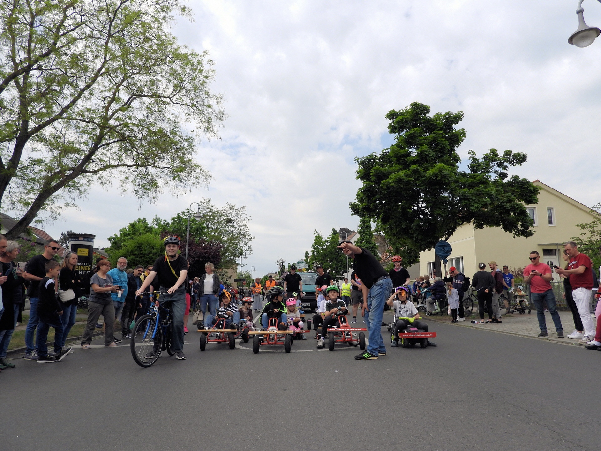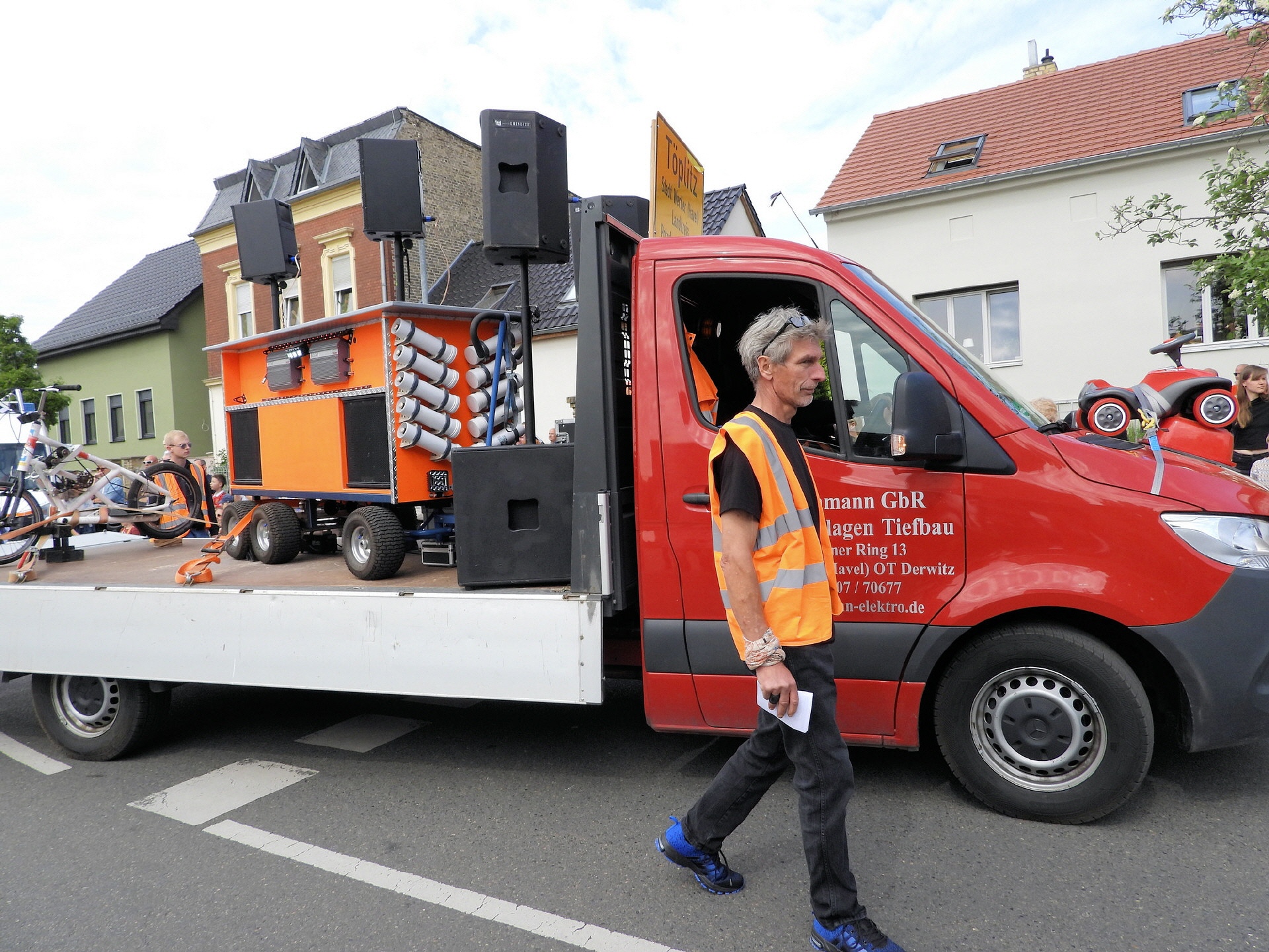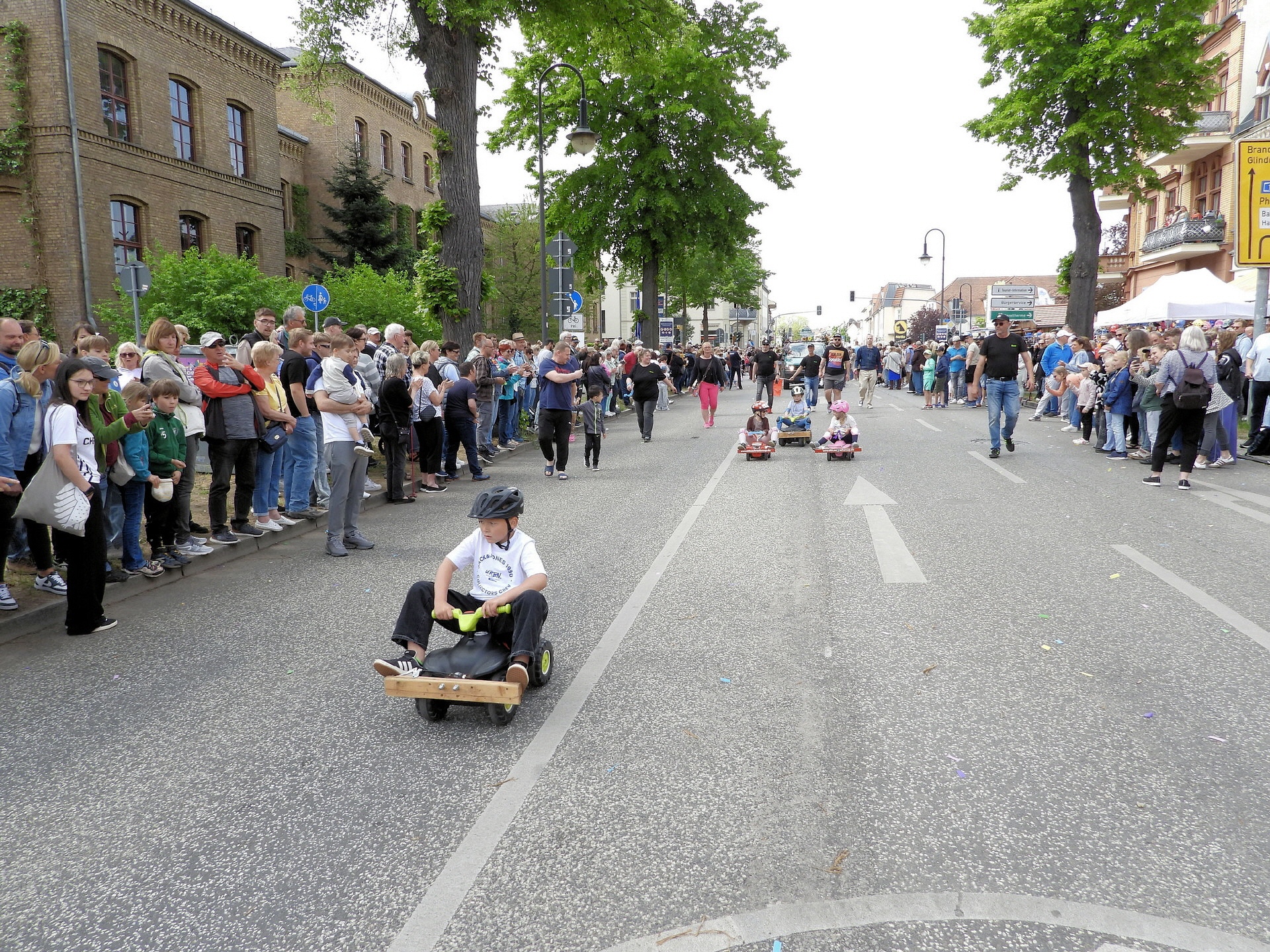 Angeführt wurde der Tross durch den "Töplitzer Inselsoundbollerwagen" mit DJ Oli und die auf dem Anhänger jubelnde Fangemeinde. Als Schluss folgten die Fahrer mit ihren Akkuschrauber-Boliden, ein Spass nicht nur für die Rennfahrer selbst sondern auch für die Zuschauer.