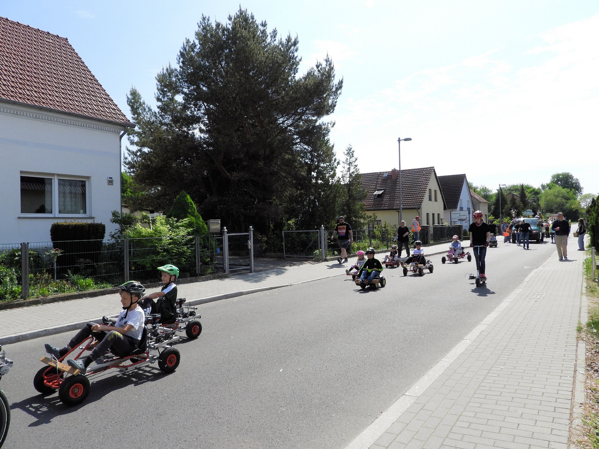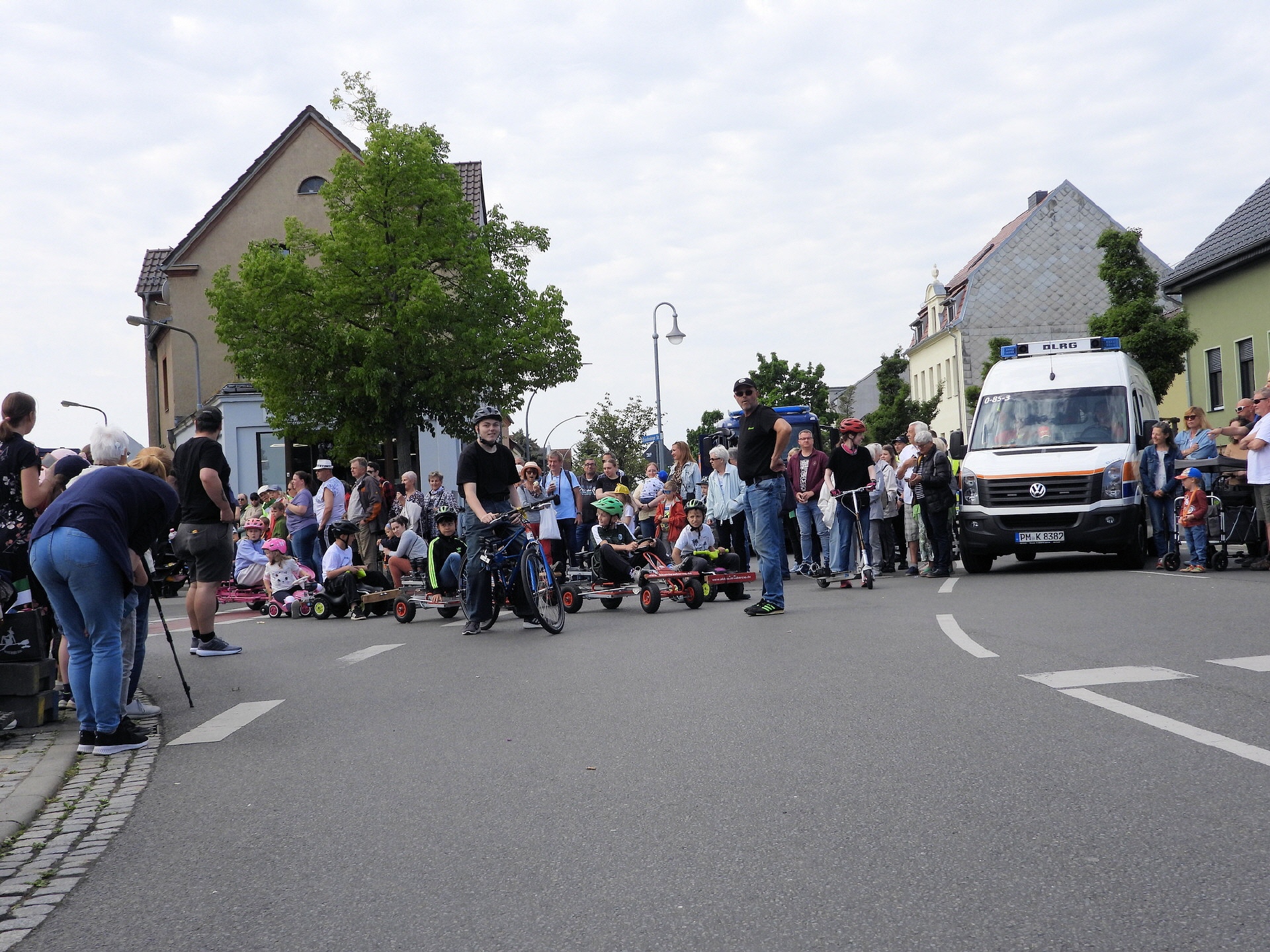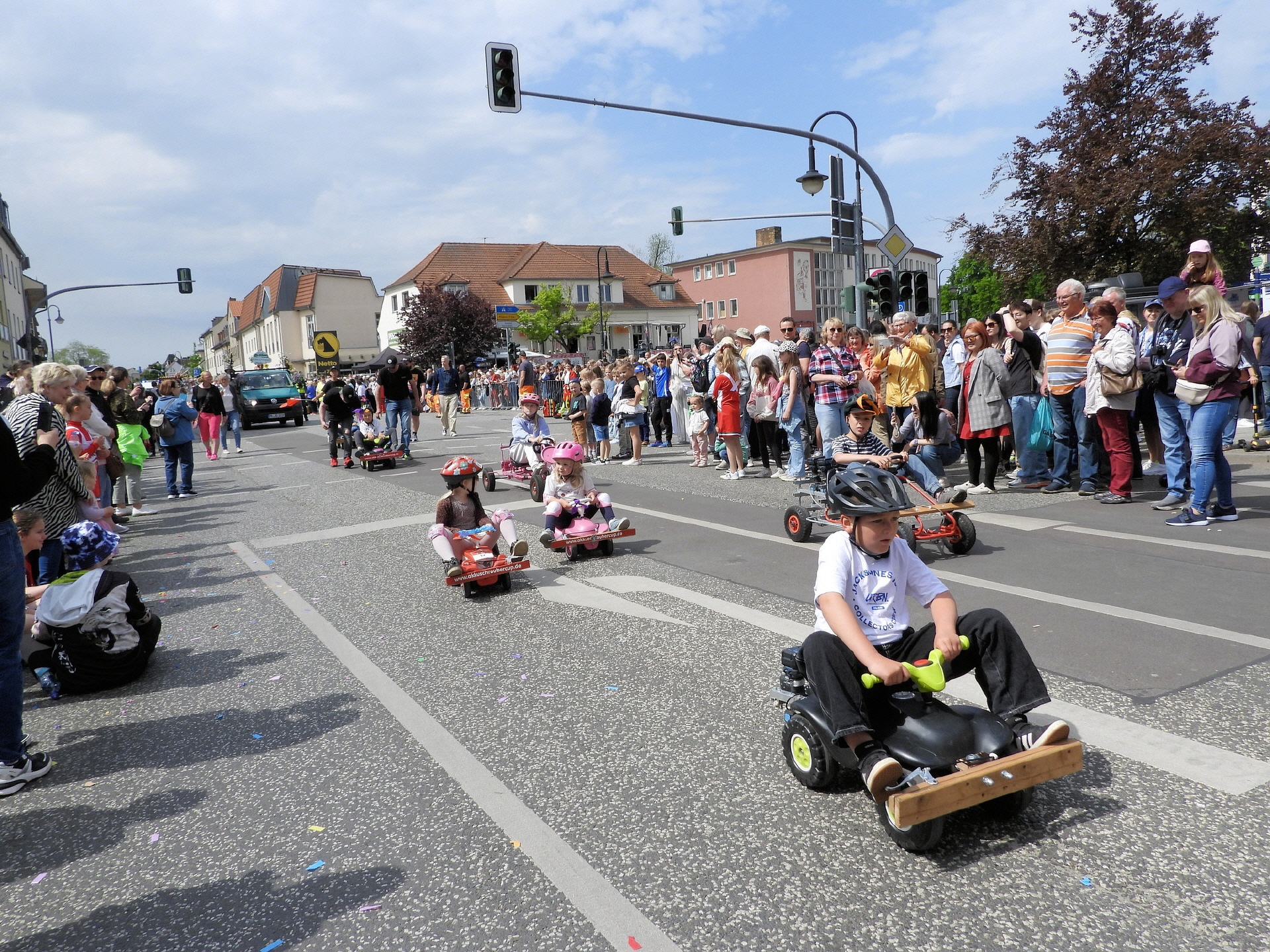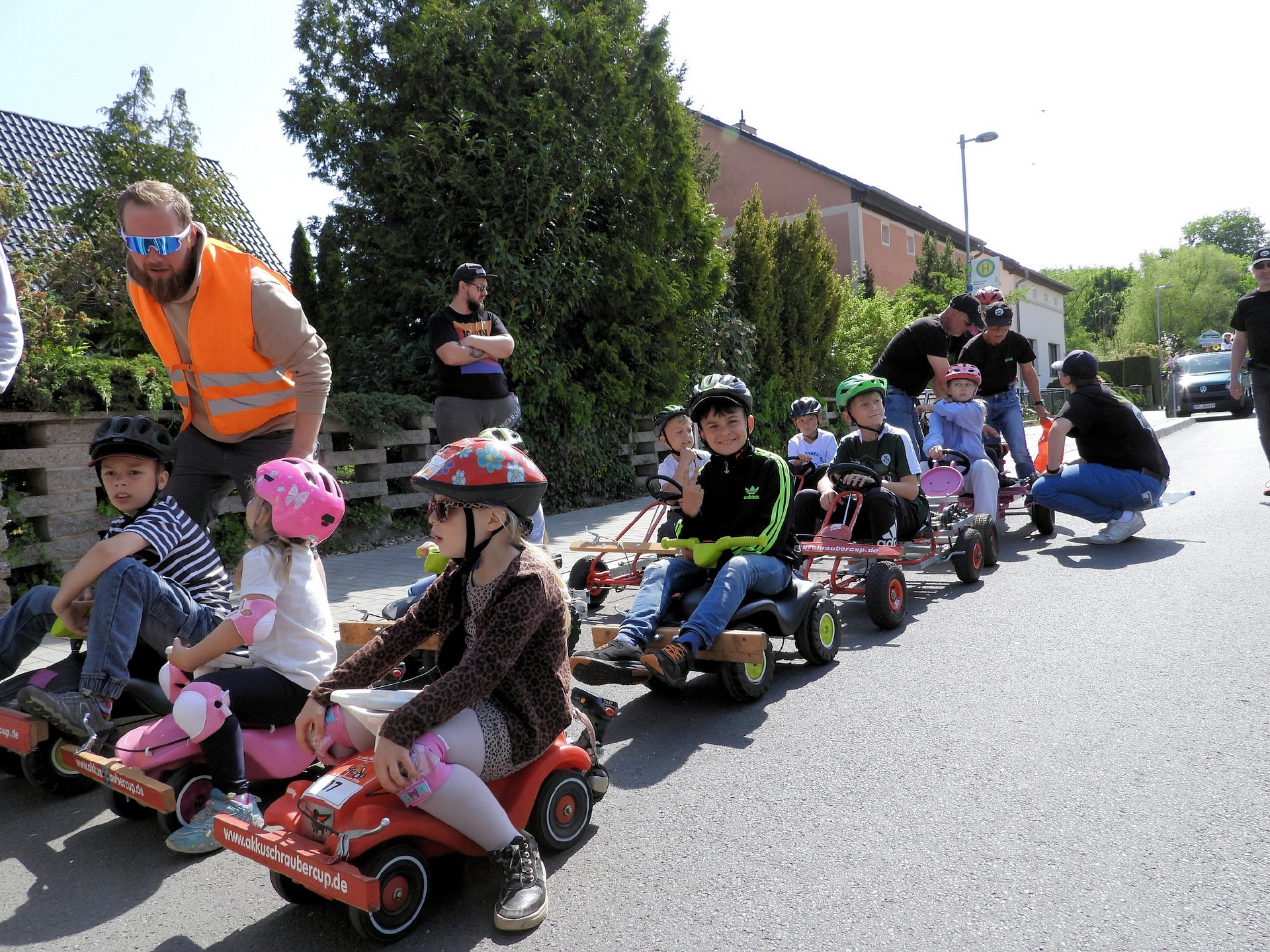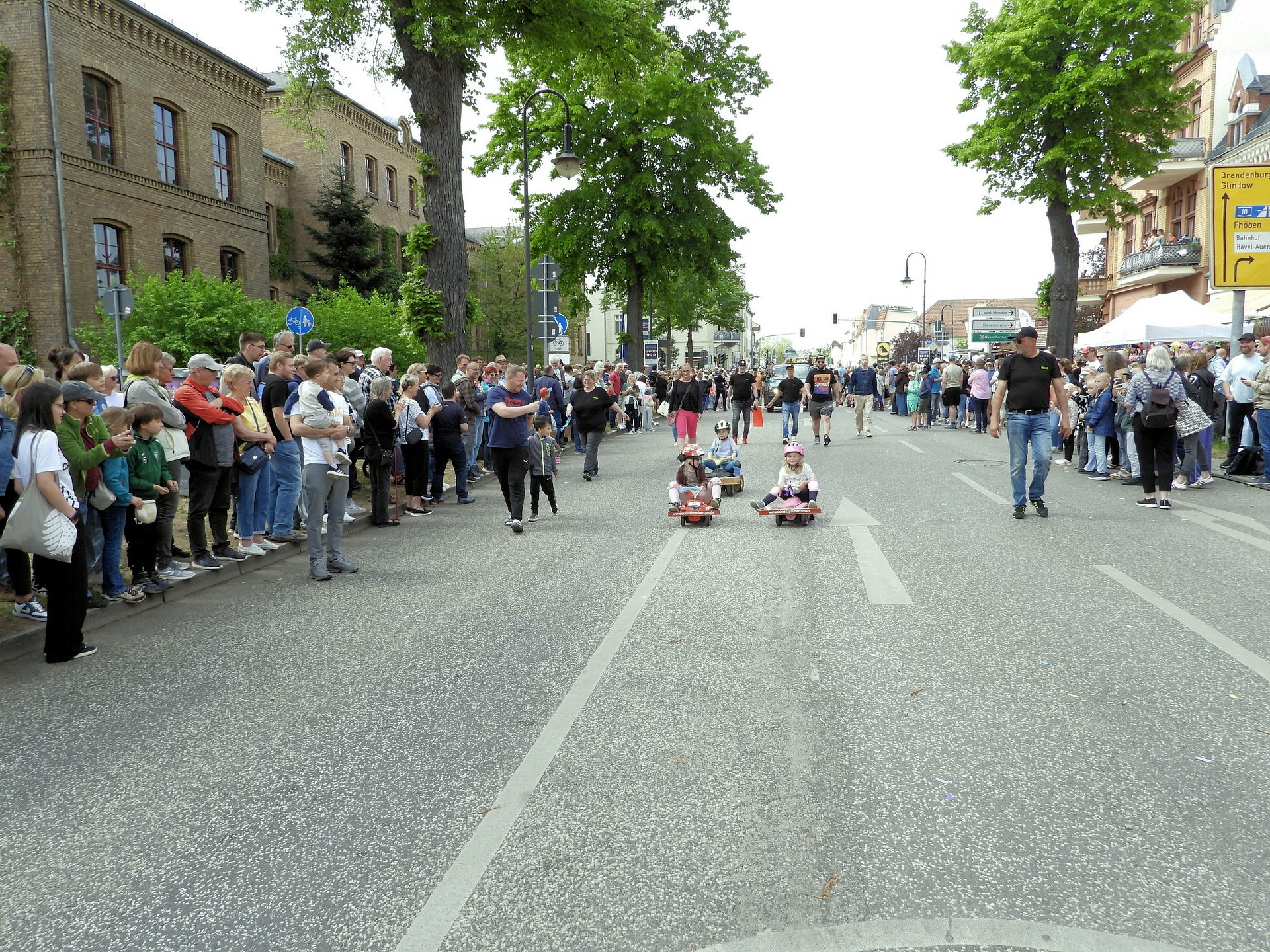 Angeführt wurde der Tross durch den "Töplitzer Inselsoundbollerwagen" mit DJ Oli und die auf dem Anhänger jubelnde Fangemeinde. Als Schluss folgten die Fahrer mit ihren Akkuschrauber-Boliden, ein Spass nicht nur für die Rennfahrer selbst sondern auch für die Zuschauer.