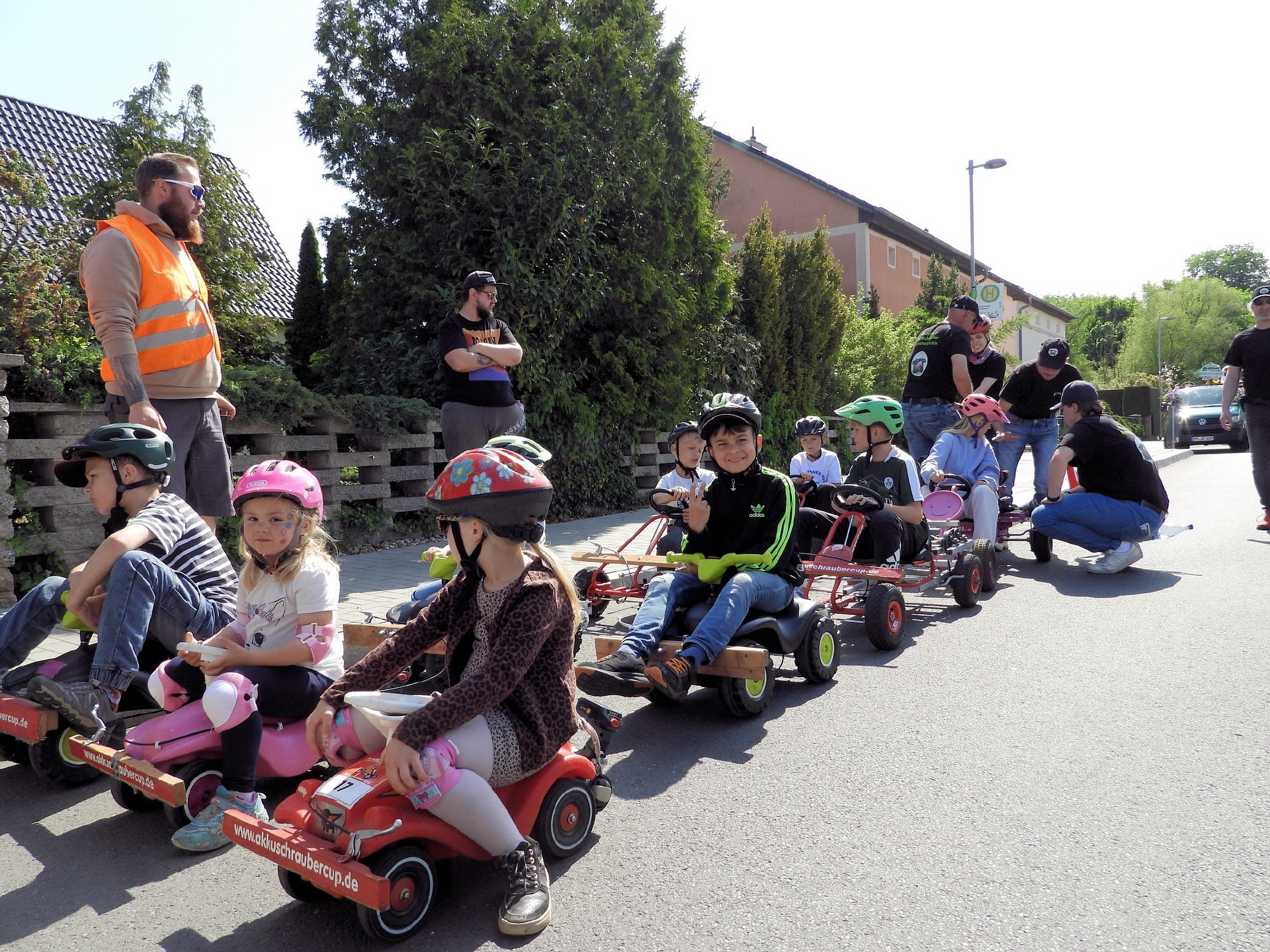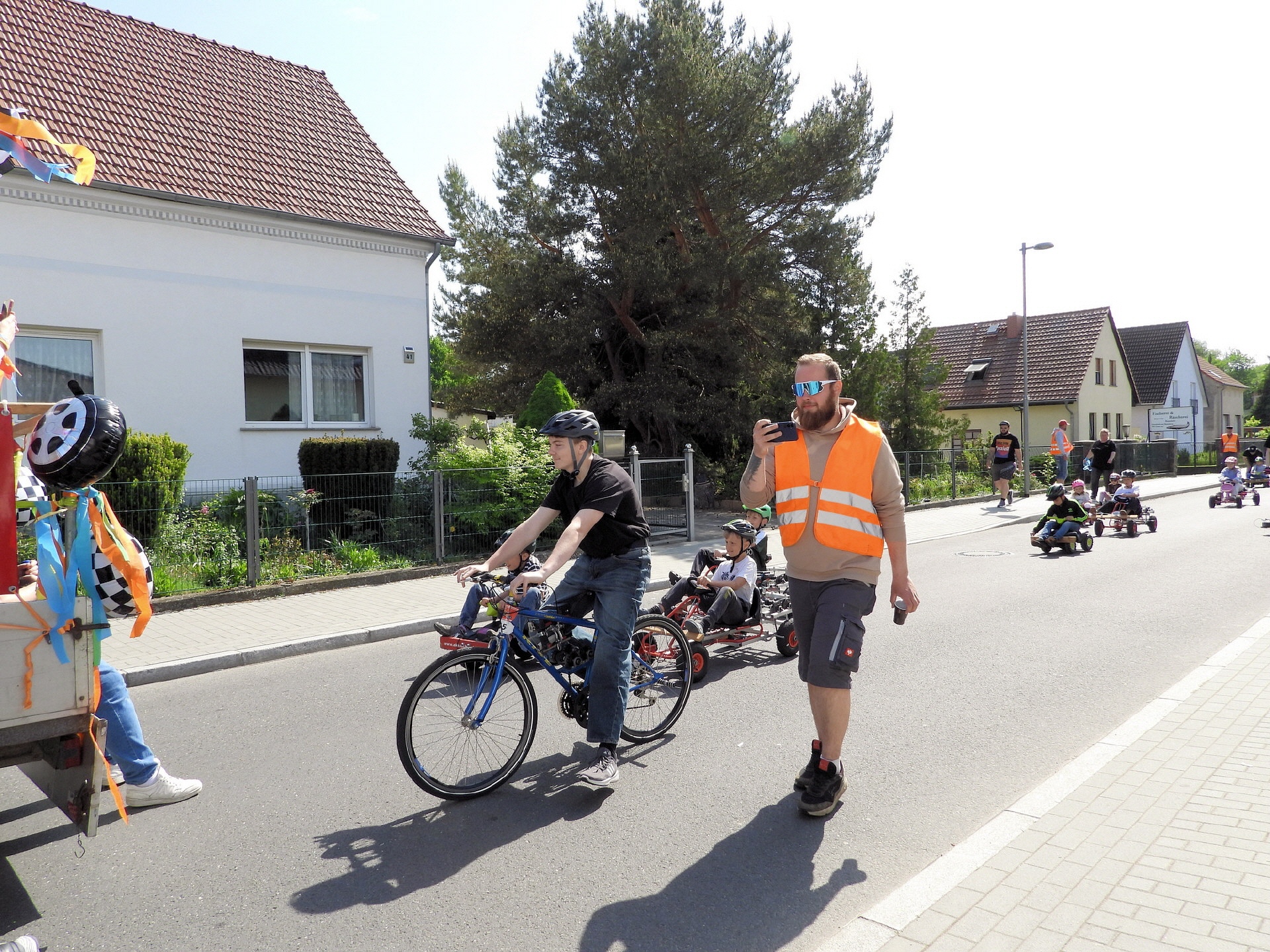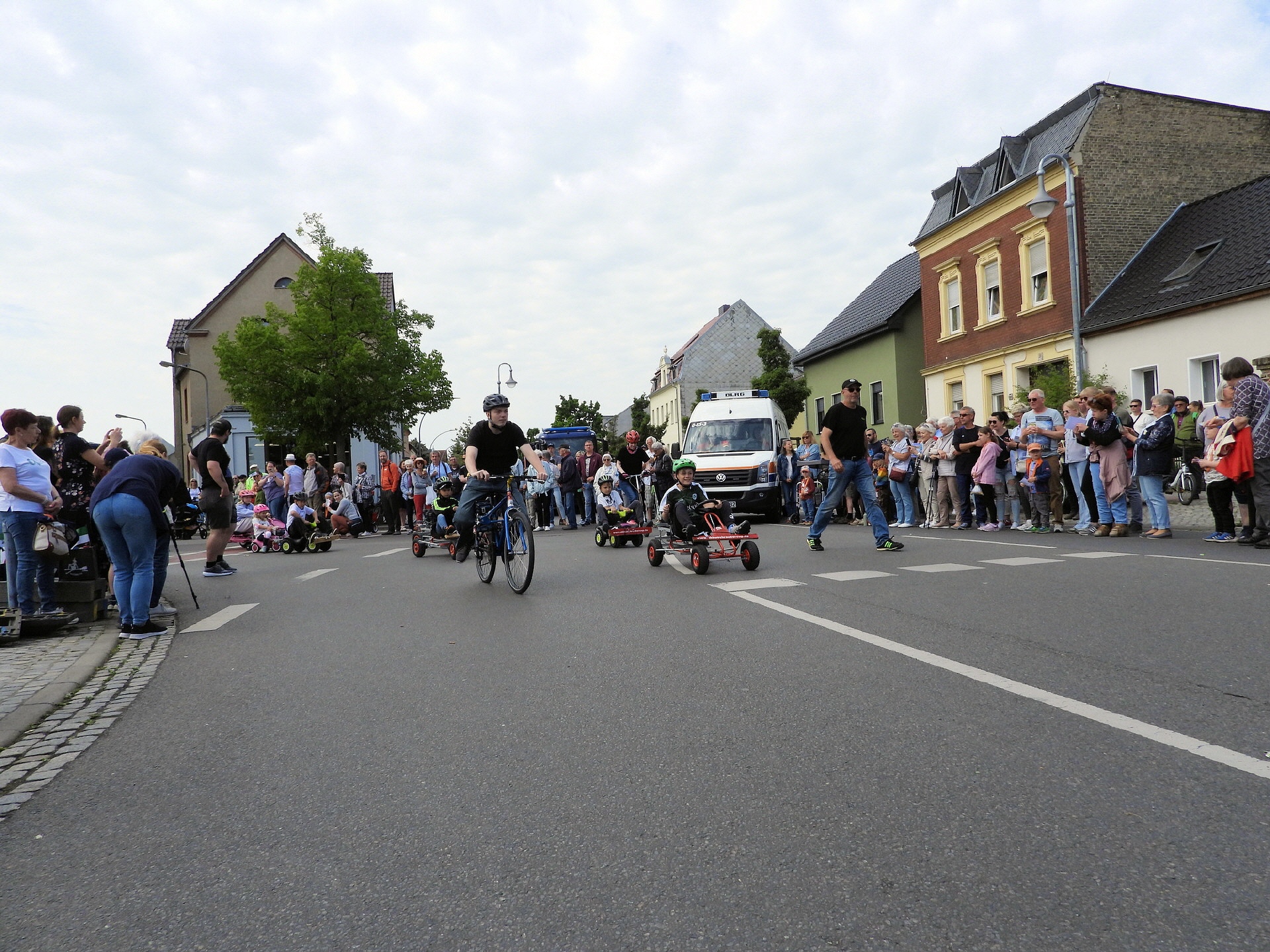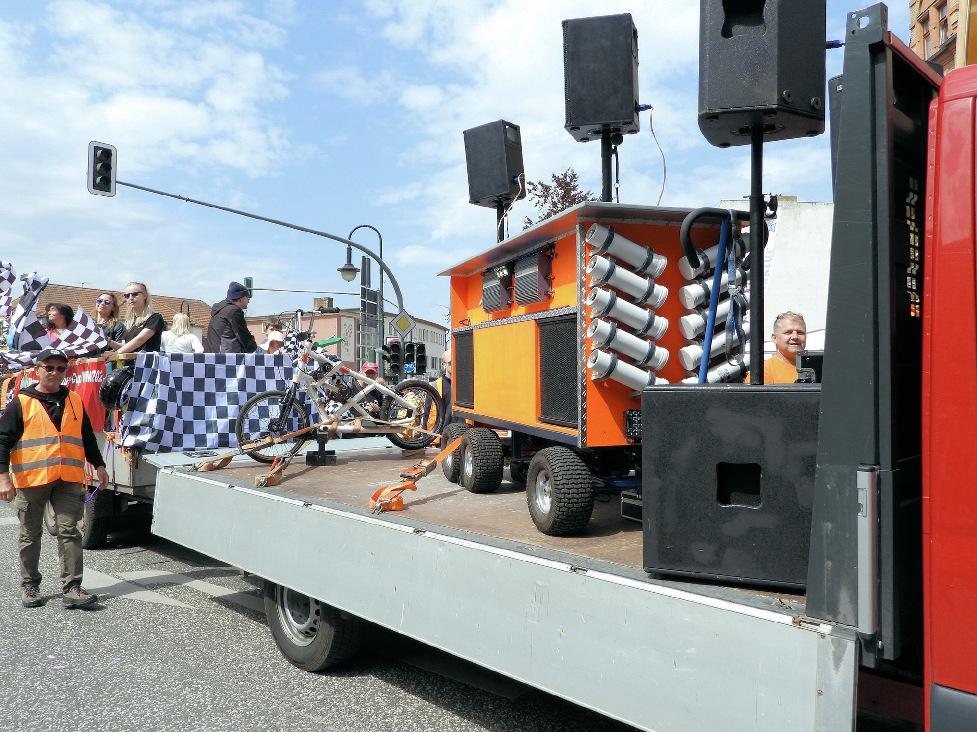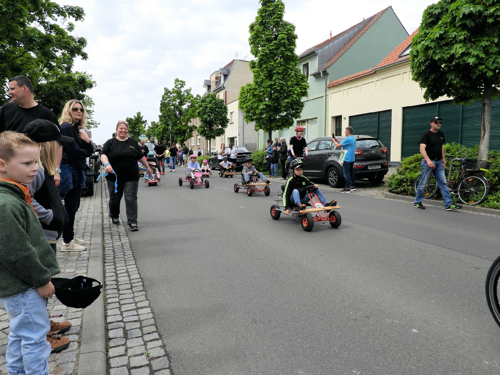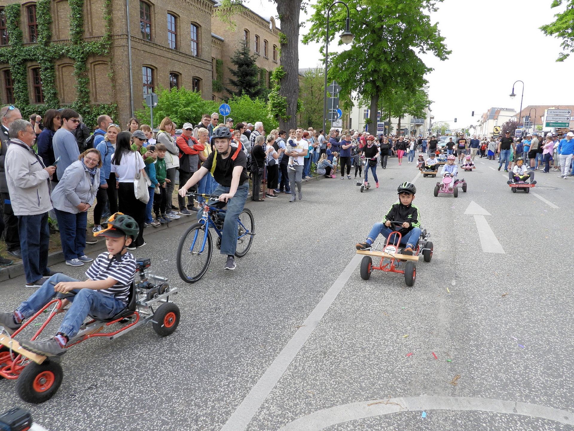 Angeführt wurde der Tross durch den "Töplitzer Inselsoundbollerwagen" mit DJ Oli und die auf dem Anhänger jubelnde Fangemeinde. Als Schluss folgten die Fahrer mit ihren Akkuschrauber-Boliden, ein Spass nicht nur für die Rennfahrer selbst sondern auch für die Zuschauer.