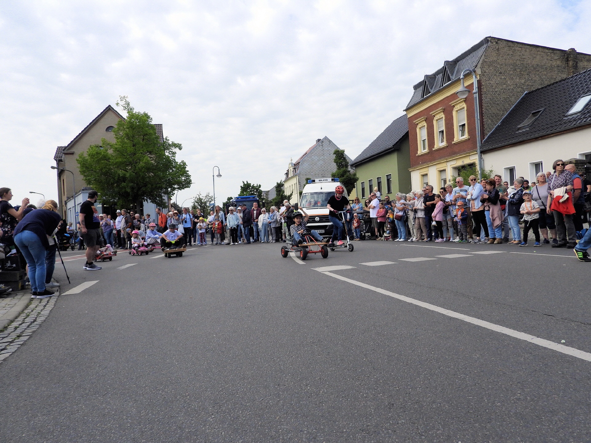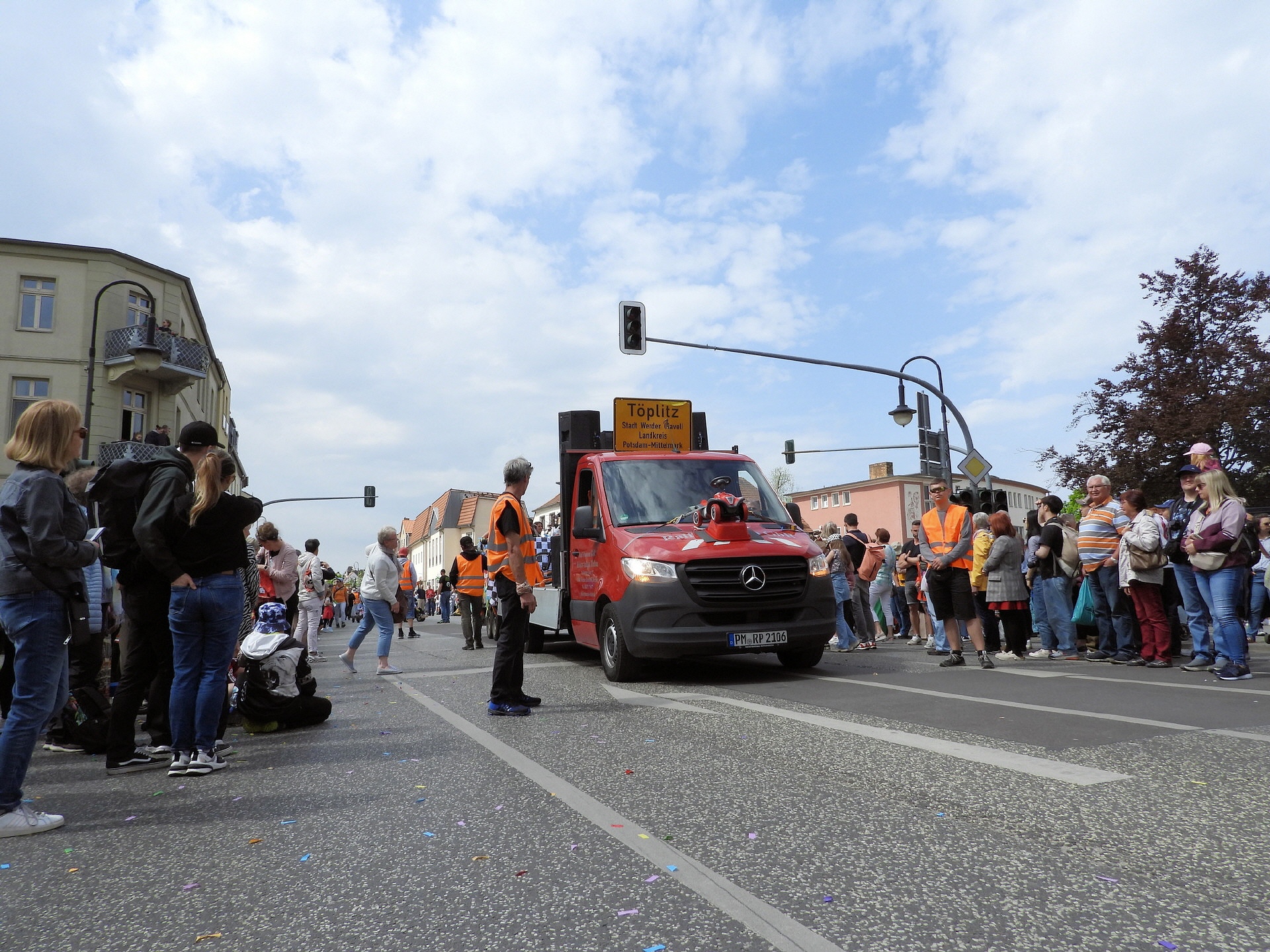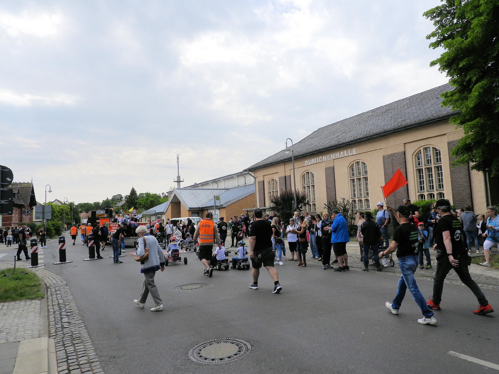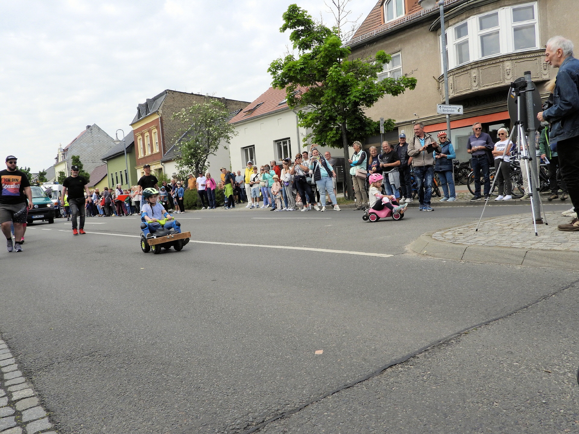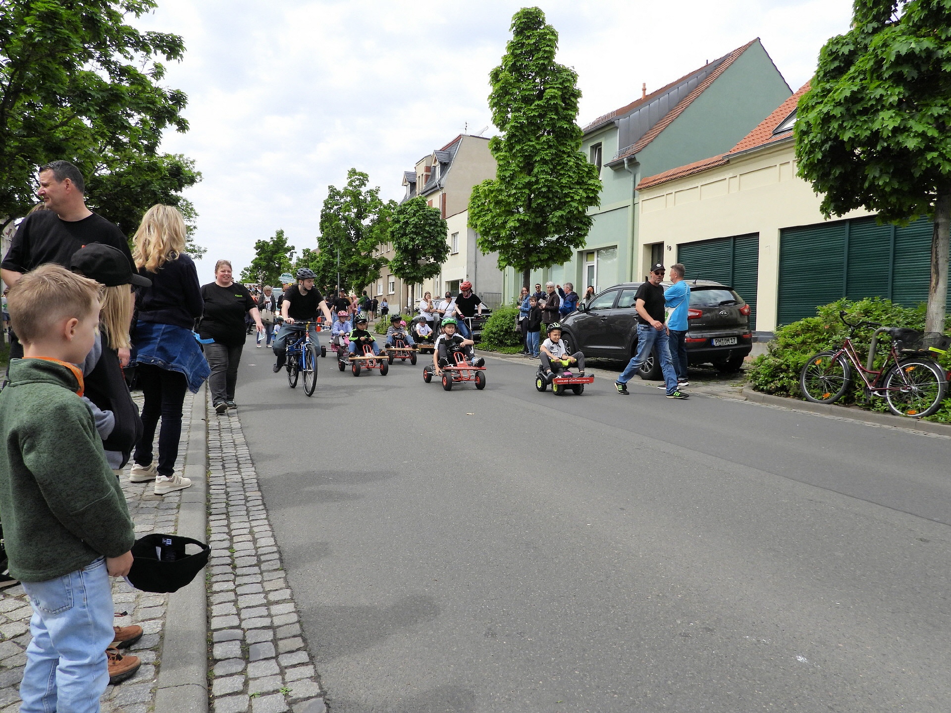 Angeführt wurde der Tross durch den "Töplitzer Inselsoundbollerwagen" mit DJ Oli und die auf dem Anhänger jubelnde Fangemeinde. Als Schluss folgten die Fahrer mit ihren Akkuschrauber-Boliden, ein Spass nicht nur für die Rennfahrer selbst sondern auch für die Zuschauer.