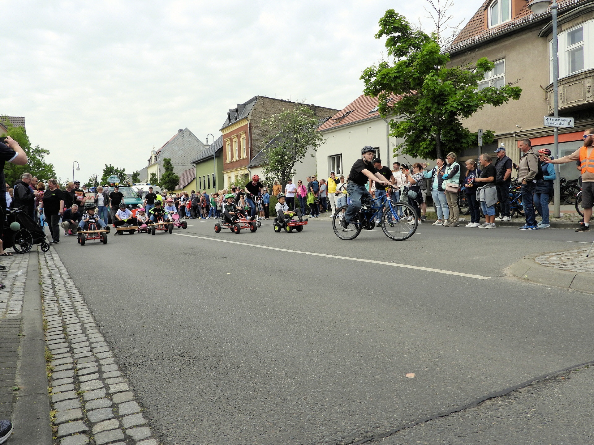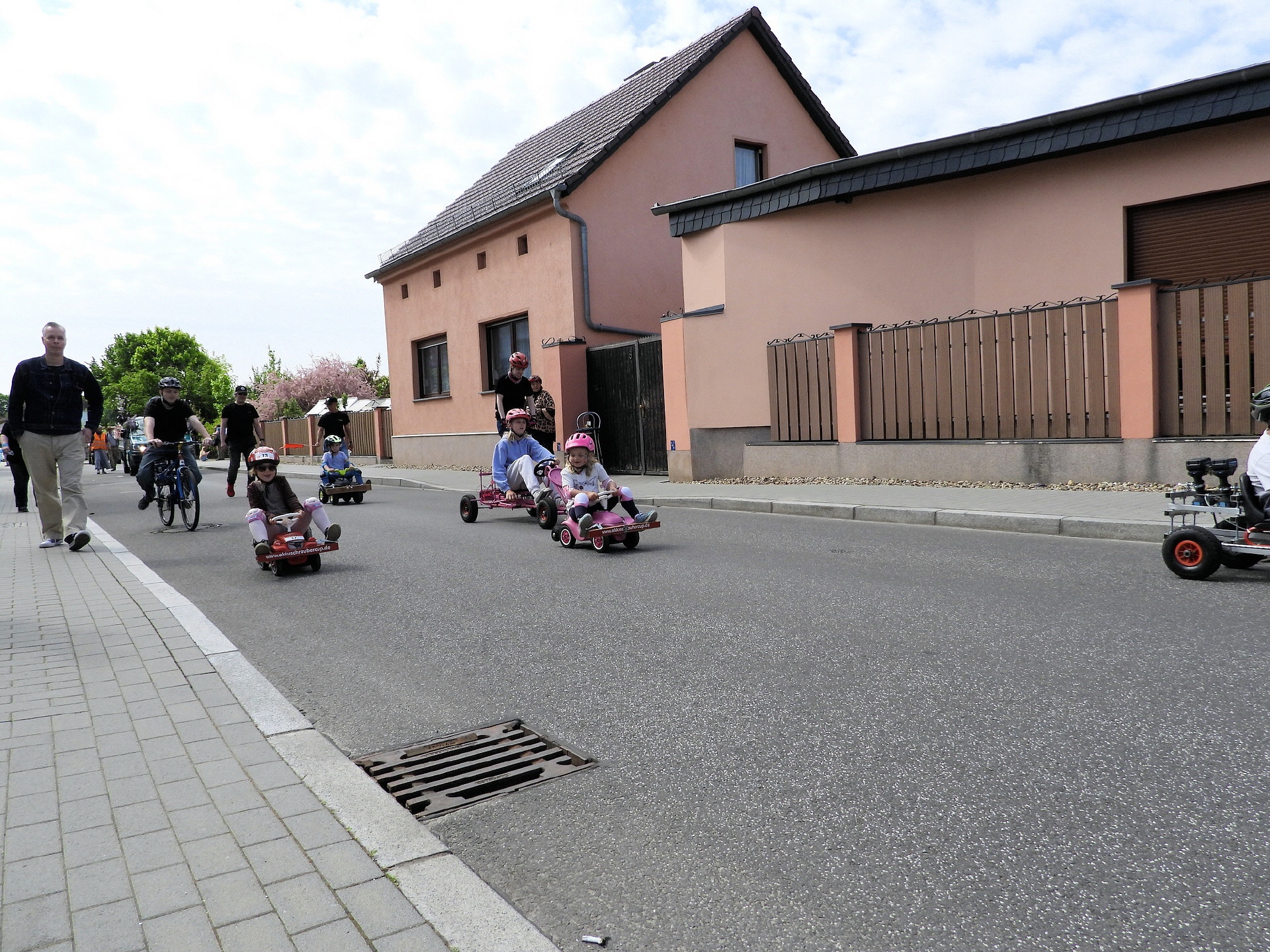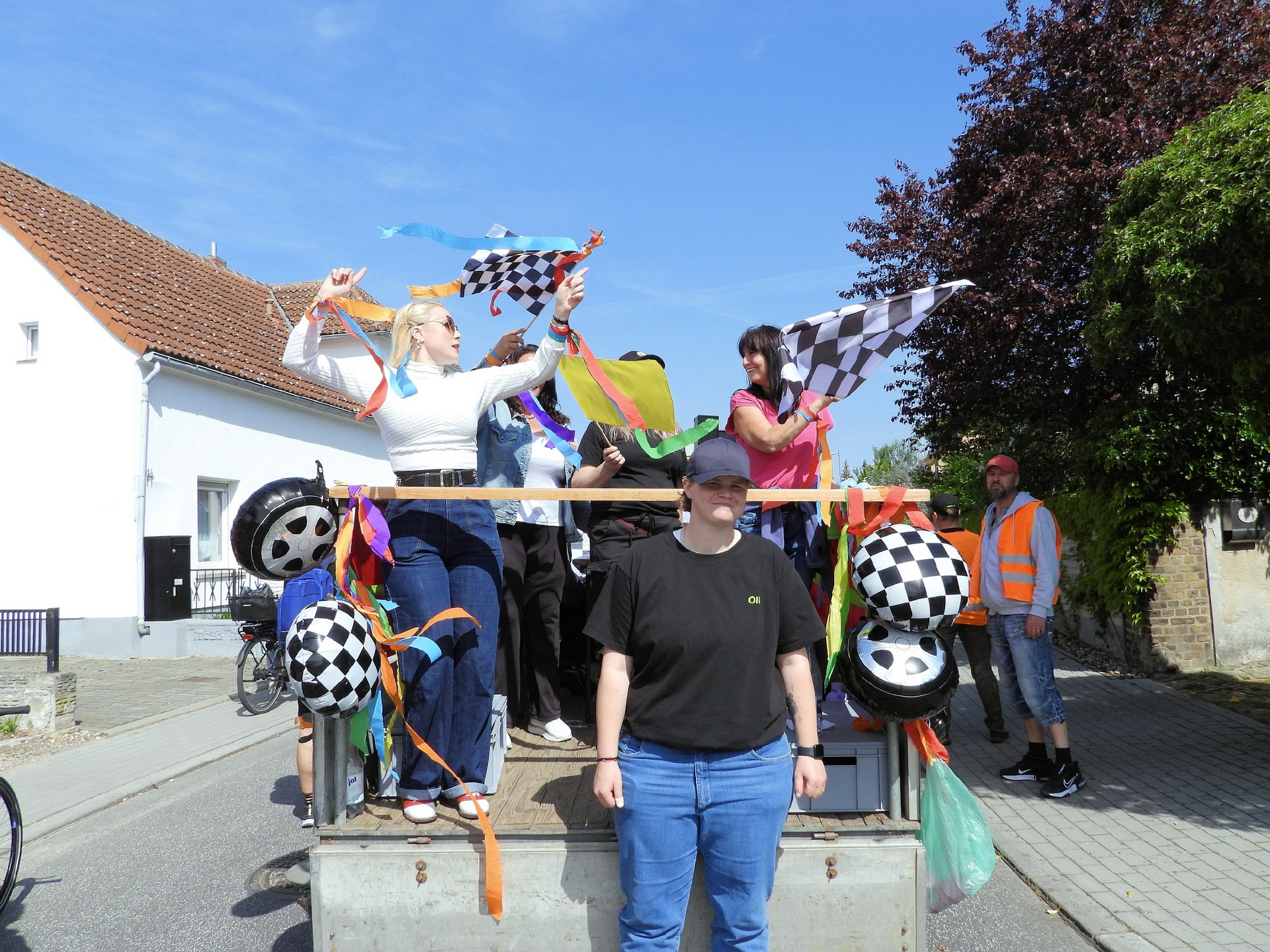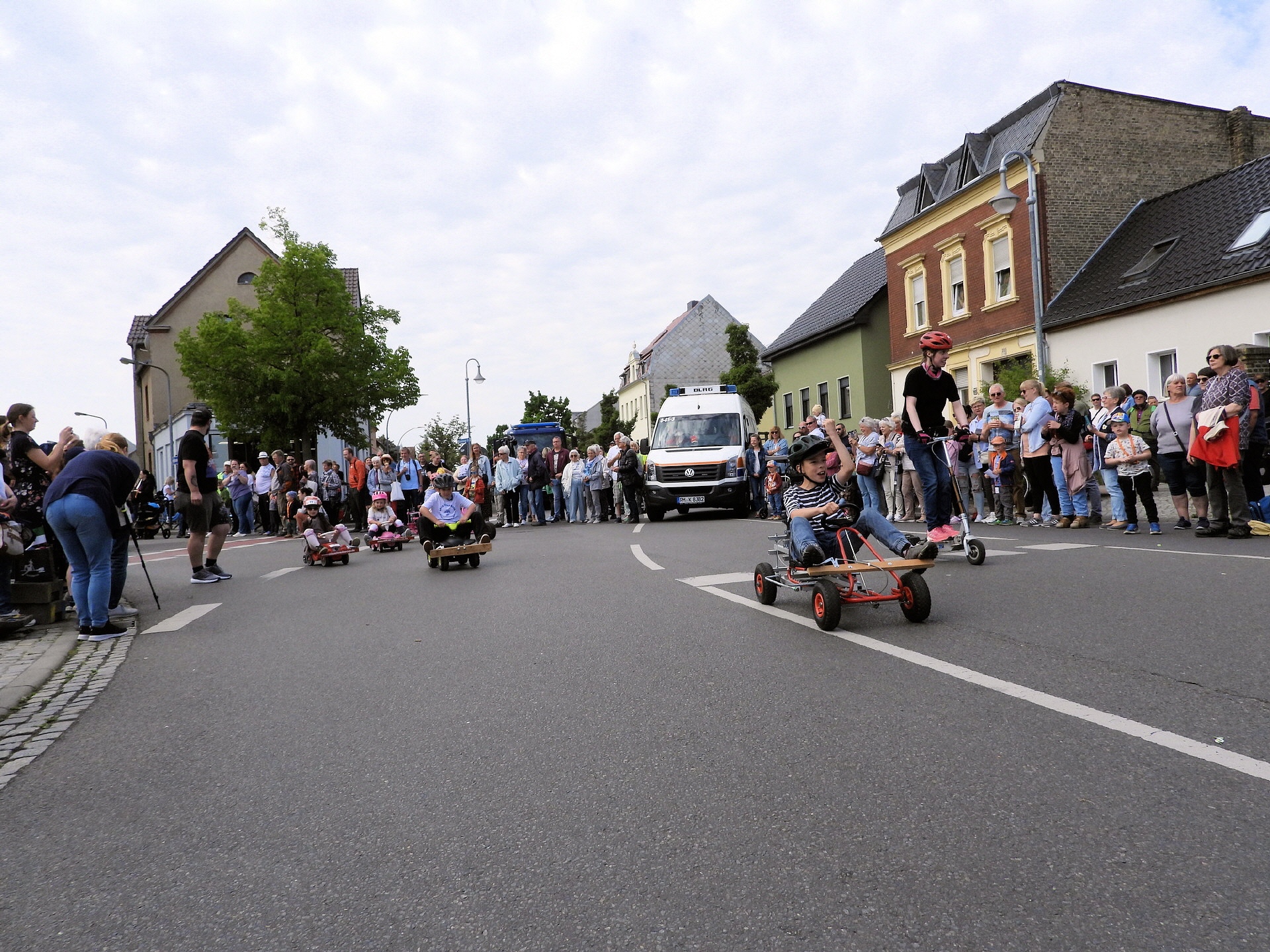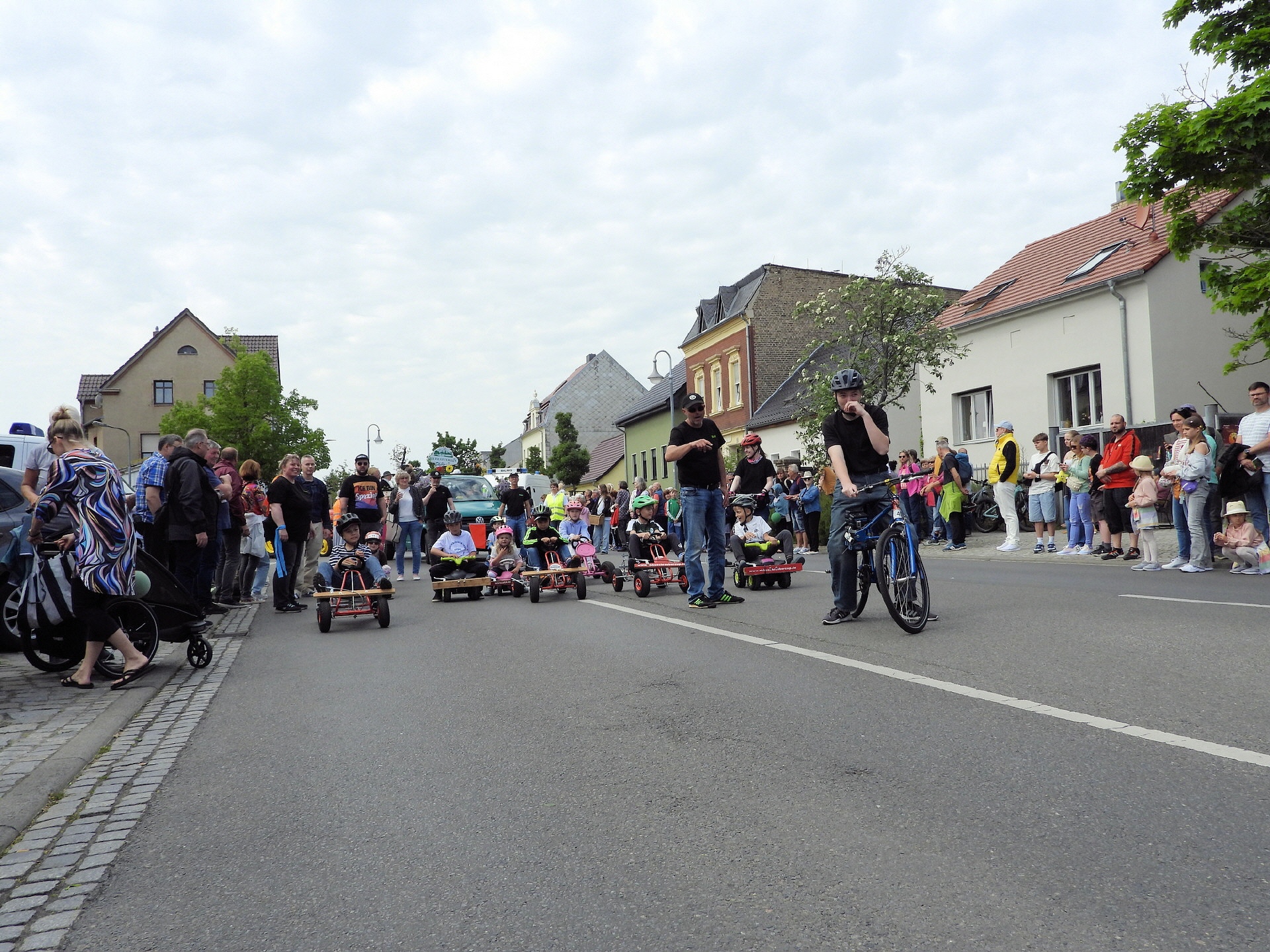 Angeführt wurde der Tross durch den "Töplitzer Inselsoundbollerwagen" mit DJ Oli und die auf dem Anhänger jubelnde Fangemeinde. Als Schluss folgten die Fahrer mit ihren Akkuschrauber-Boliden, ein Spass nicht nur für die Rennfahrer selbst sondern auch für die Zuschauer.