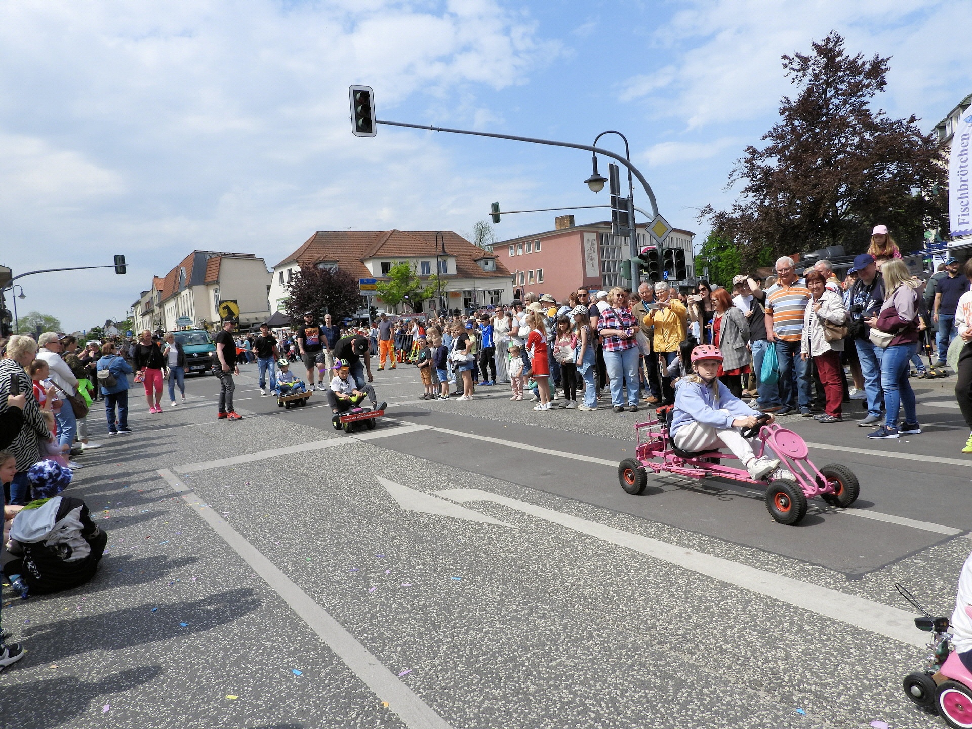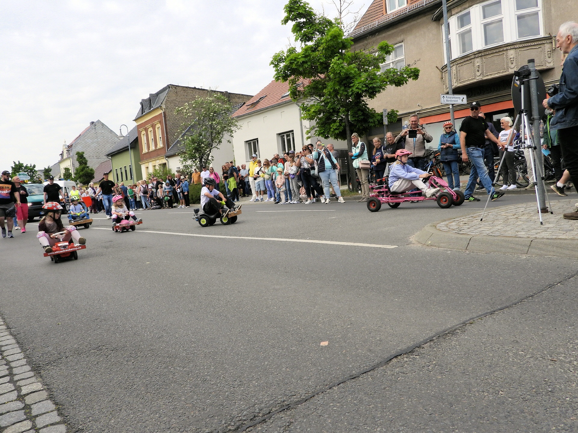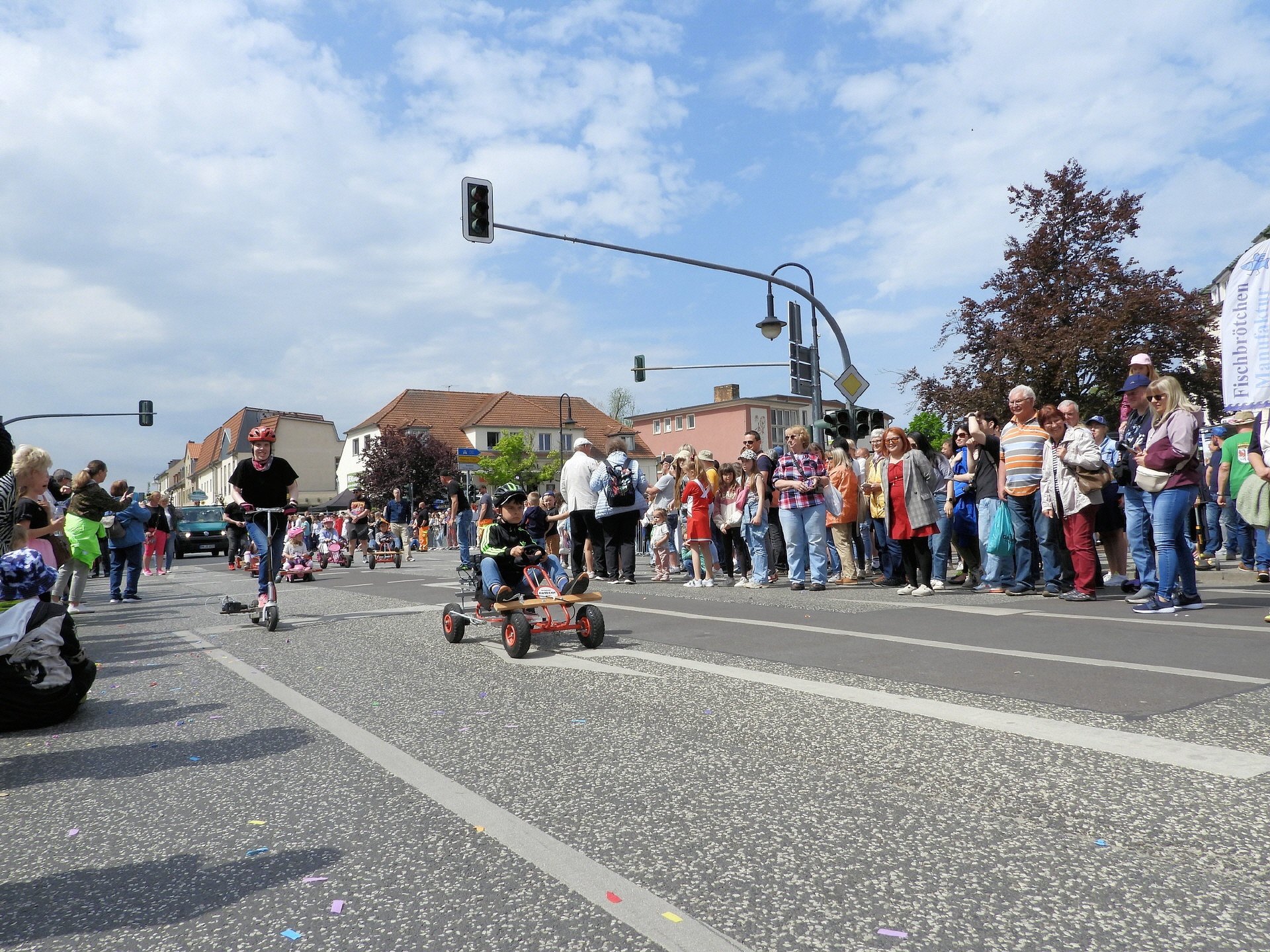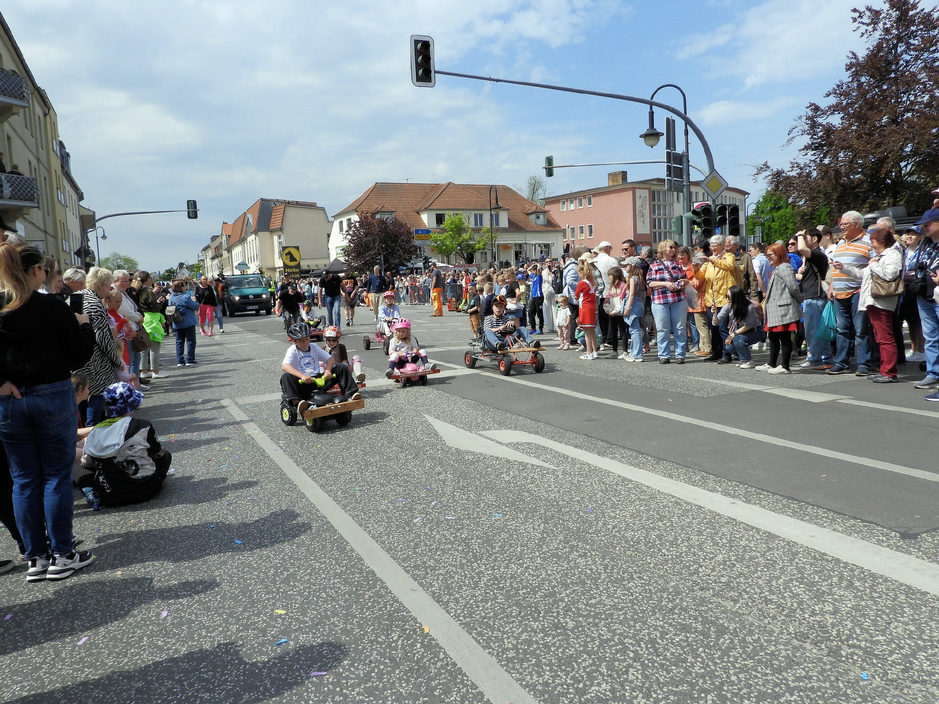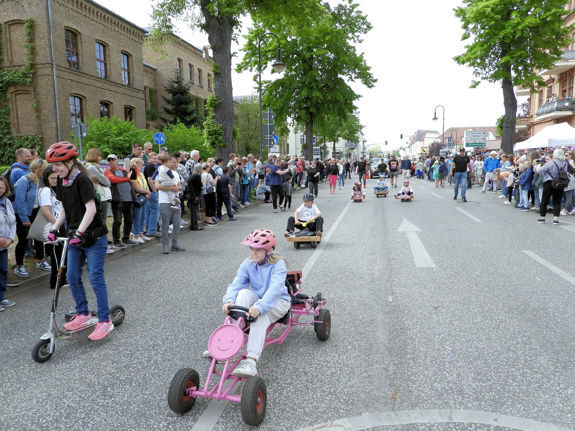 Angeführt wurde der Tross durch den "Töplitzer Inselsoundbollerwagen" mit DJ Oli und die auf dem Anhänger jubelnde Fangemeinde. Als Schluss folgten die Fahrer mit ihren Akkuschrauber-Boliden, ein Spass nicht nur für die Rennfahrer selbst sondern auch für die Zuschauer.