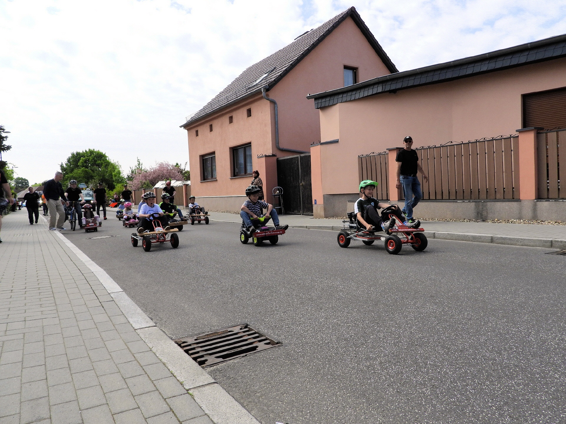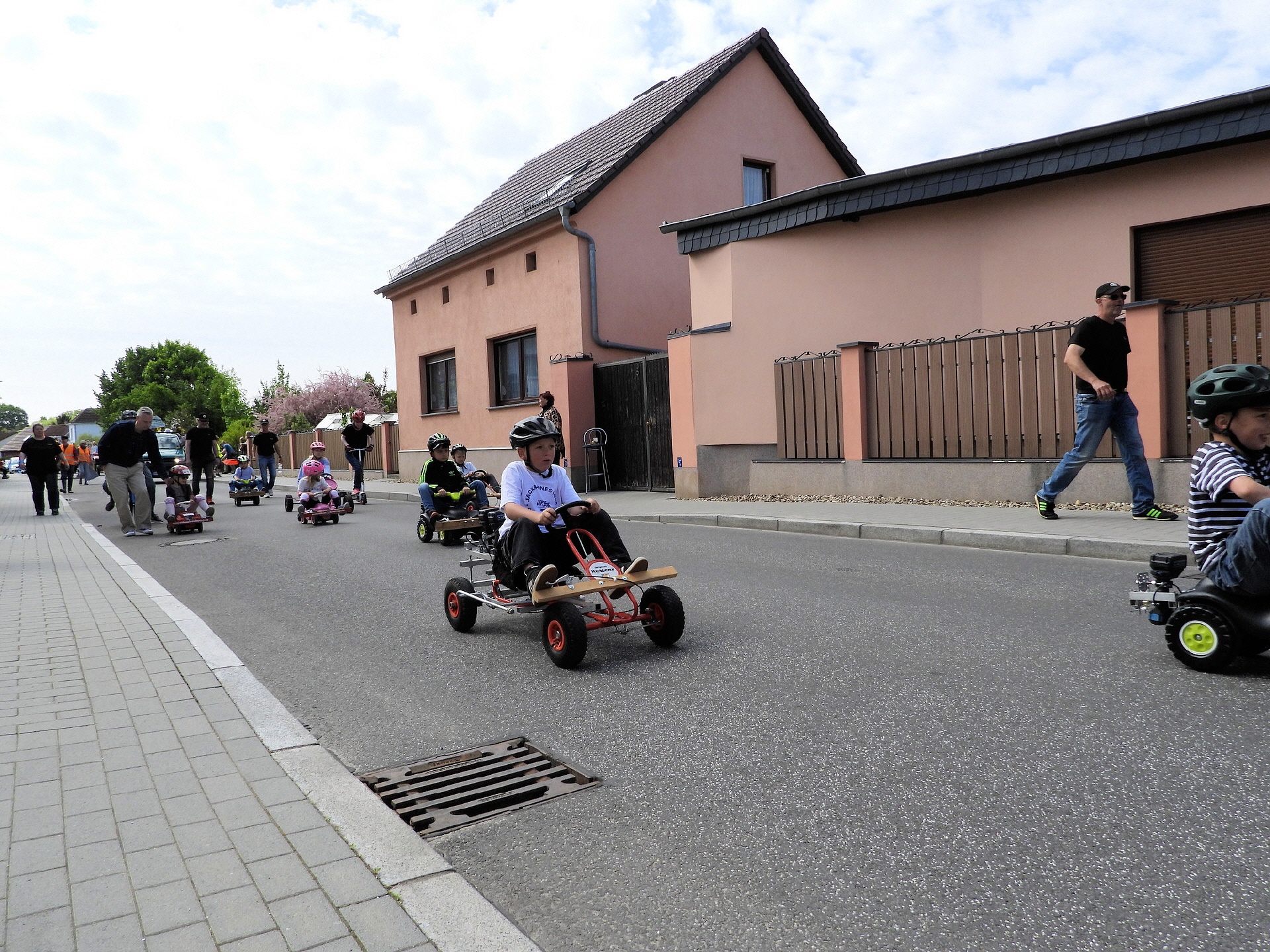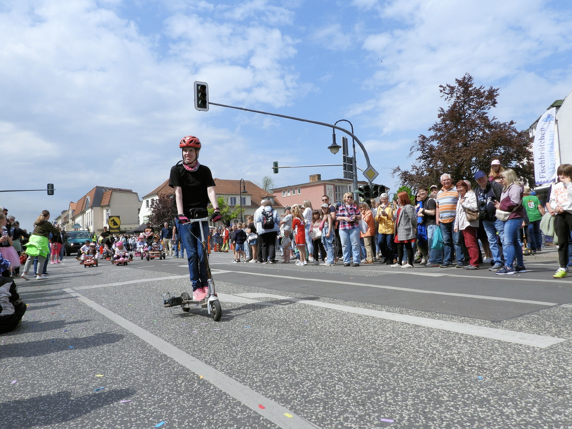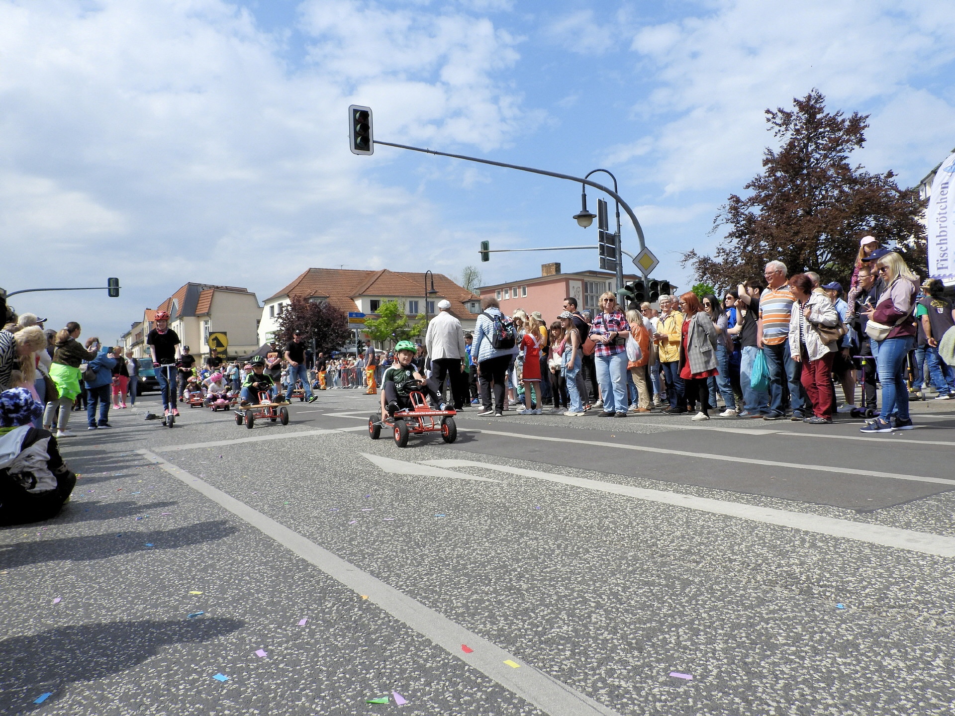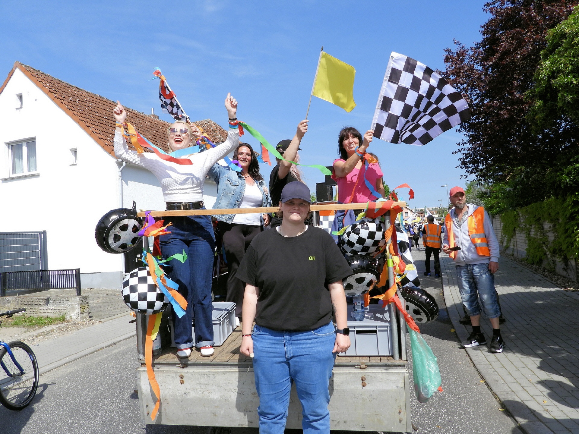 Angeführt wurde der Tross durch den "Töplitzer Inselsoundbollerwagen" mit DJ Oli und die auf dem Anhänger jubelnde Fangemeinde. Als Schluss folgten die Fahrer mit ihren Akkuschrauber-Boliden, ein Spass nicht nur für die Rennfahrer selbst sondern auch für die Zuschauer.