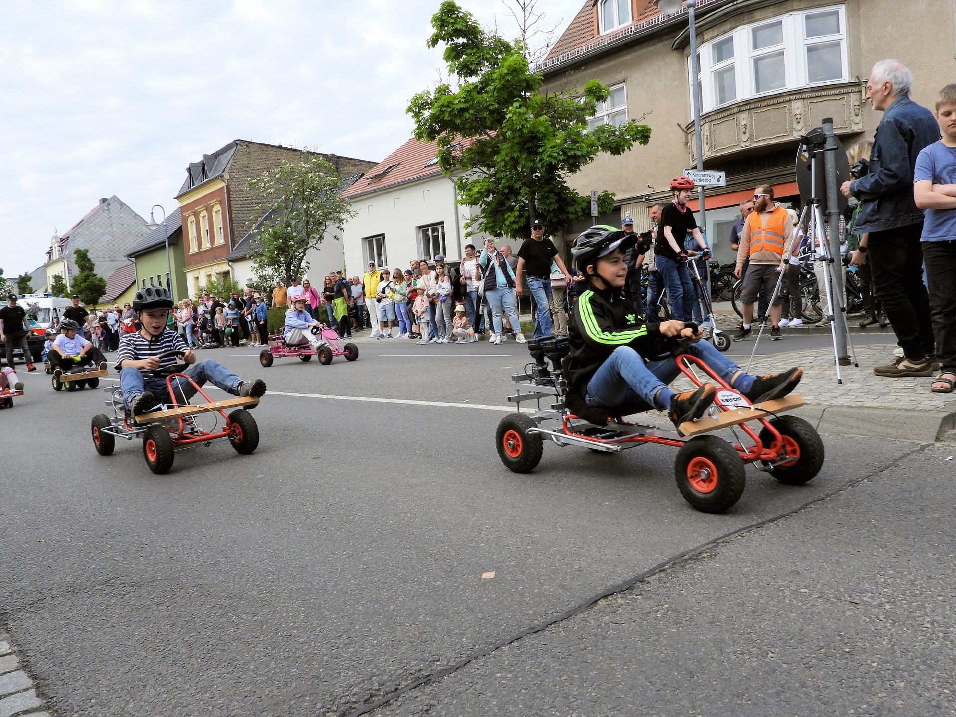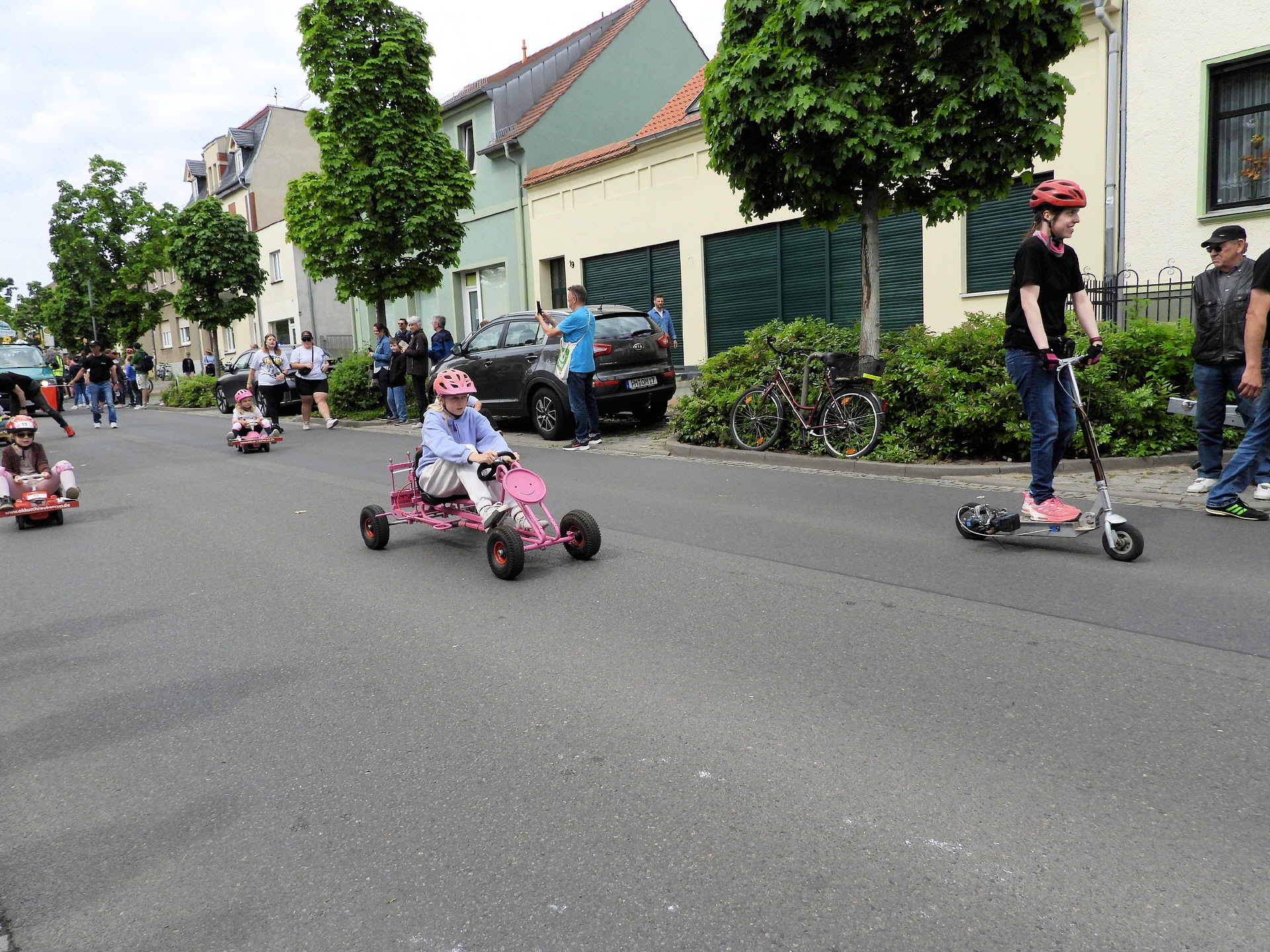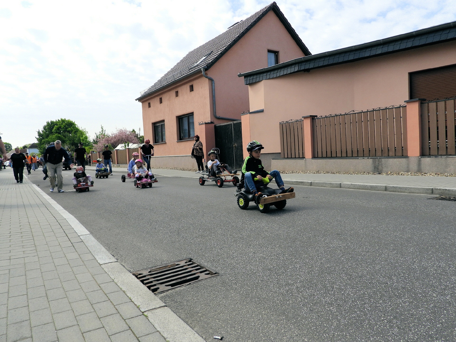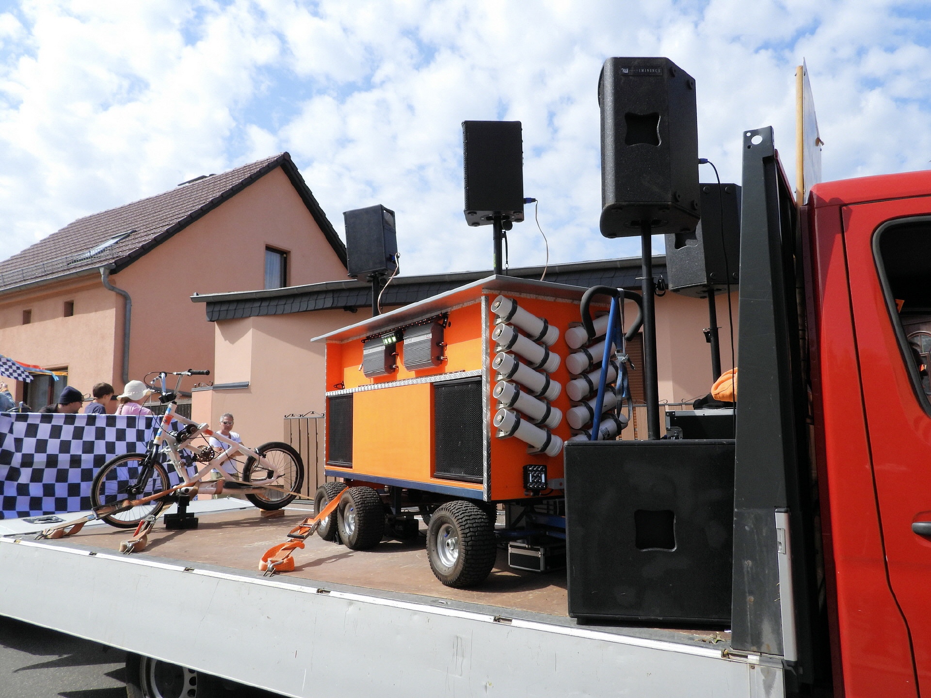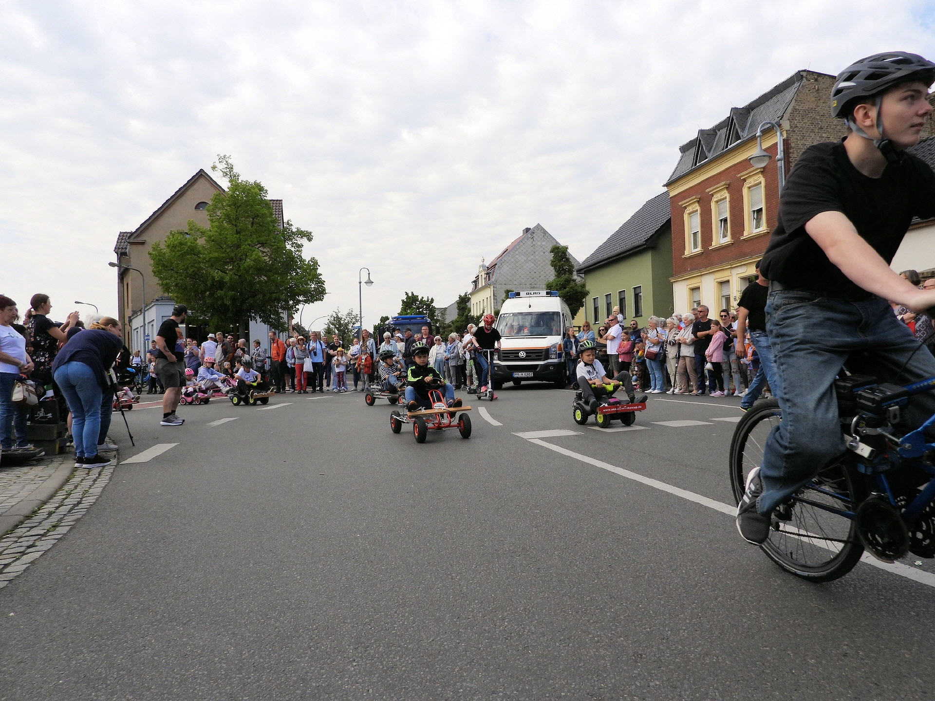 Angeführt wurde der Tross durch den "Töplitzer Inselsoundbollerwagen" mit DJ Oli und die auf dem Anhänger jubelnde Fangemeinde. Als Schluss folgten die Fahrer mit ihren Akkuschrauber-Boliden, ein Spass nicht nur für die Rennfahrer selbst sondern auch für die Zuschauer.
