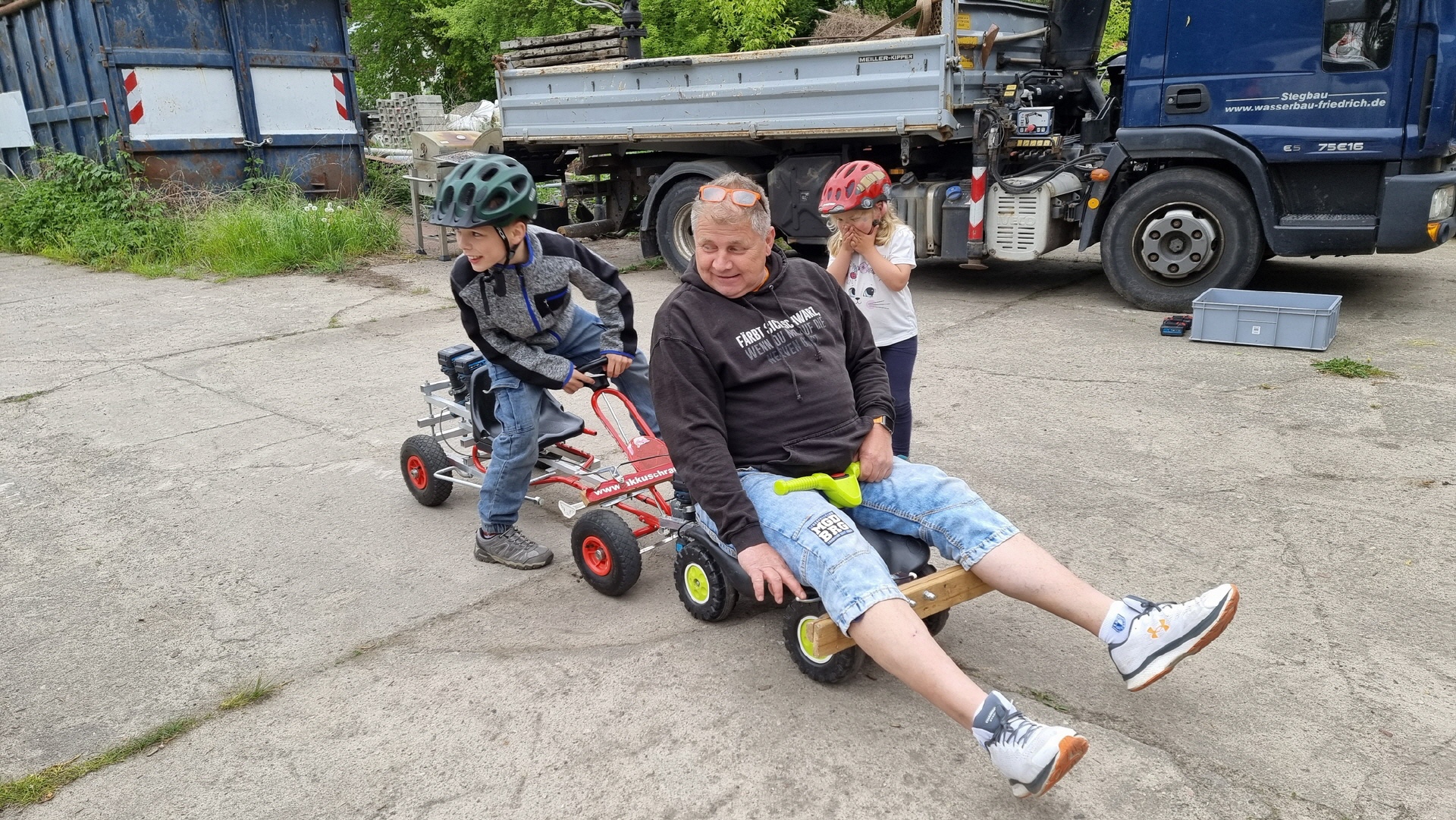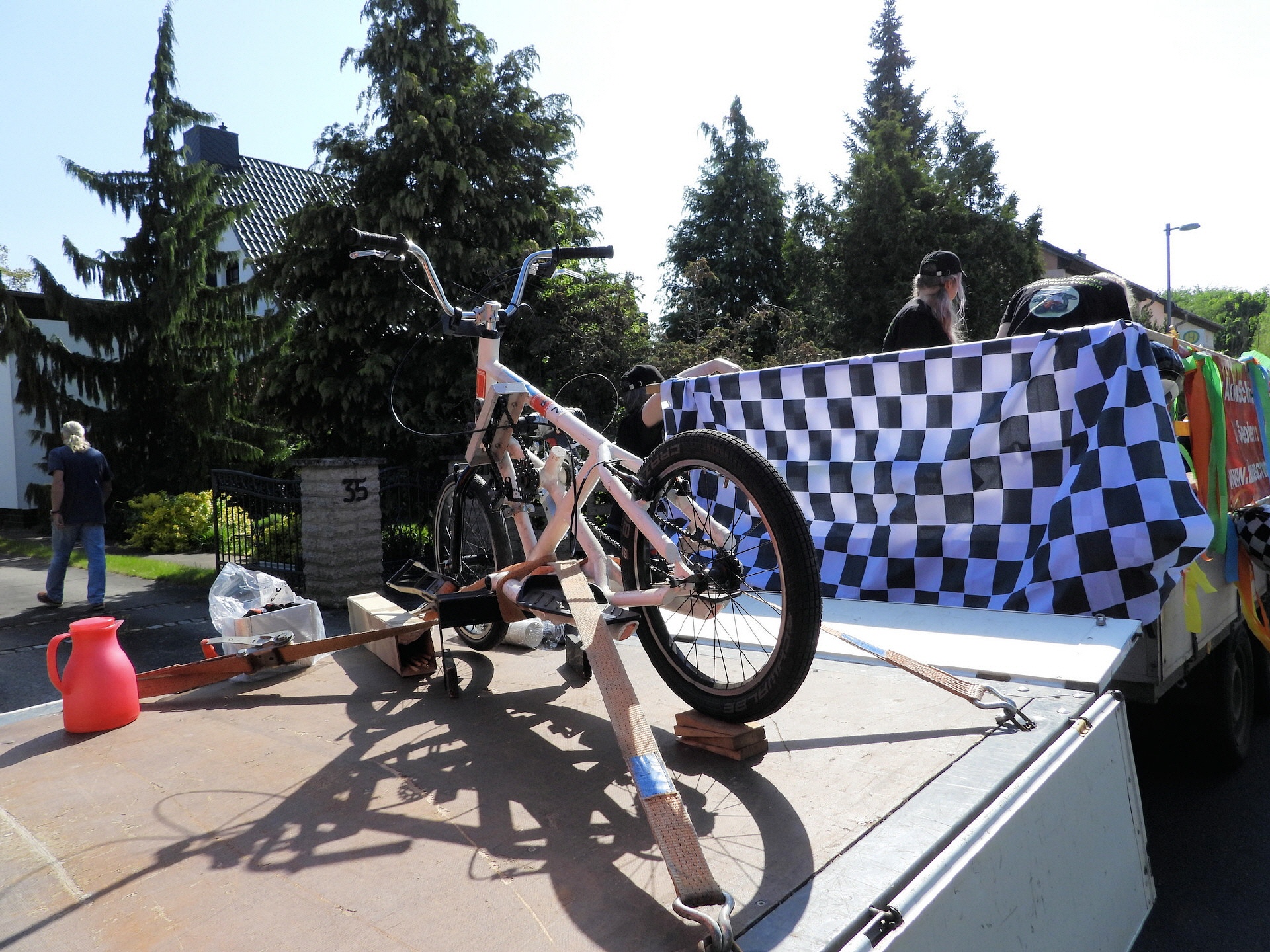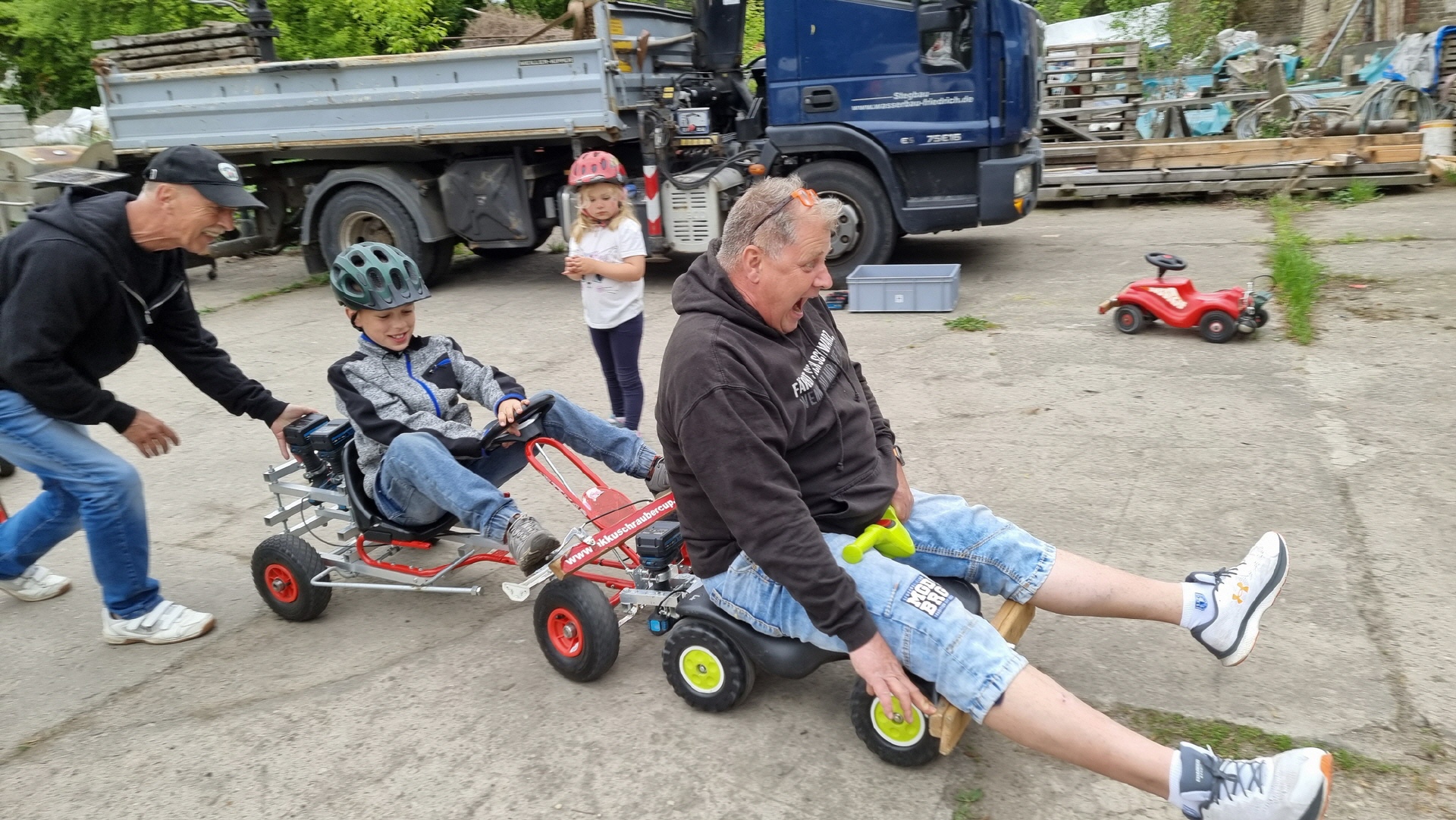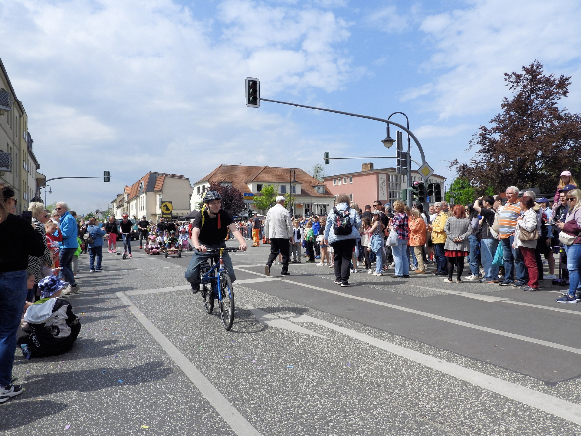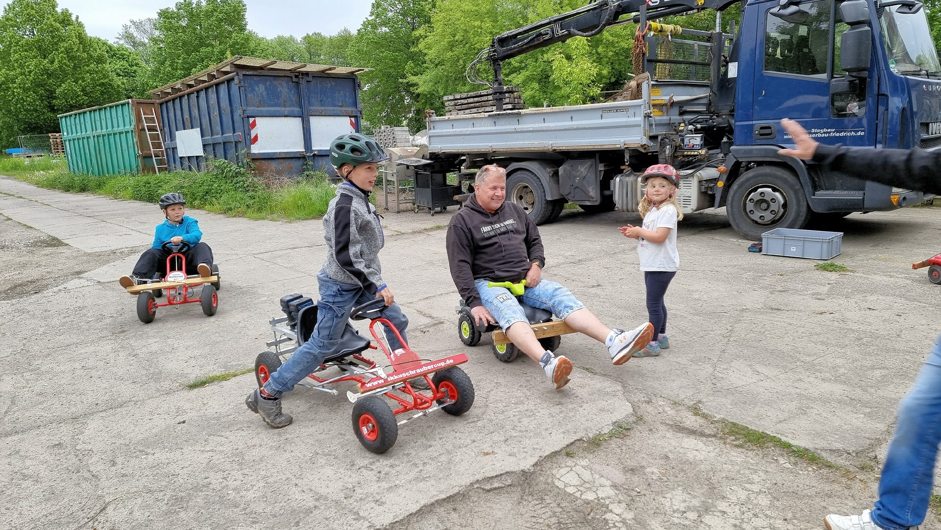 Angeführt wurde der Tross durch den "Töplitzer Inselsoundbollerwagen" mit DJ Oli und die auf dem Anhänger jubelnde Fangemeinde. Als Schluss folgten die Fahrer mit ihren Akkuschrauber-Boliden, ein Spass nicht nur für die Rennfahrer selbst sondern auch für die Zuschauer.