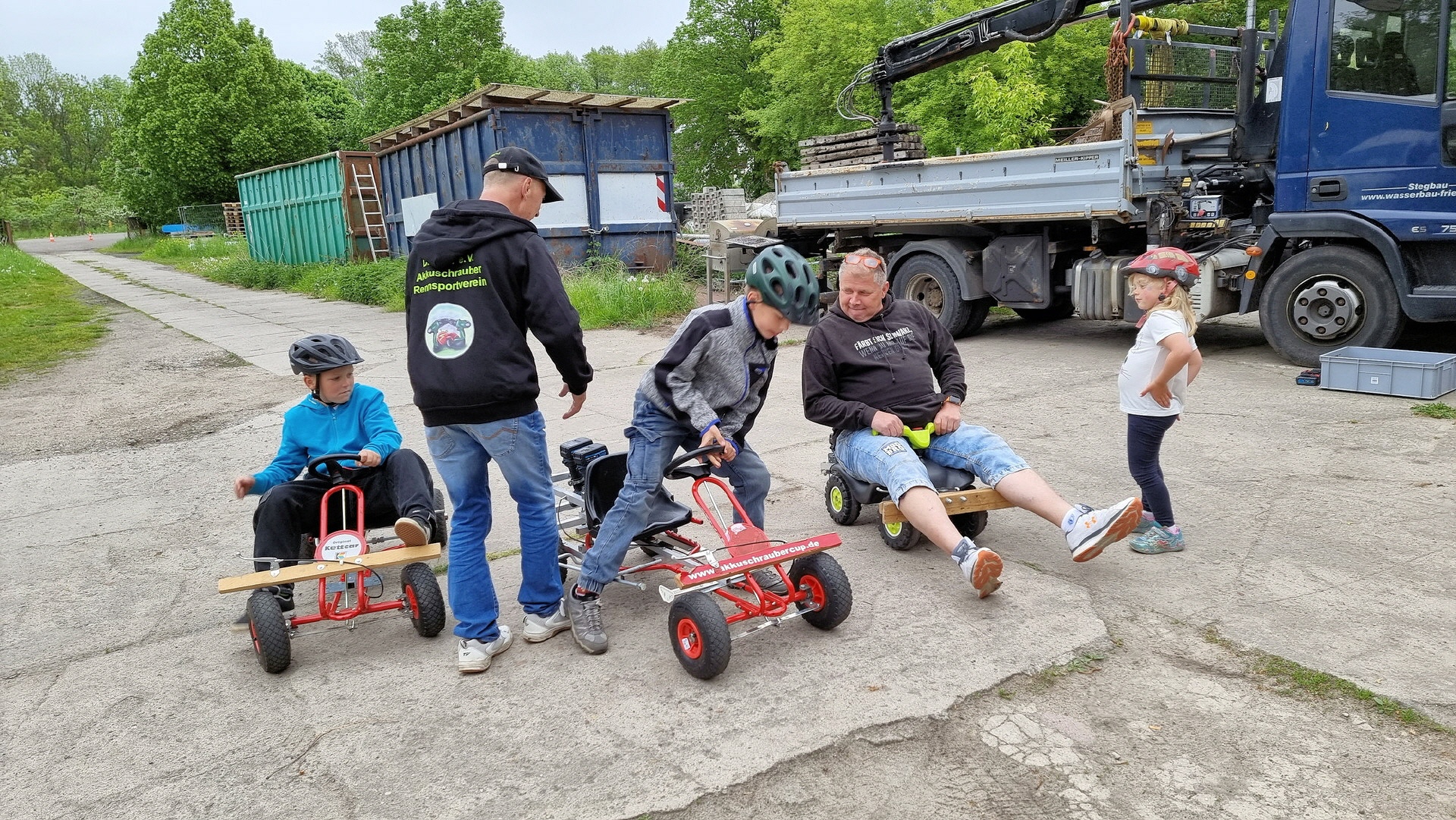 Deutscher Akkuschrauber Rennsport Verein (DASRV e.V.) hier am Start, mit "drei duzend jungen und jung gebliebenen Akkuschraubern".