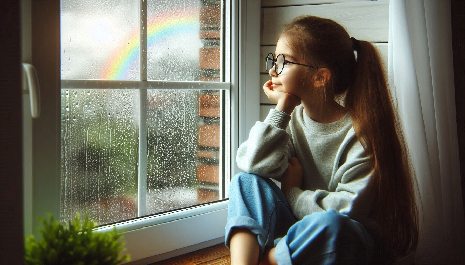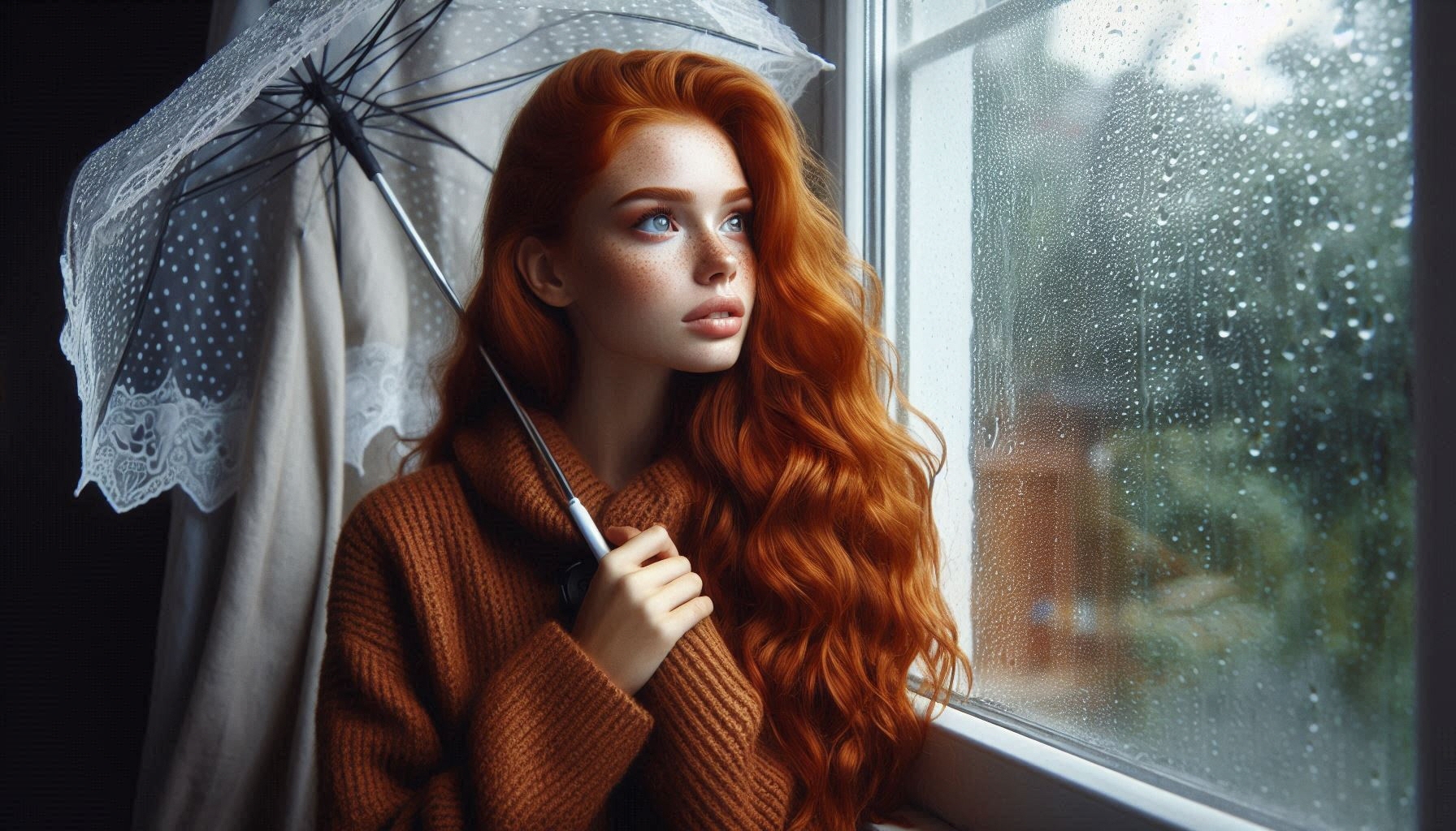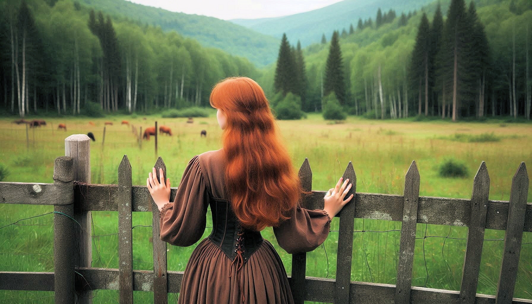 Grafik mit kleinem rothaarigem Mädchen am Weidezaun