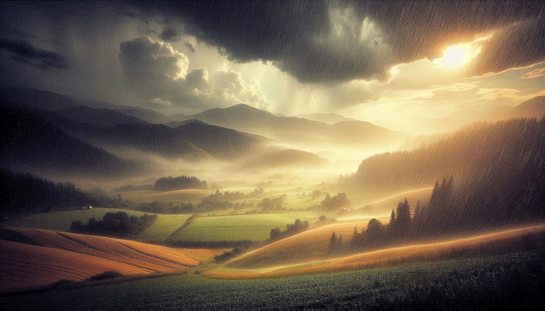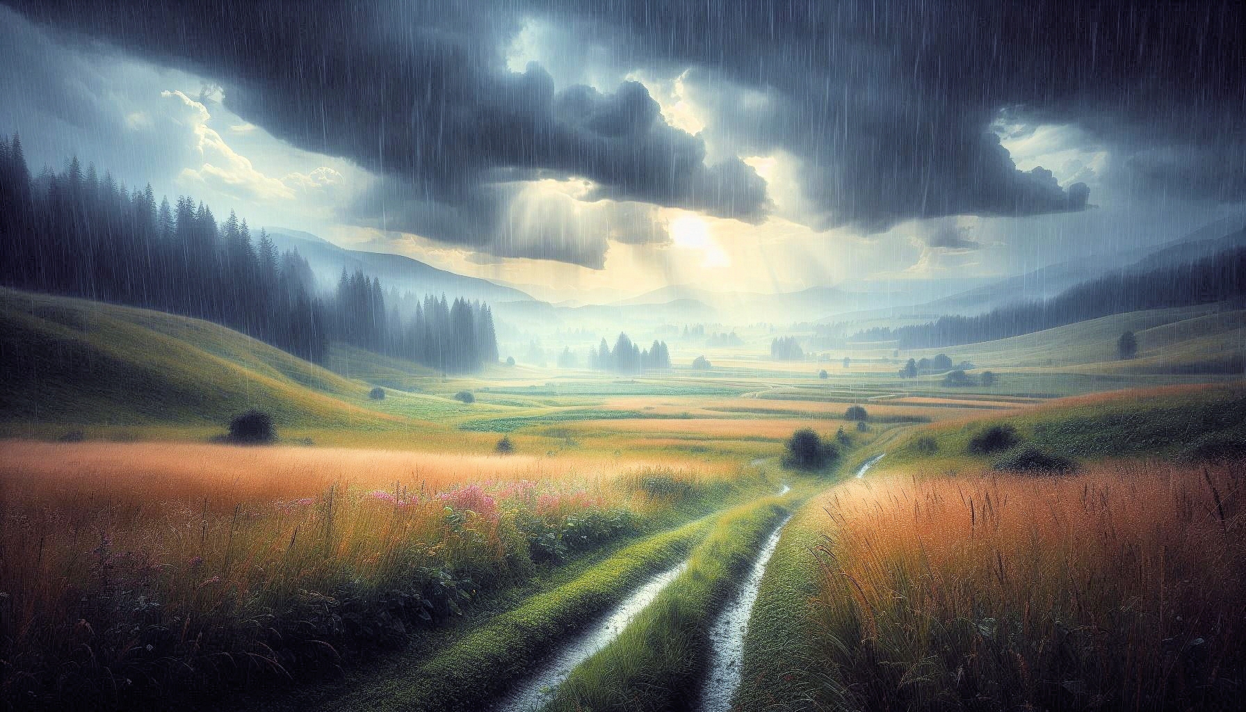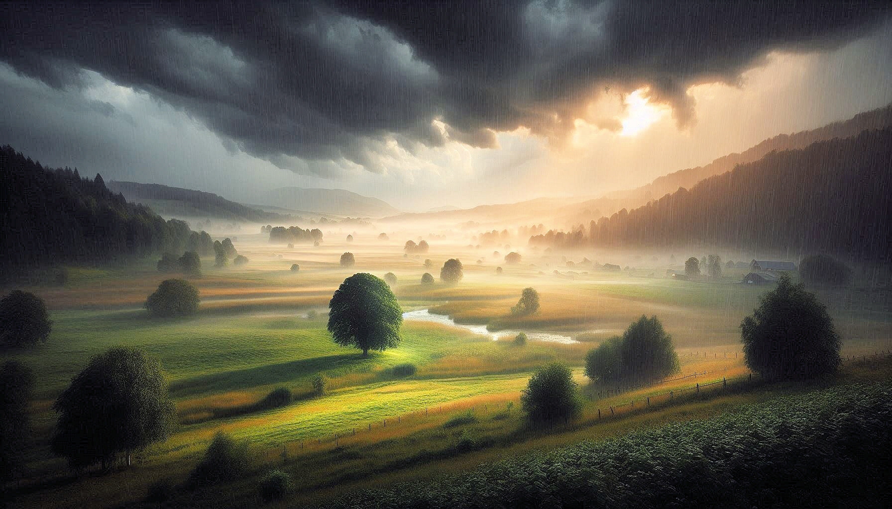 Landschaften beim Sommerregen