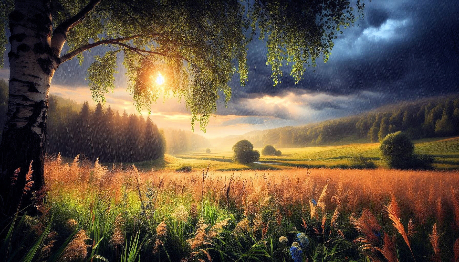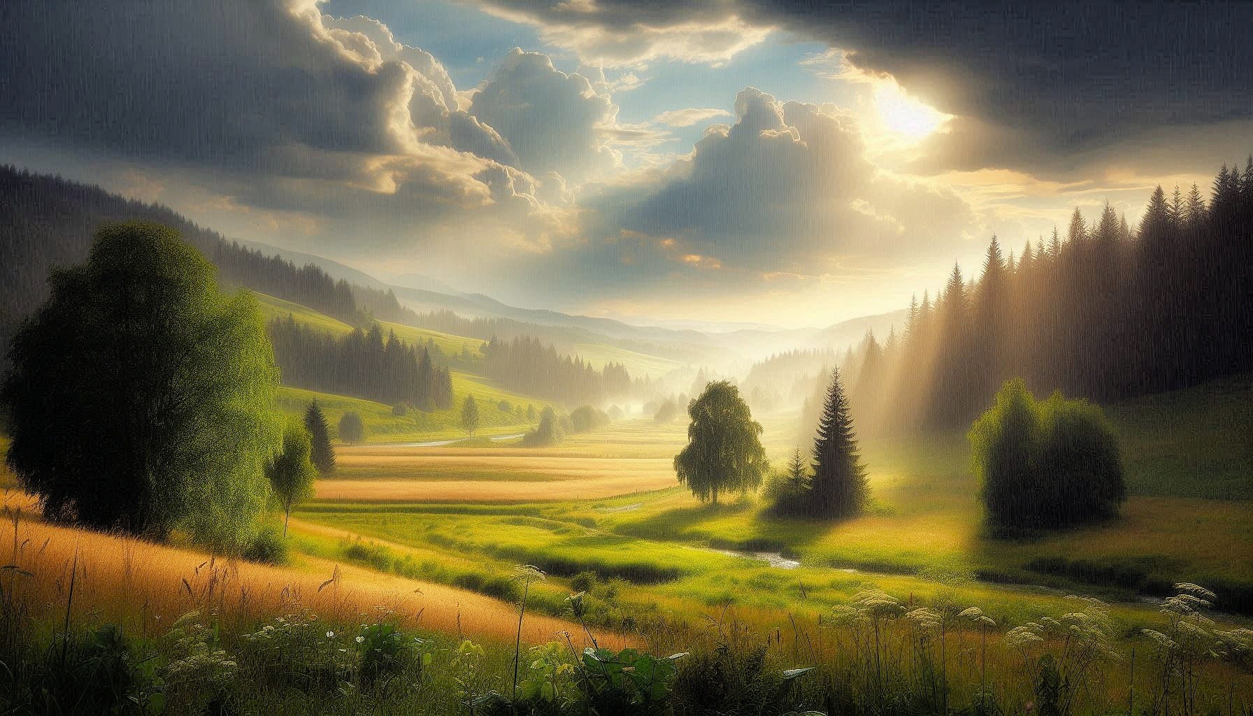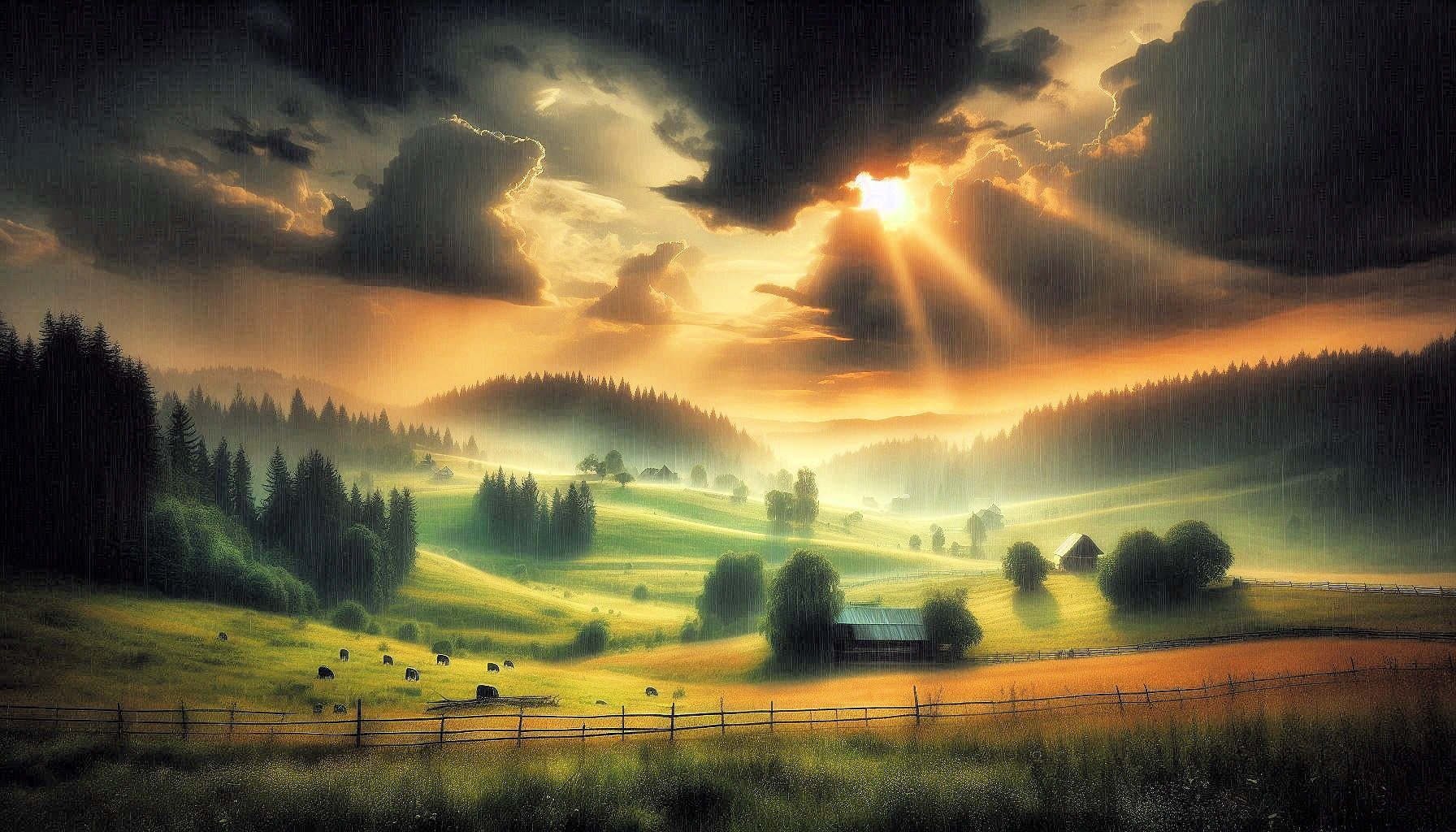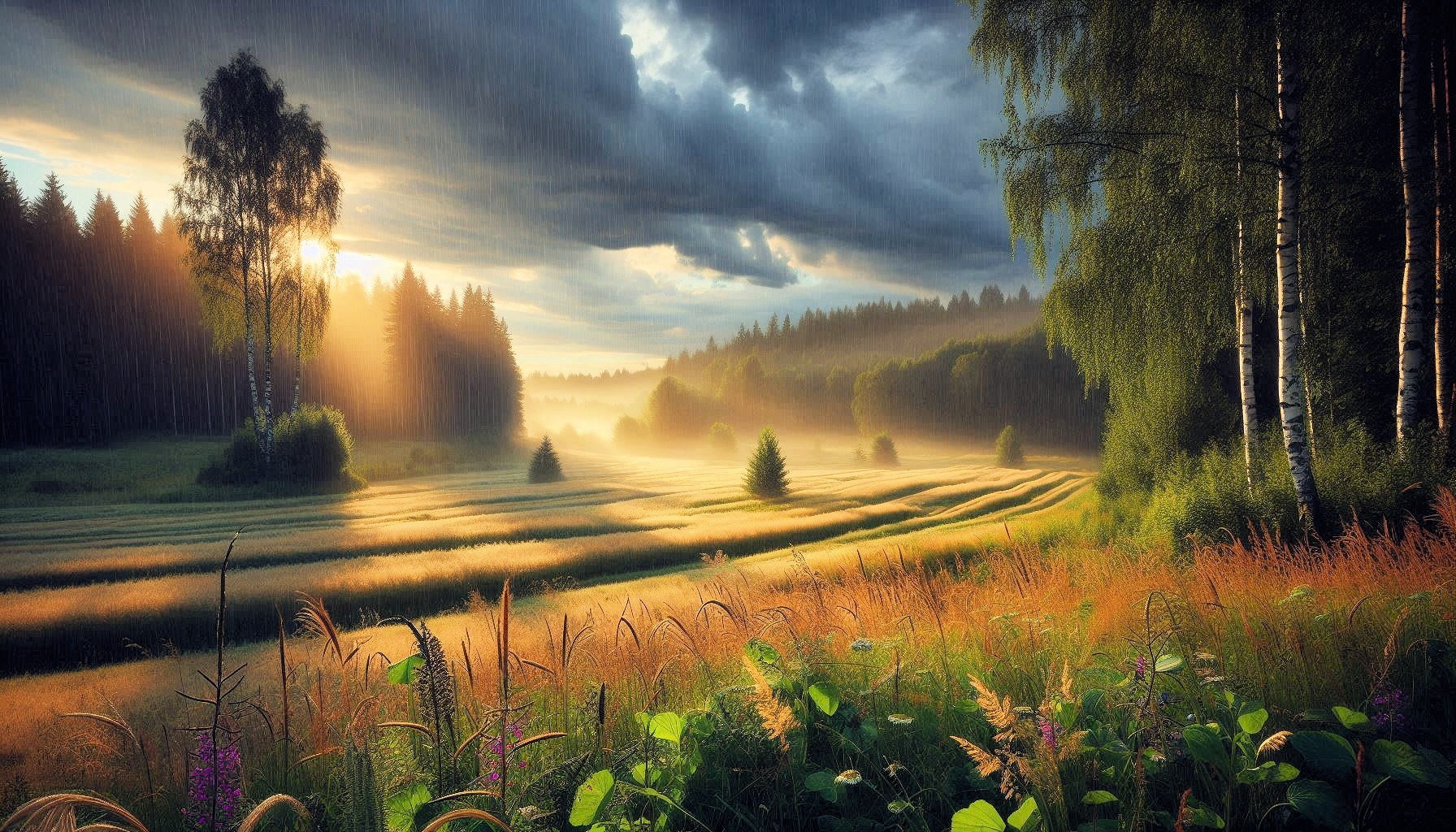 Landschaften beim Sommerregen