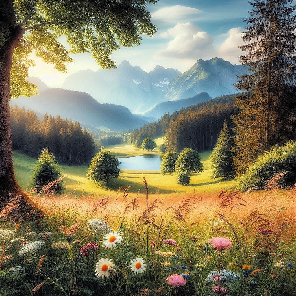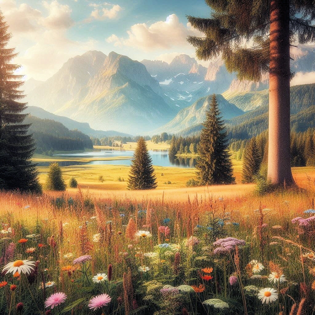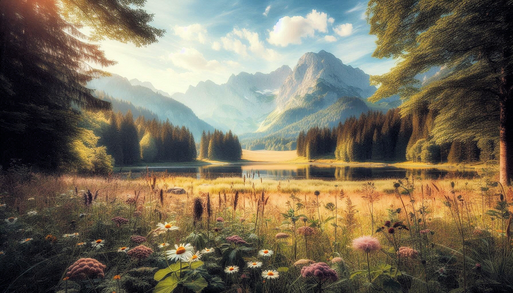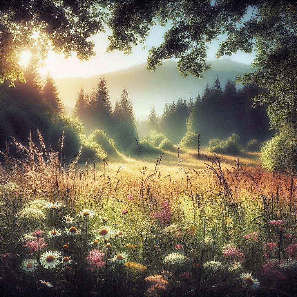 Wiesenblumen in sommerlicher Landschaft