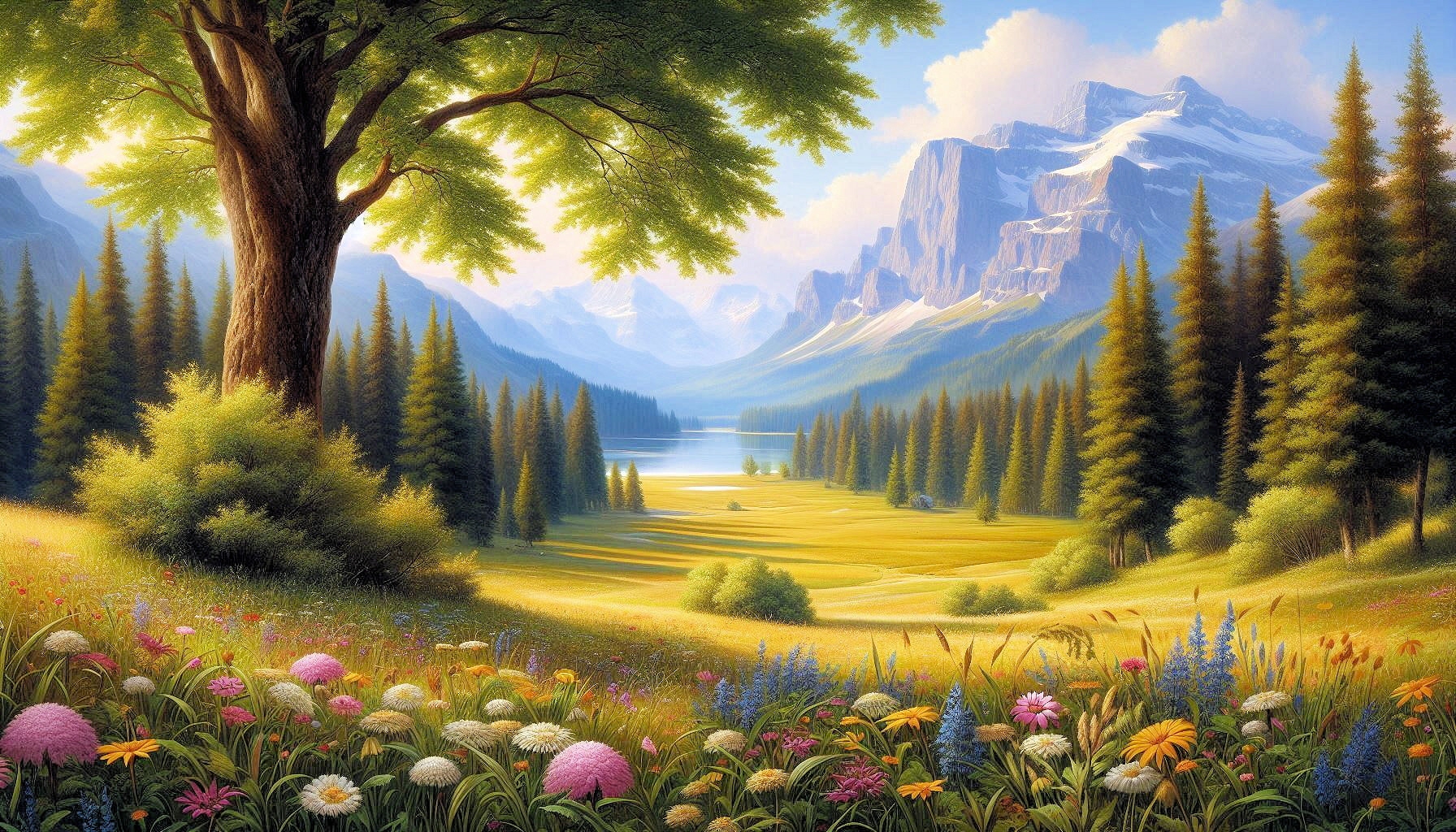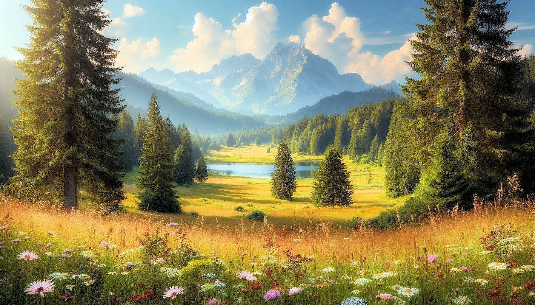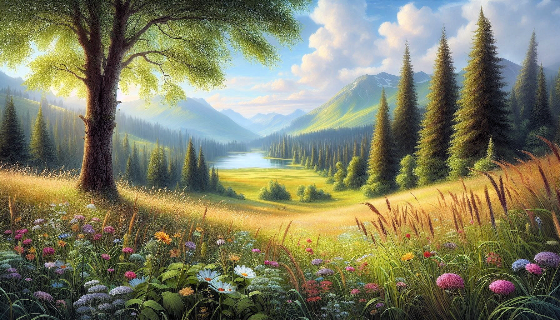 Wiesenblumen in sommerlicher Landschaft
