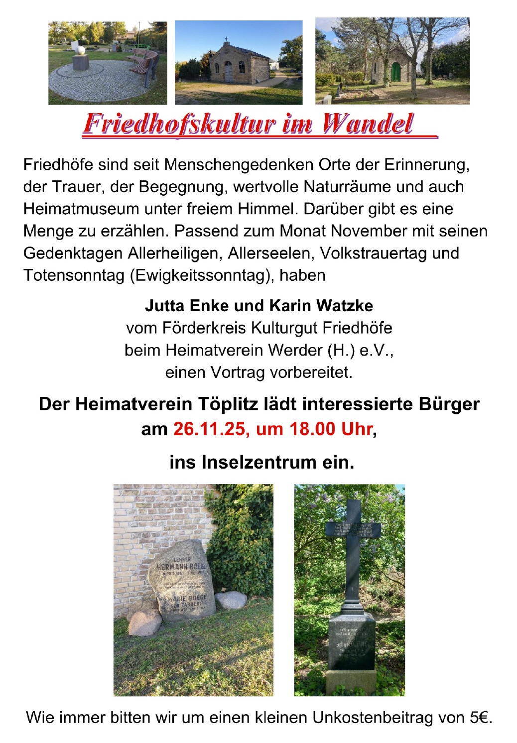 26.11.2025: Friedhöfe in Werder, 18 Uhr, Inselzentrum [mehr]