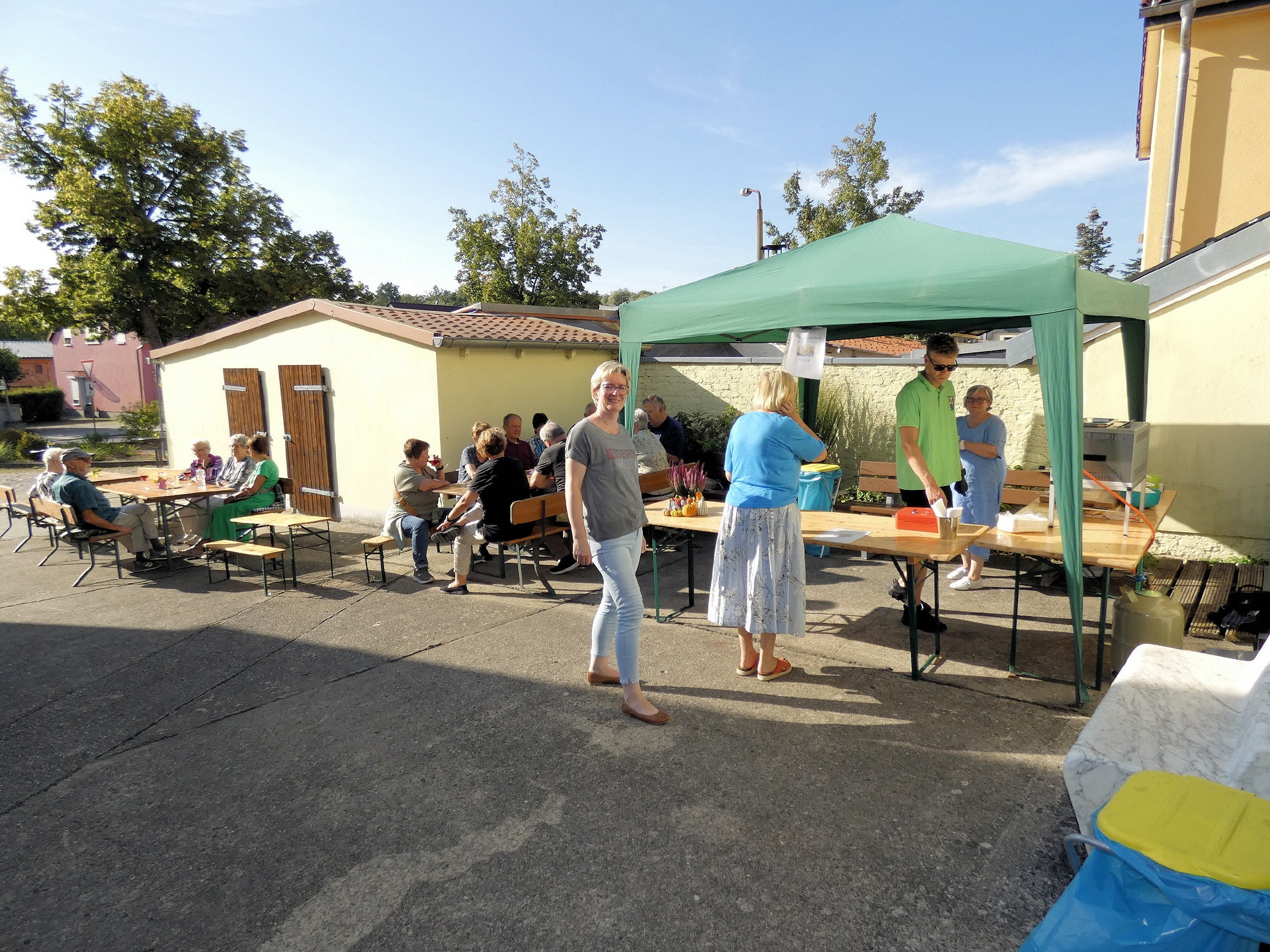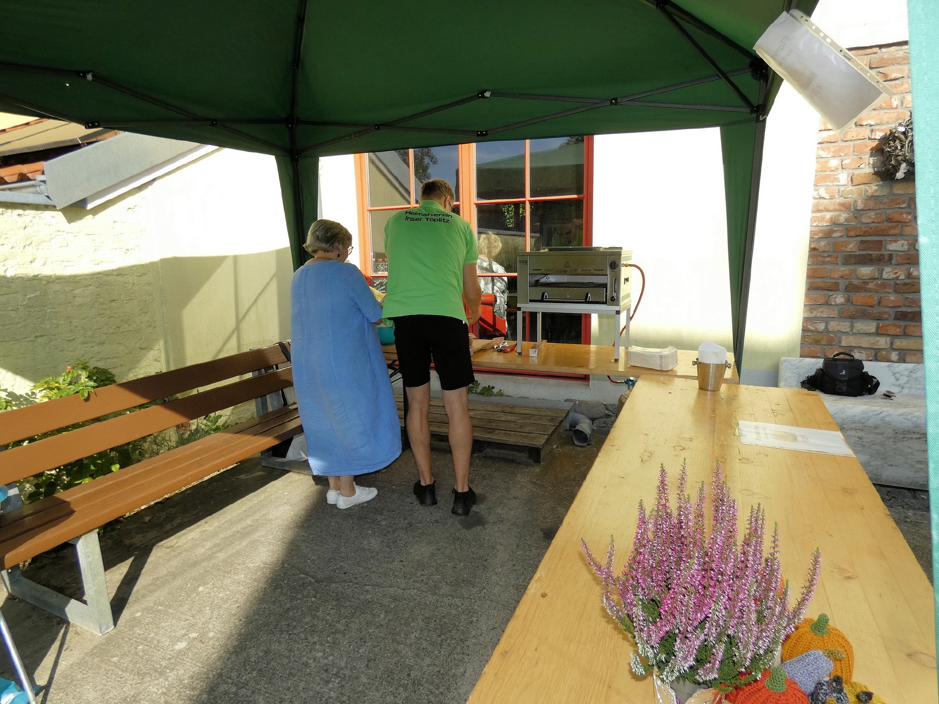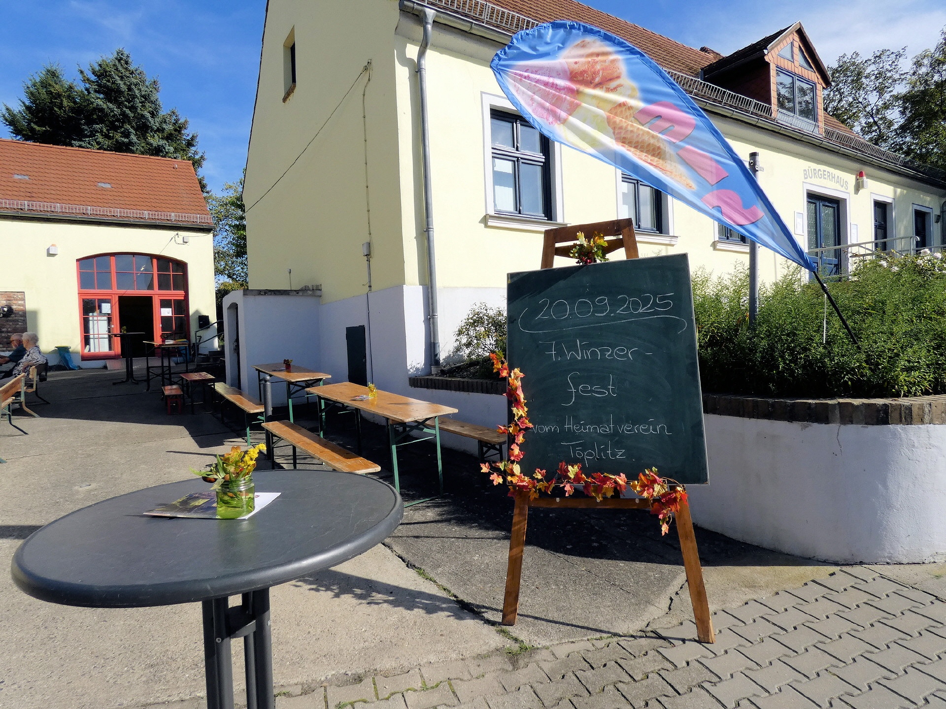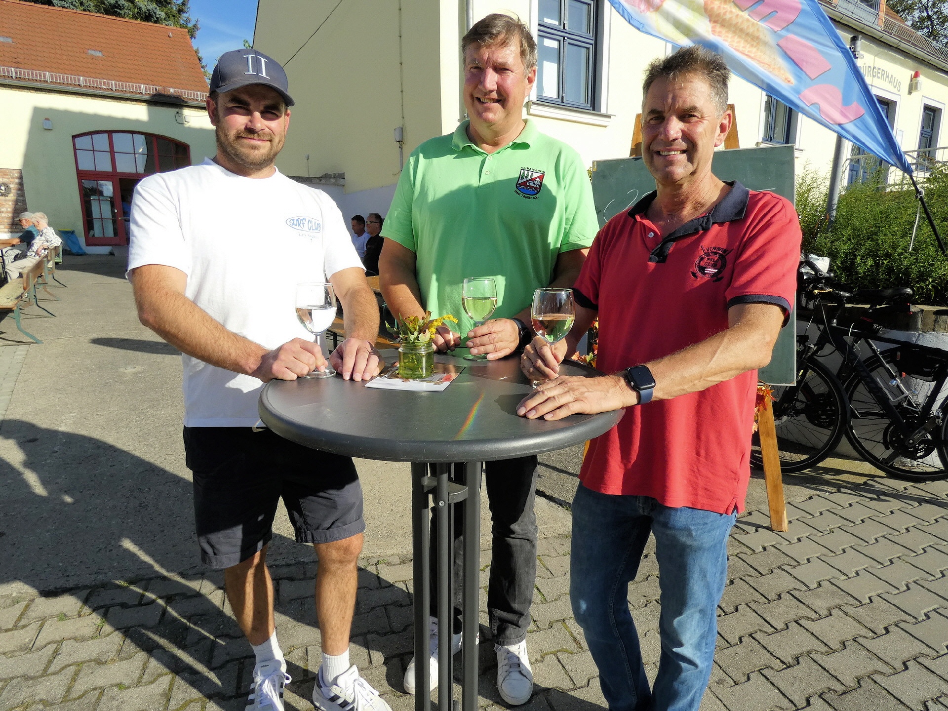 Das Winzerfest fiel in diesem Jahr etwas kleiner aus. Da auch der Töplitzer Heimatverein mit deutlich weniger tatkräftiger Unterstützung auskommen musste, beschränkte sich die Festlichkeit auf die Fläche der Galerie und die Wiese hinter dem Bürgerhaus. Dort gab es Zelte mit vielen Sitzgelegenheiten. Der Parkplatz blieb frei.