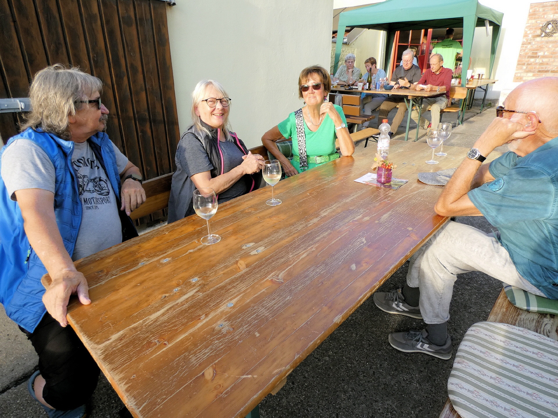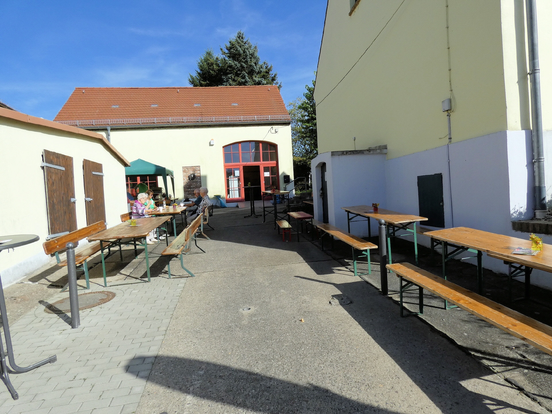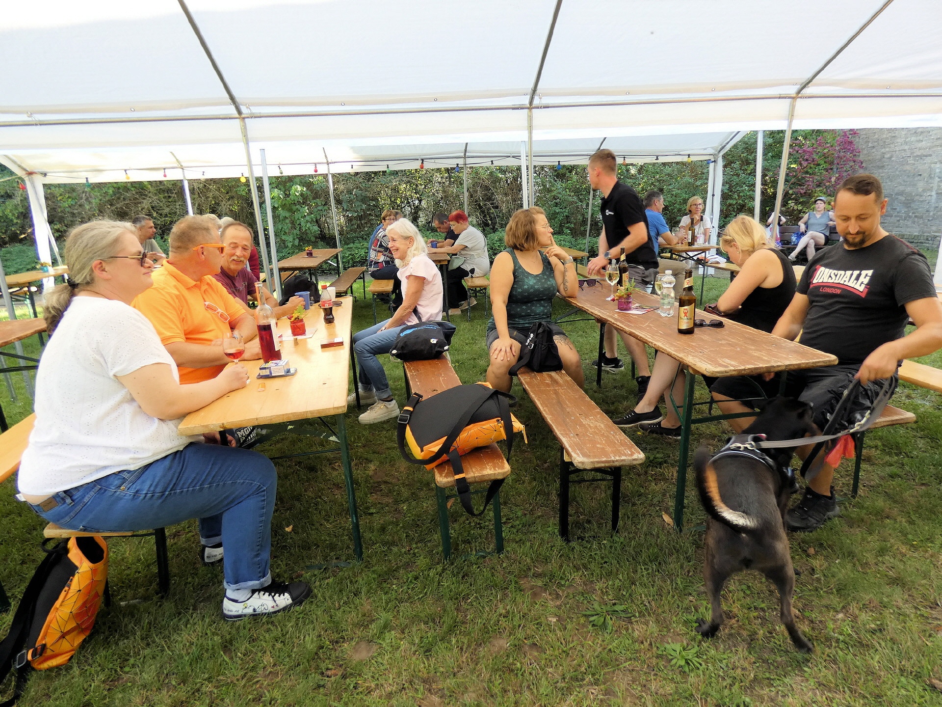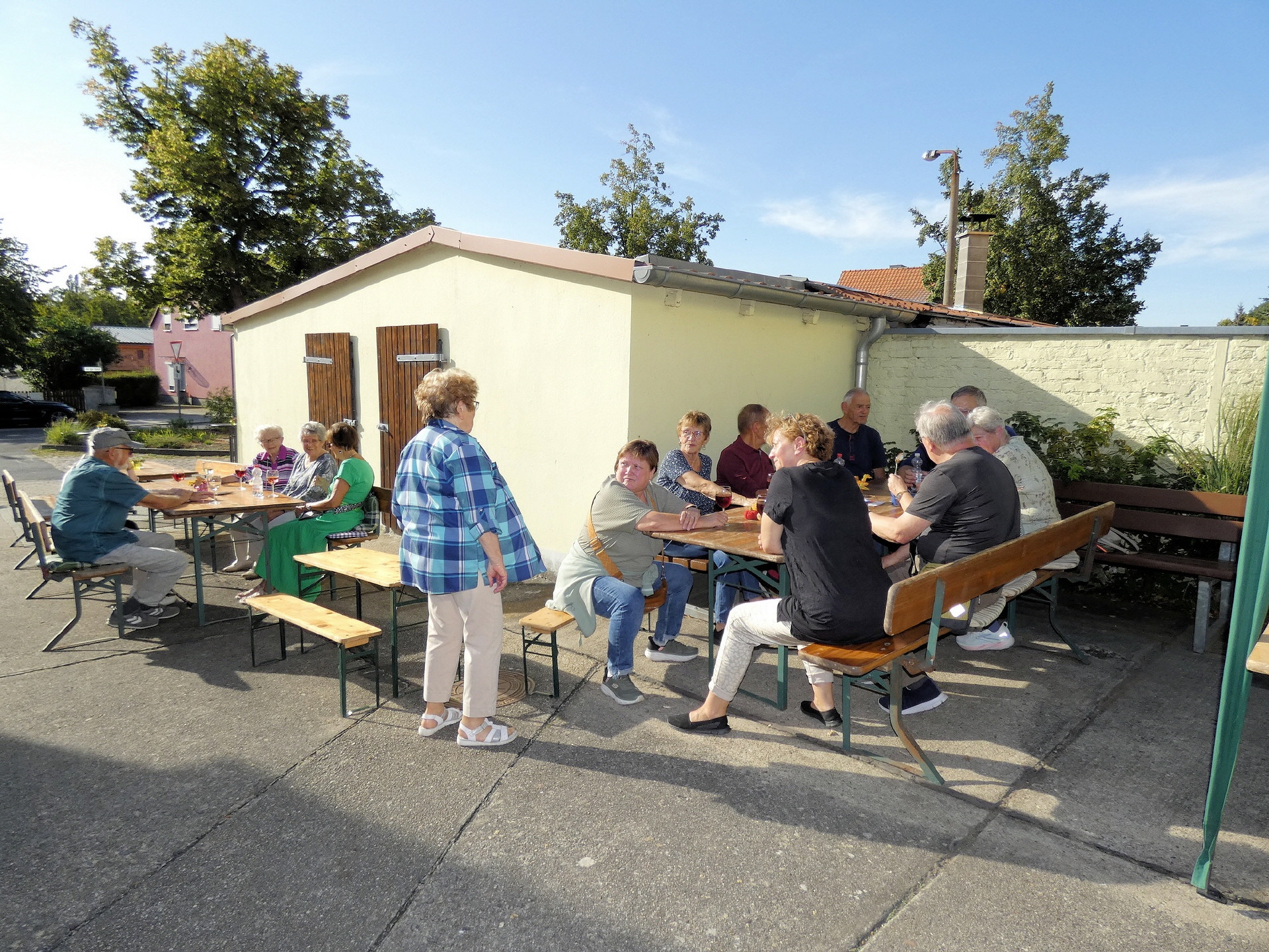 Das Winzerfest fiel in diesem Jahr etwas kleiner aus. Da auch der Töplitzer Heimatverein mit deutlich weniger tatkräftiger Unterstützung auskommen musste, beschränkte sich die Festlichkeit auf die Fläche der Galerie und die Wiese hinter dem Bürgerhaus. Dort gab es Zelte mit vielen Sitzgelegenheiten. Der Parkplatz blieb frei.
