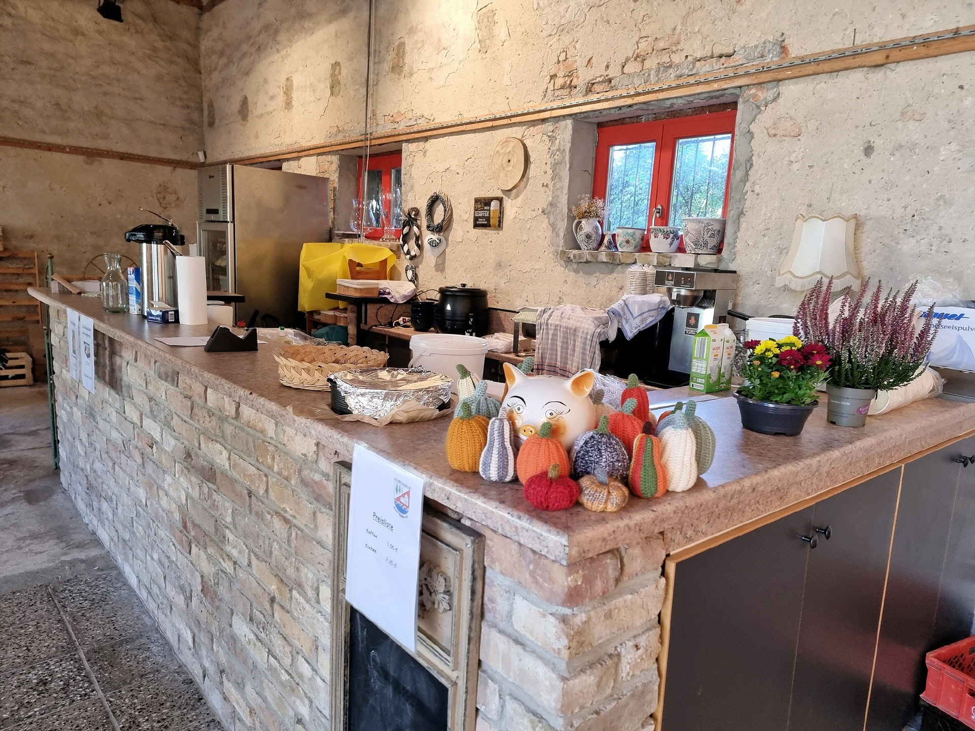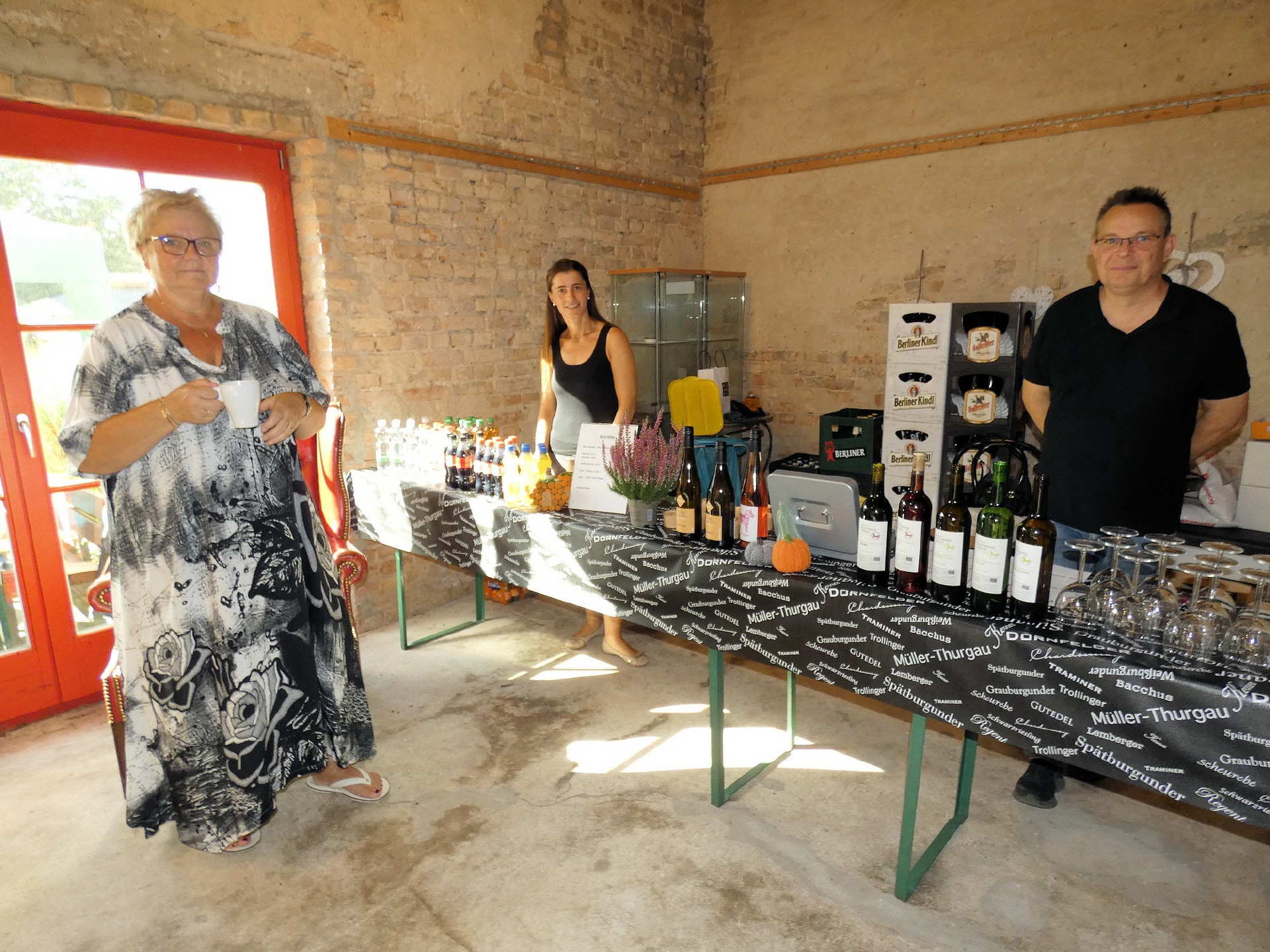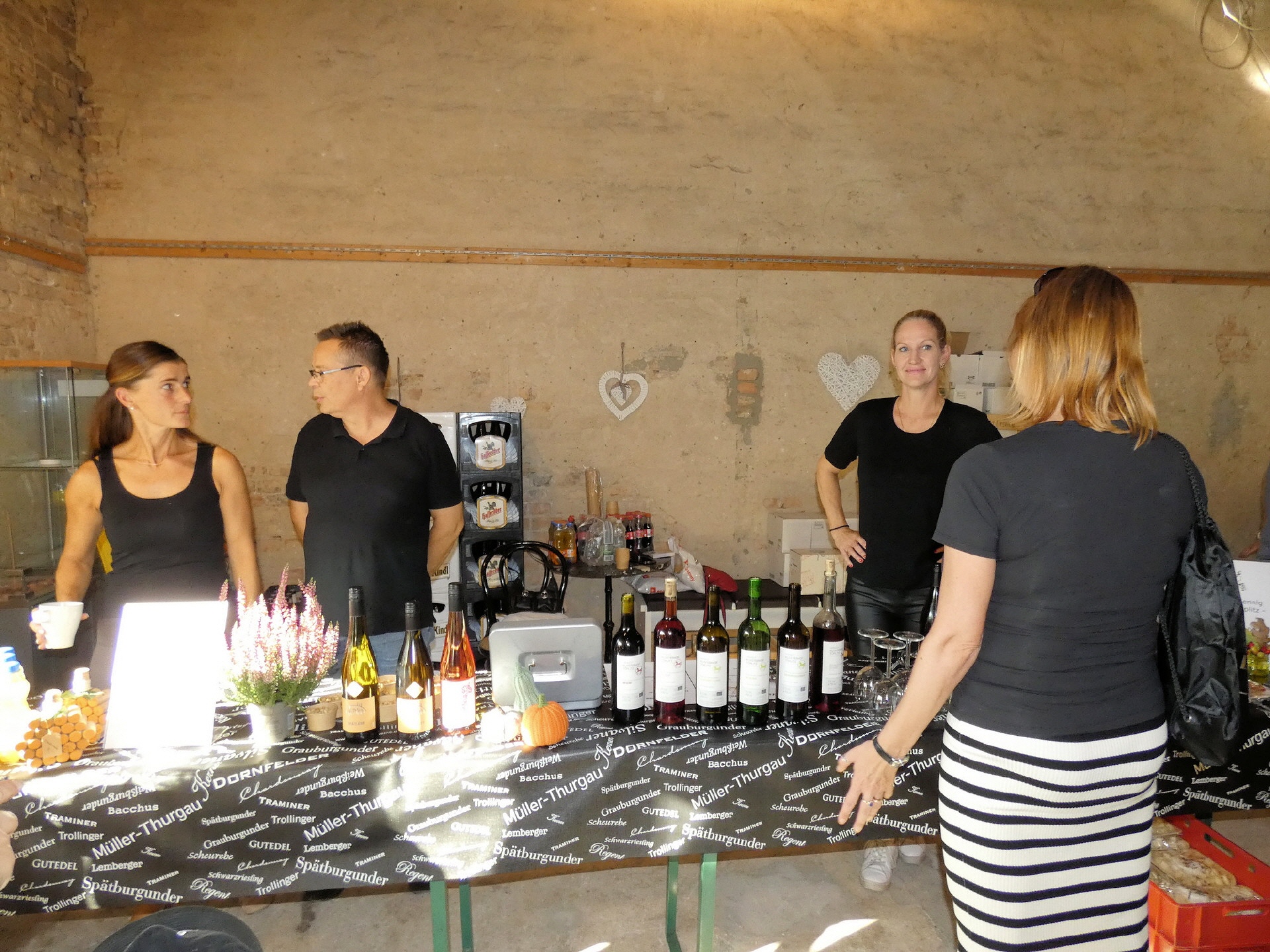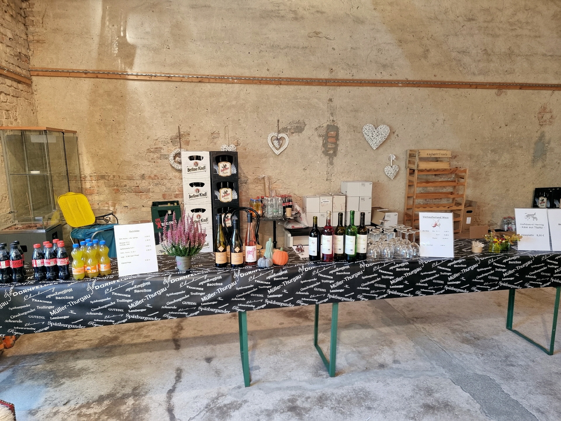 Im Angebot waren unter anderem: Rebenwein vom Klosterhof Töplitz, Rebenwein aus Höhnstedt, Bier und alkoholfreie Getränke, Kaffee und Kuchen in der Galerie, Flammkuchen, Kürbissuppe und Käseplatten.