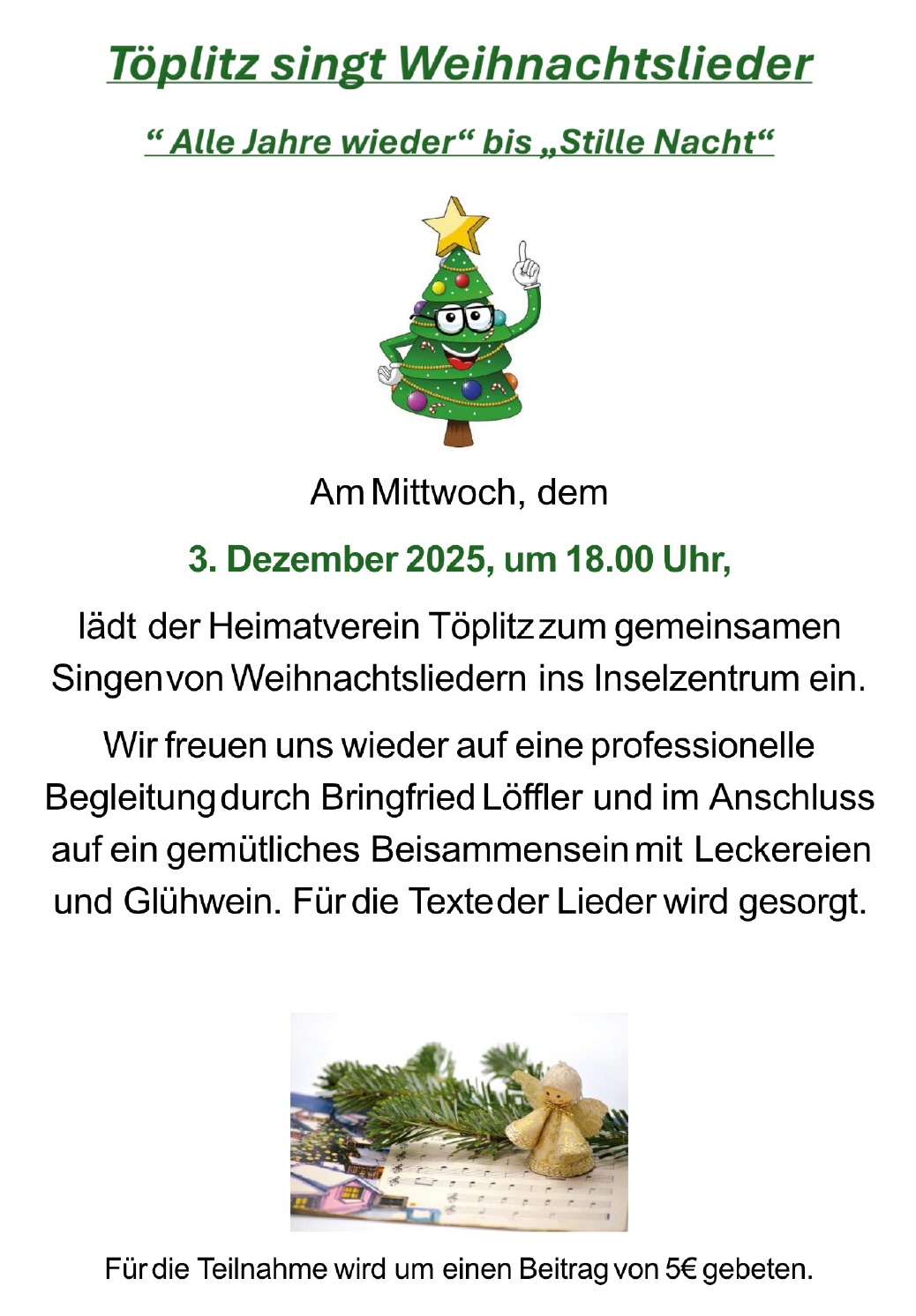 03.12.2025: Töplitz singt Weihnachtslieder, 18 Uhr, Inselzentrum [mehr]