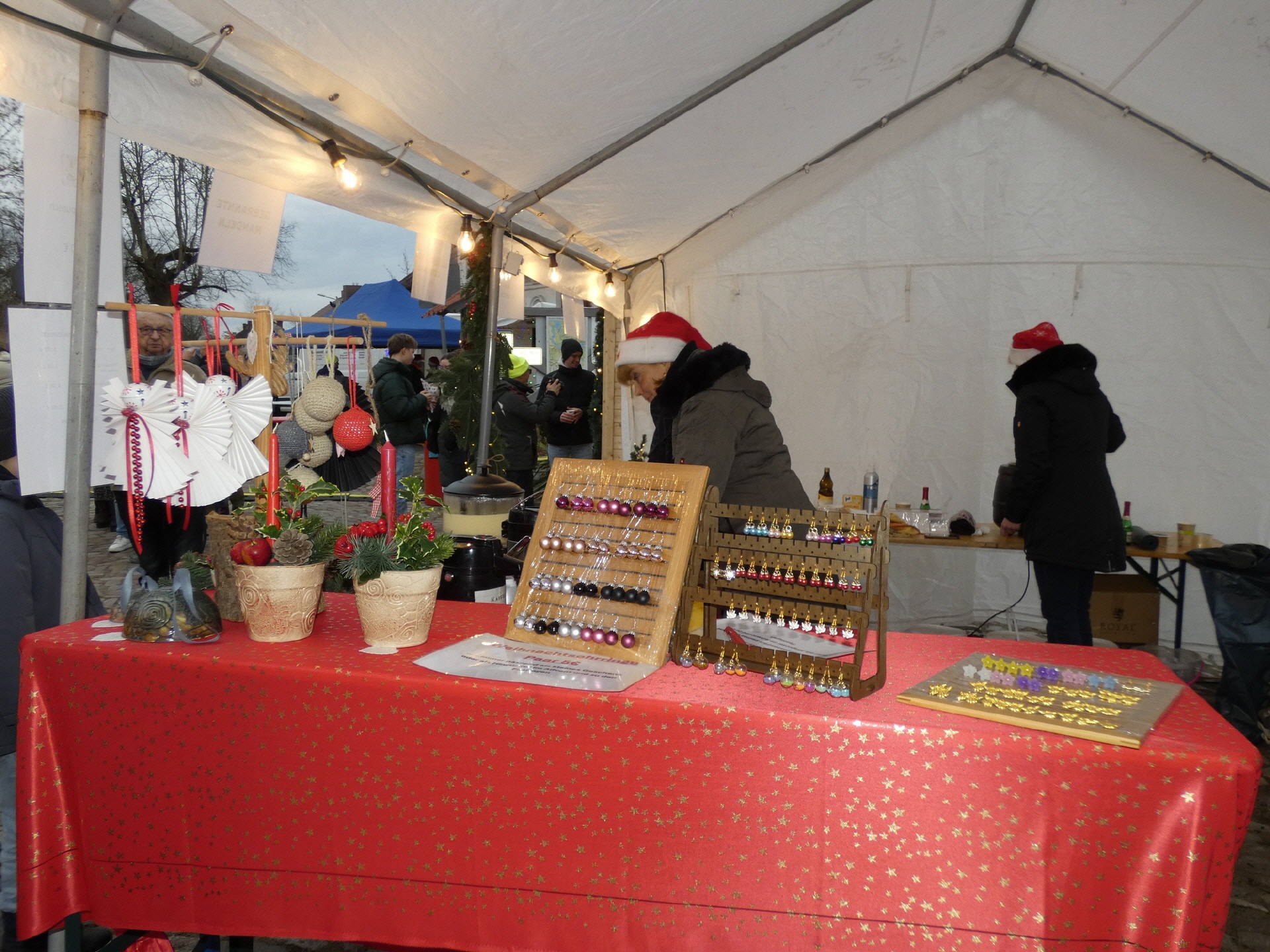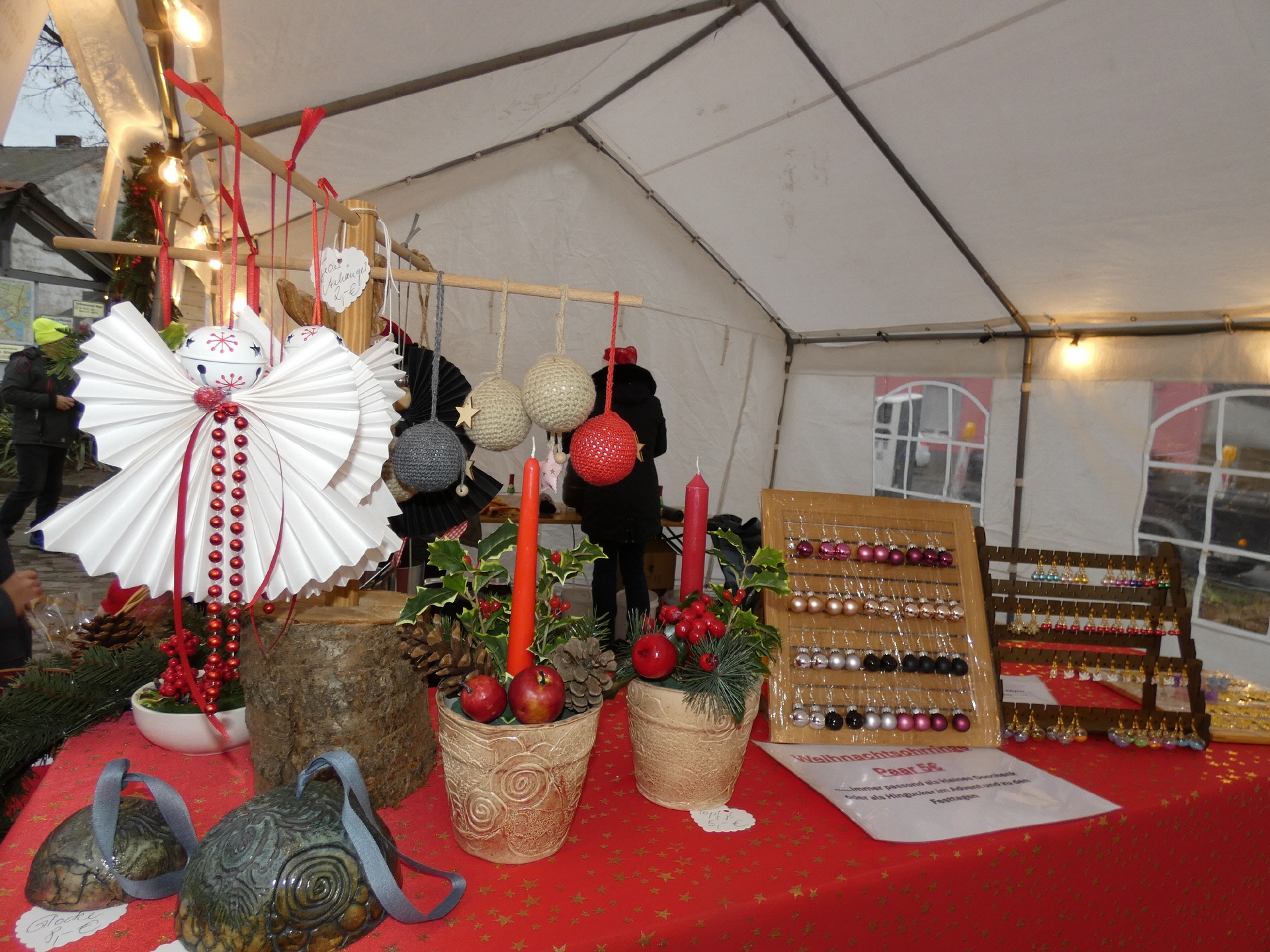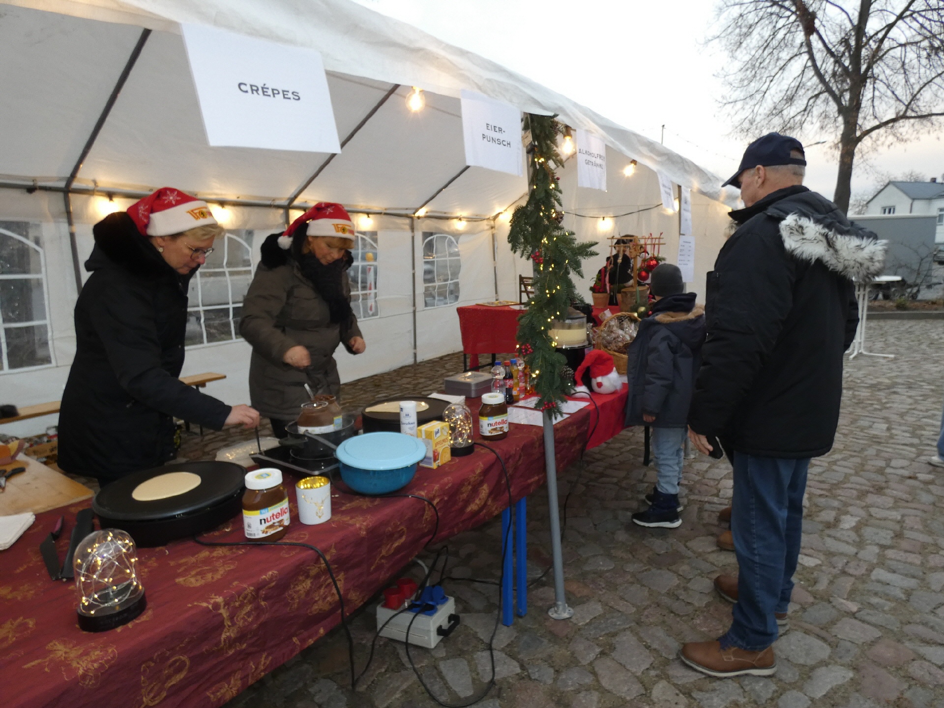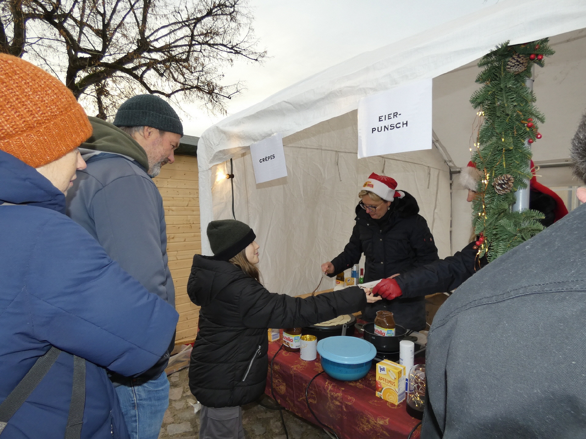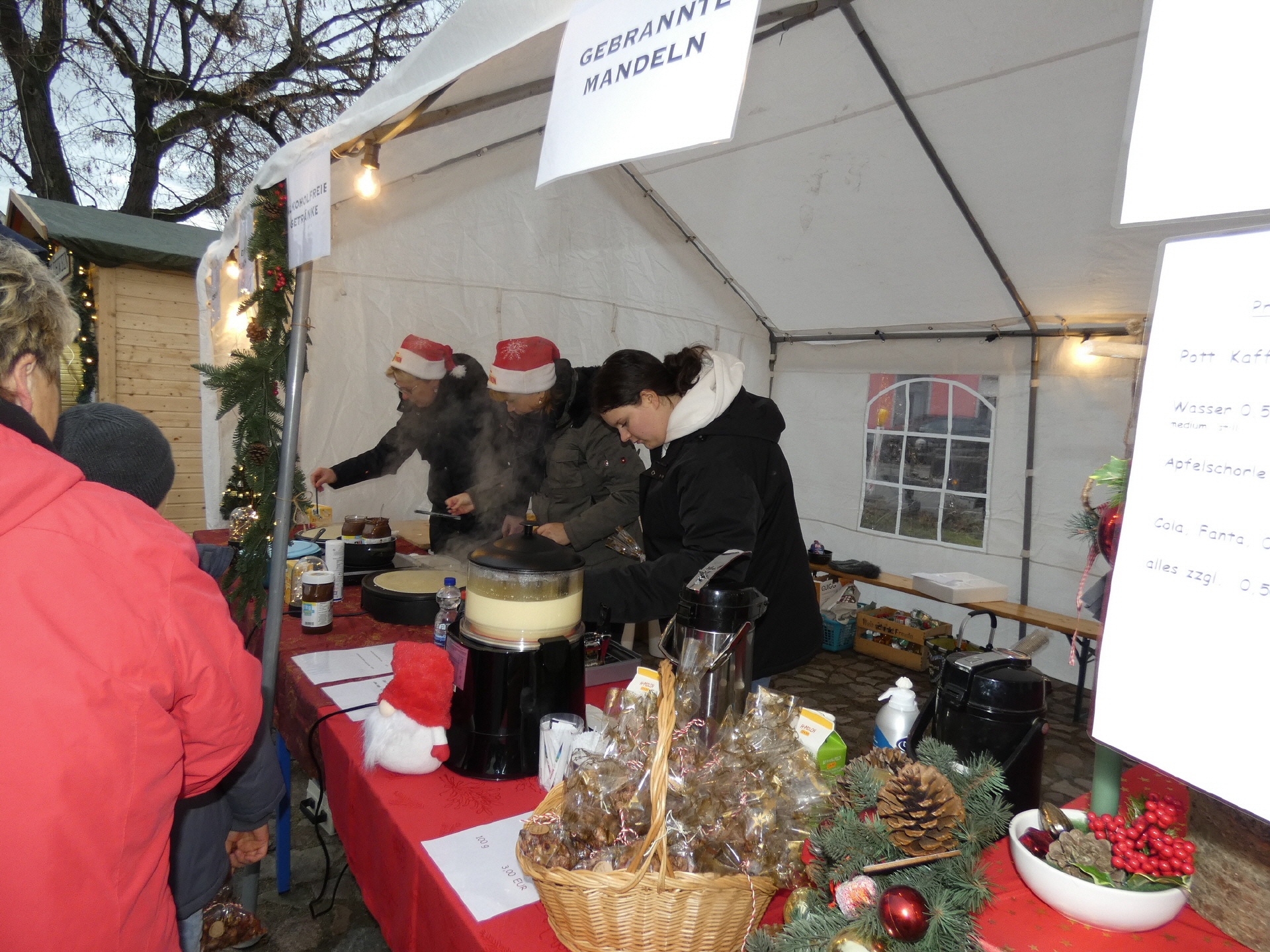Um 15 Uhr öffnete der Markt. Nach und nach füllte sich der Dorfplatz, und am Nachmittag war es dann gar nicht mehr so einfach, zu den einzelnen Ständen durchzukommen. An vielen Ständen konnte man sich mit heißen Getränken und leckeren Snacks gegen die herbstliche nasse Kälte wappnen.
