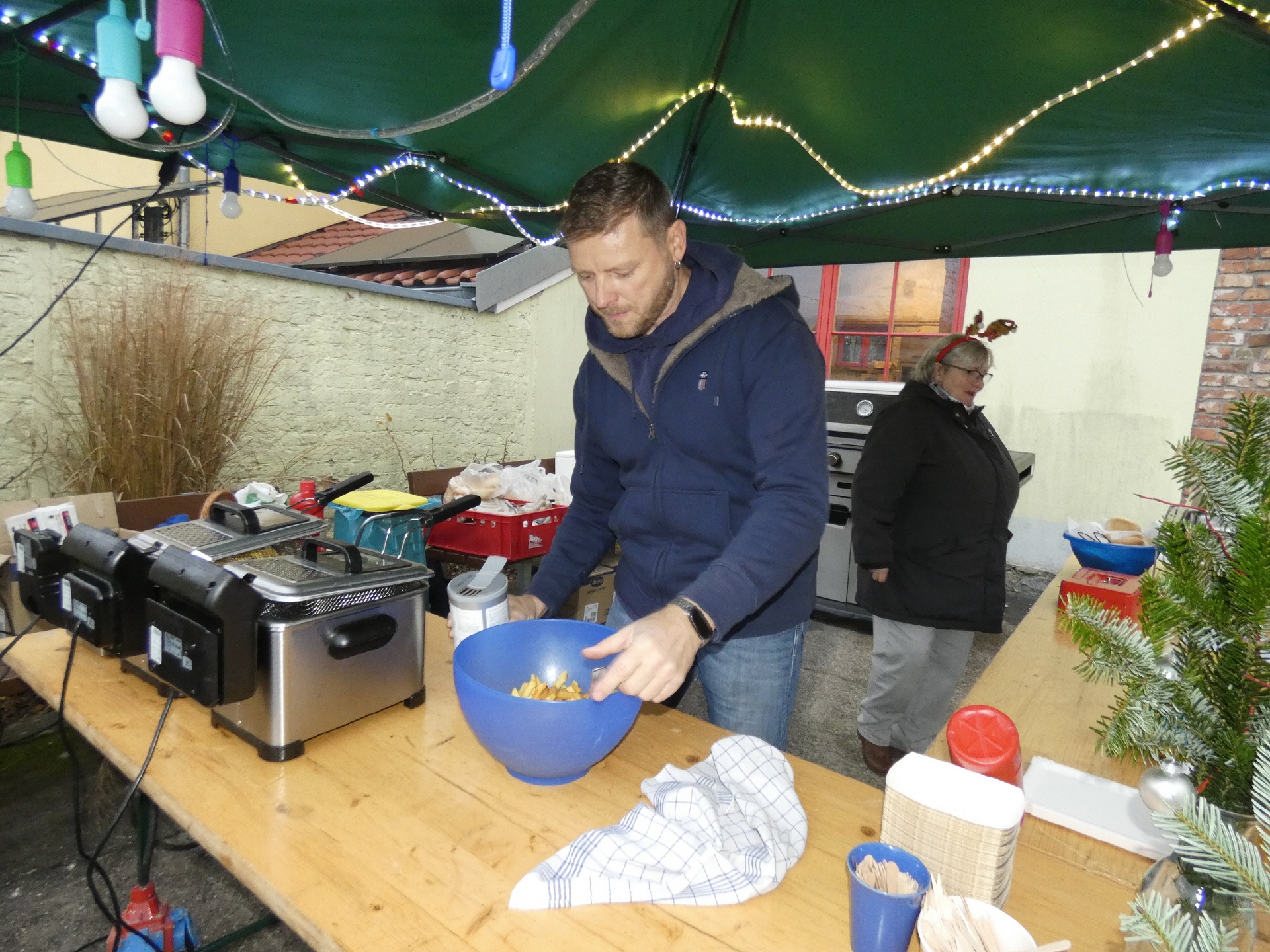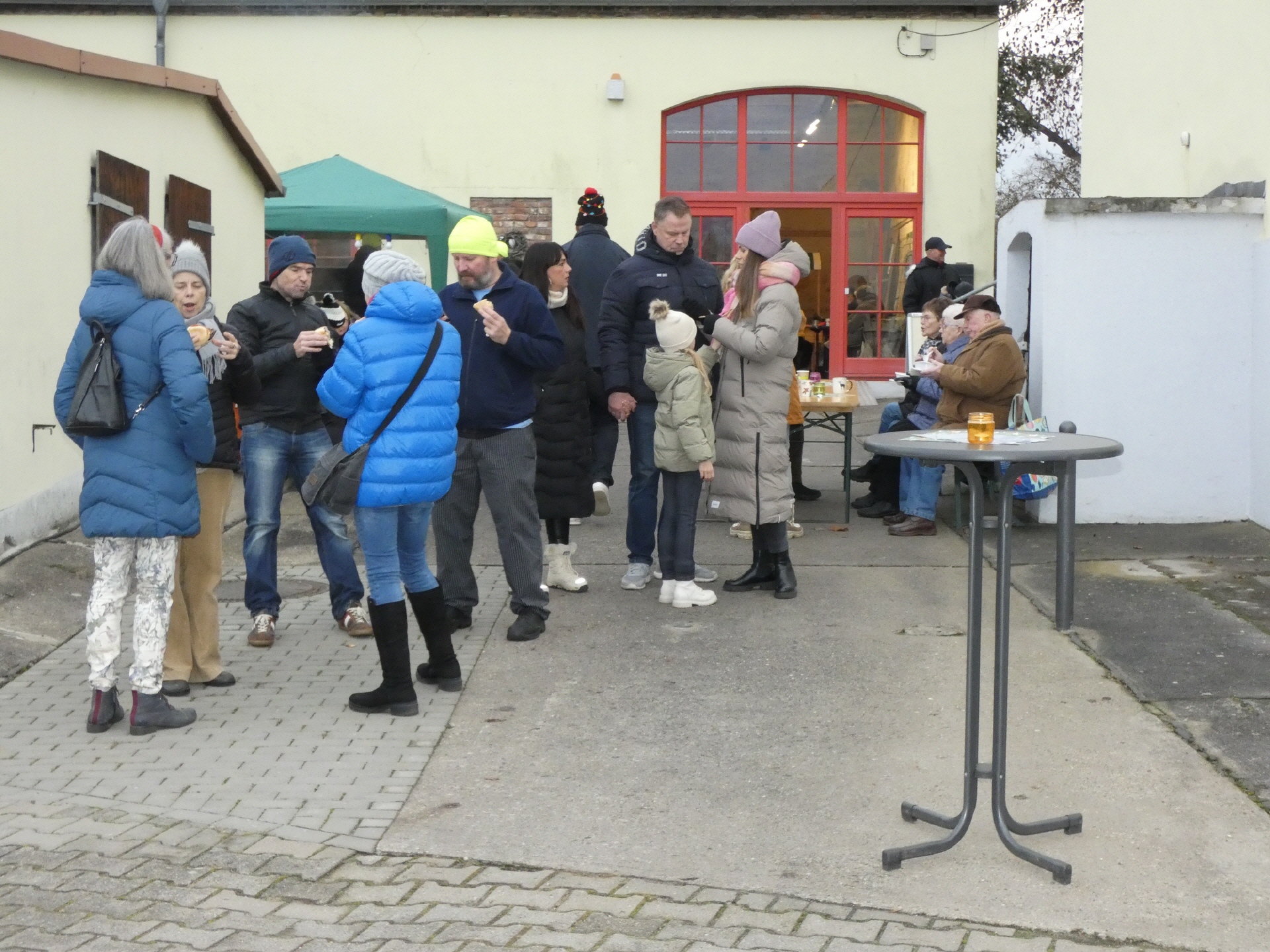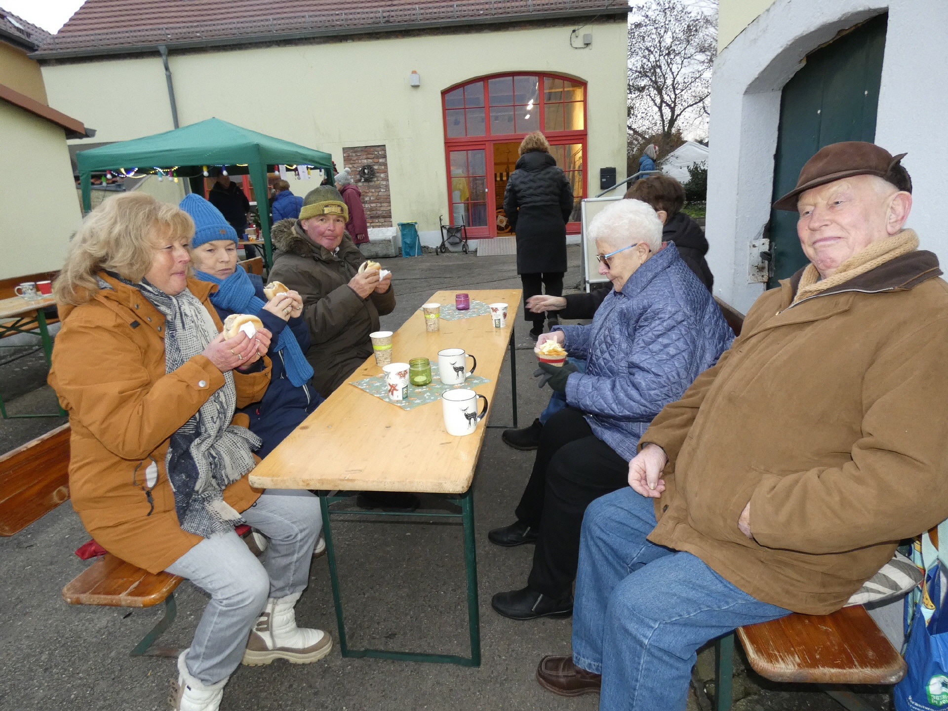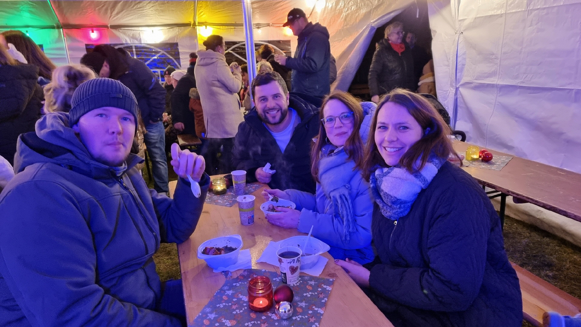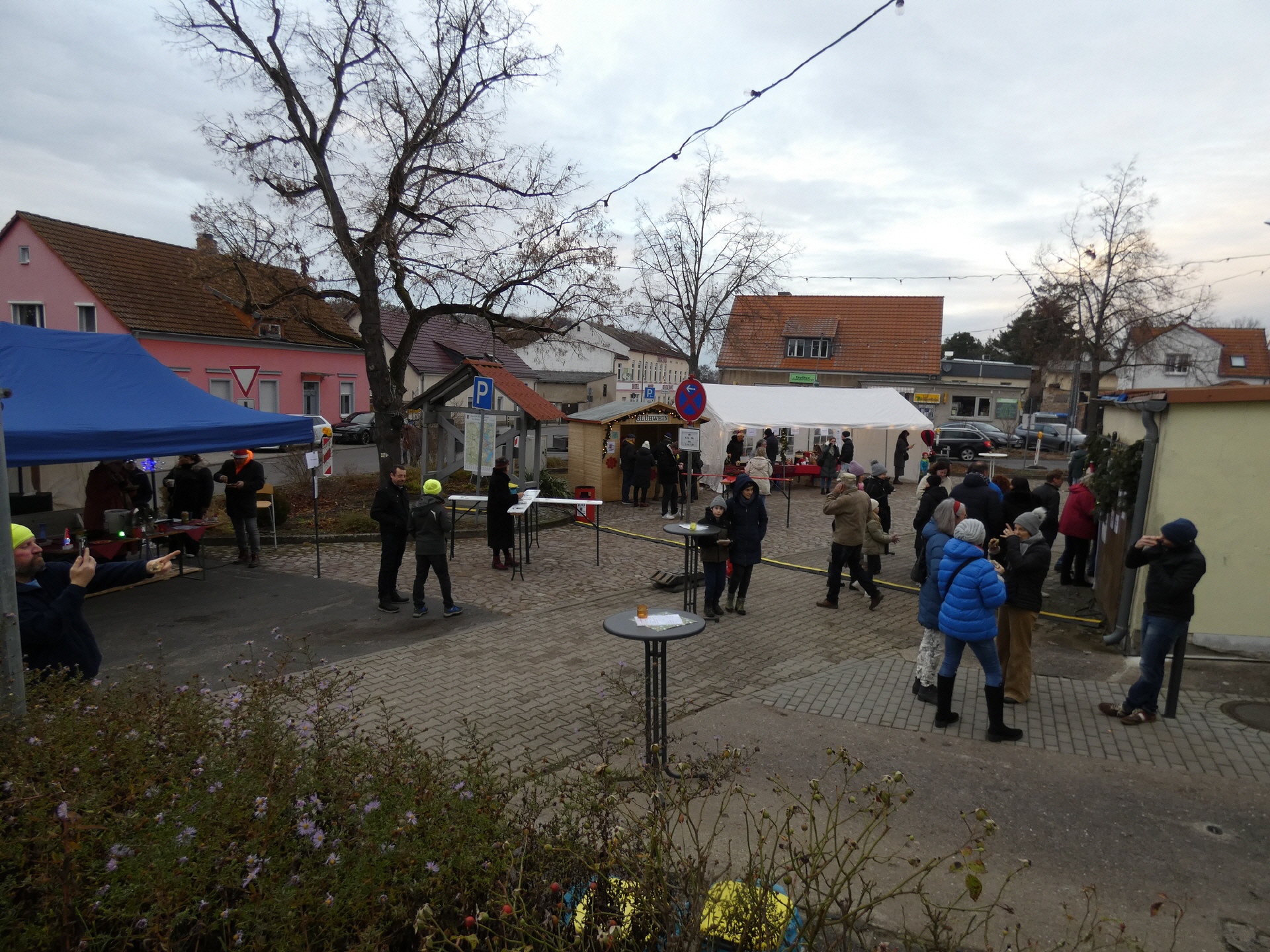 Um 15 Uhr öffnete der Markt. Nach und nach füllte sich der Dorfplatz, und am Nachmittag war es dann gar nicht mehr so einfach, zu den einzelnen Ständen durchzukommen. An vielen Ständen konnte man sich mit heißen Getränken und leckeren Snacks gegen die herbstliche nasse Kälte wappnen.