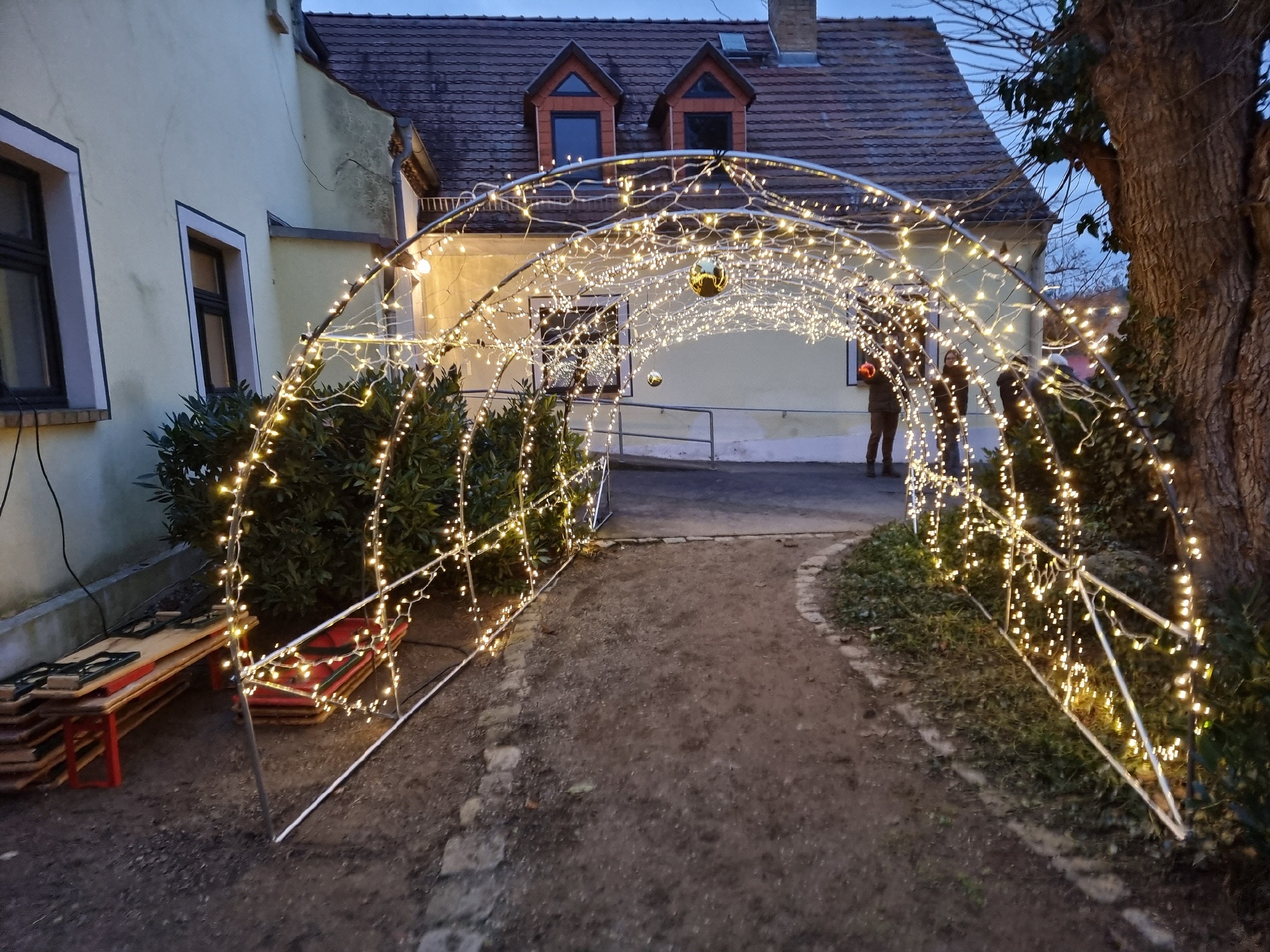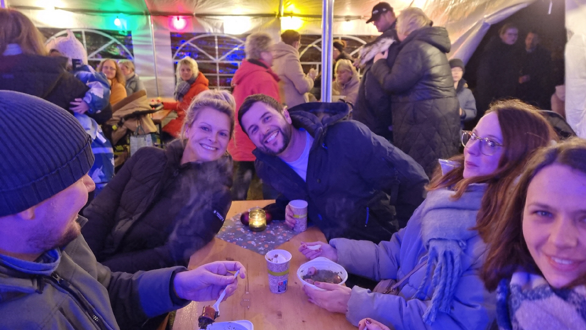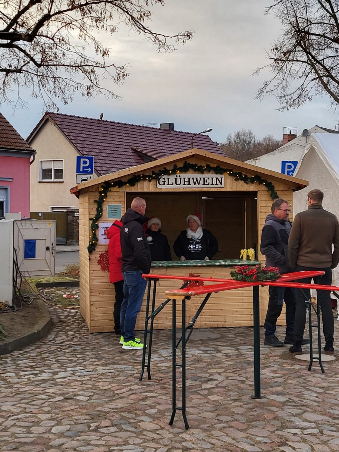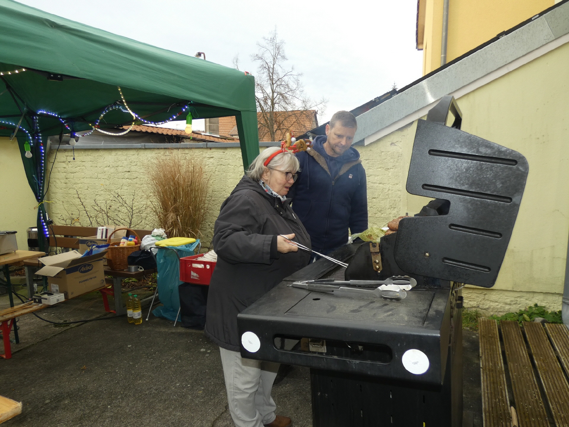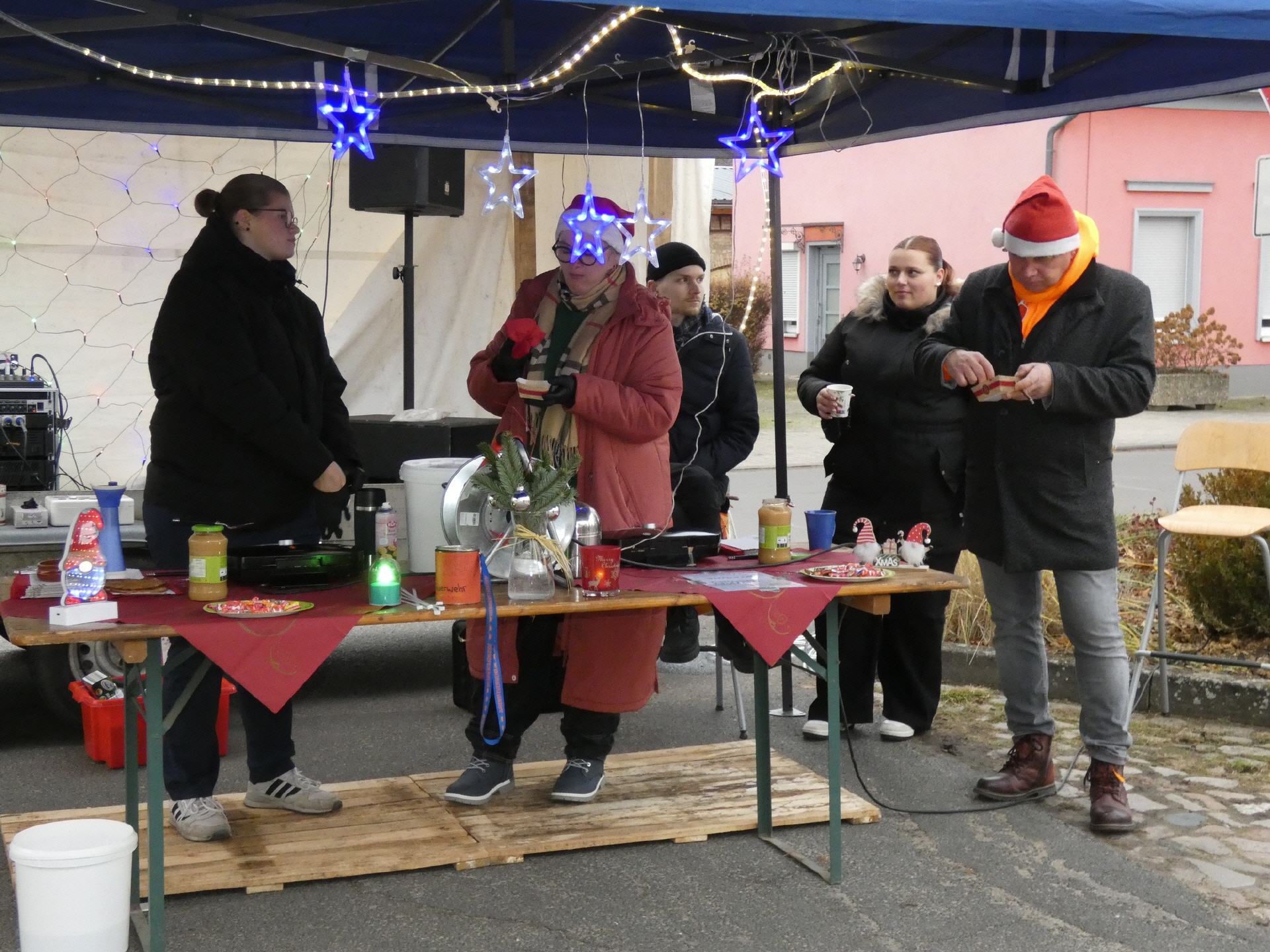 Um 15 Uhr öffnete der Markt. Nach und nach füllte sich der Dorfplatz, und am Nachmittag war es dann gar nicht mehr so einfach, zu den einzelnen Ständen durchzukommen. An vielen Ständen konnte man sich mit heißen Getränken und leckeren Snacks gegen die herbstliche nasse Kälte wappnen.