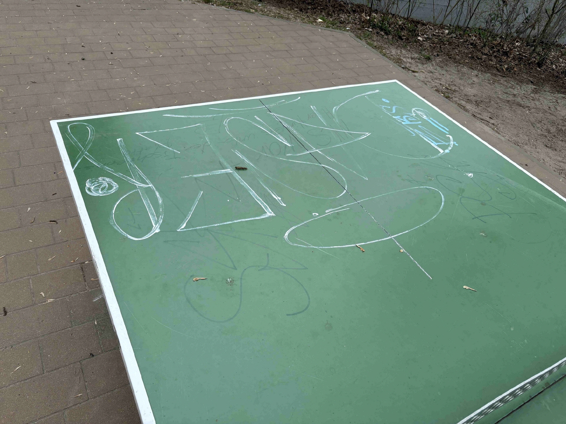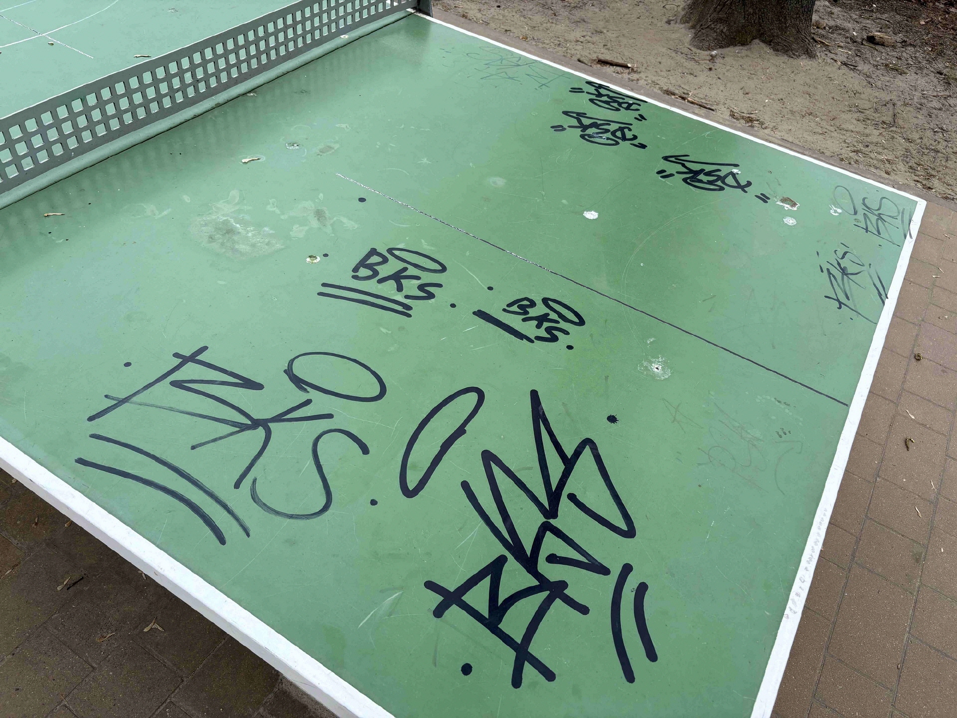 Seit einiger Zeit wird der Schulhof der Inselschule Töplitz durch Schmierereien auf Tischtennisplatten und Bänken verunstaltet.