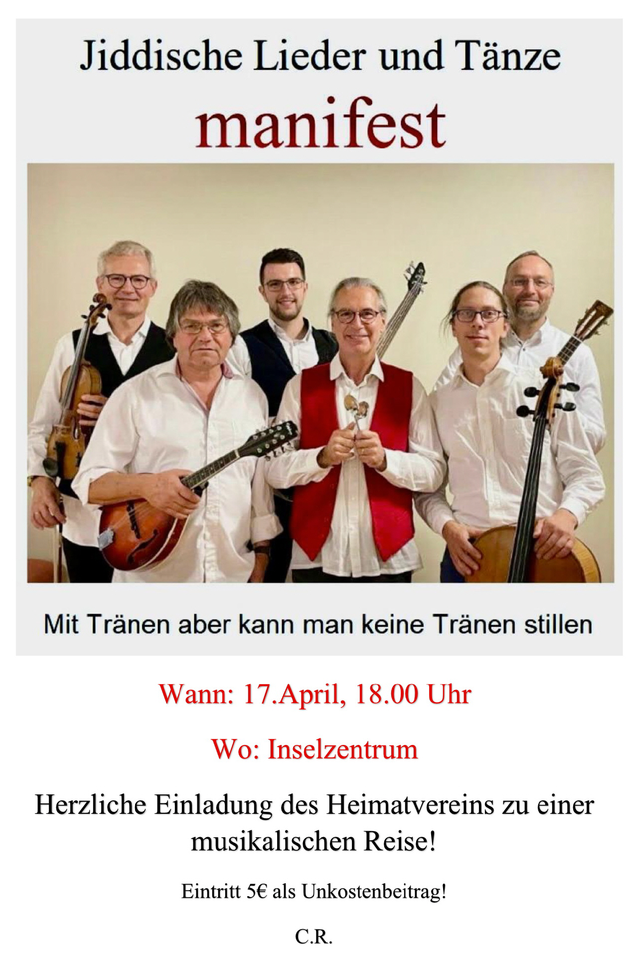 17.04.2026: Konzert mit der Gruppe "Manifest", Inselzentrum, 18 Uhr [mehr]