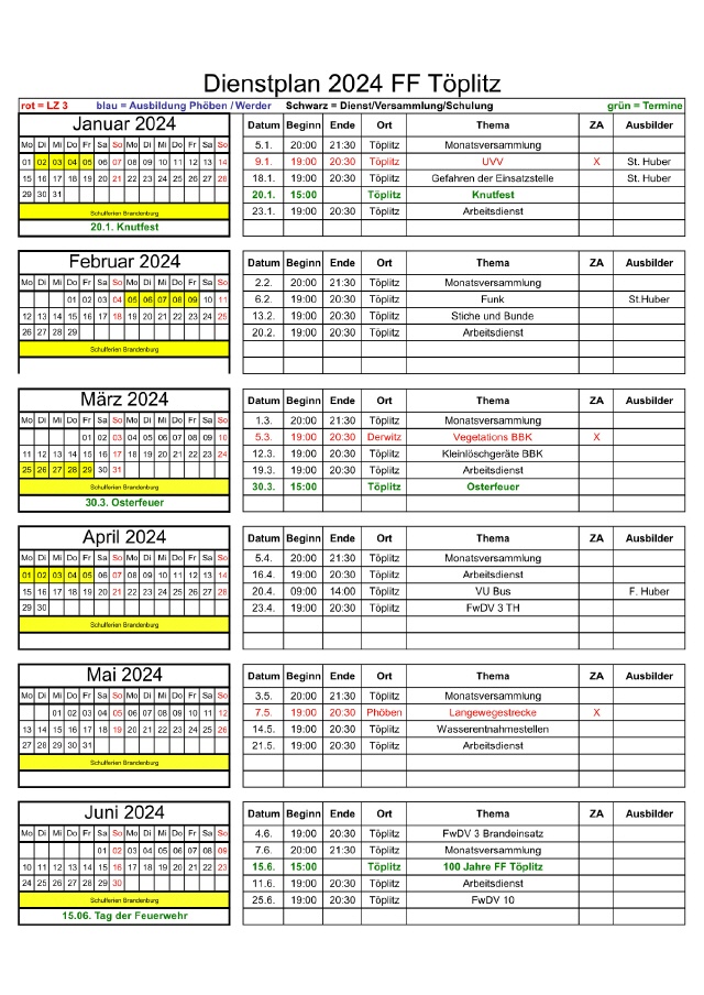 Sie sind hier: Startseite » Einsatzabteilung » Dienstplan Dienstplan Dienstplan 2024 Download Dienstplan [119 KB]