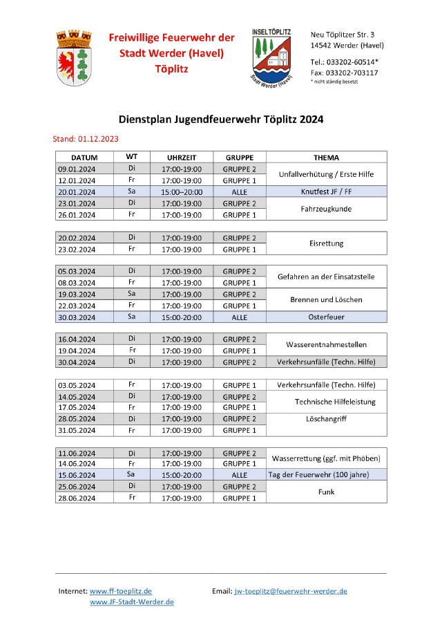 Sie sind hier: Startseite » Jugend » Dienstplan Dienstplan Dienstplan 2024 Download Dienstplan [183 KB]
