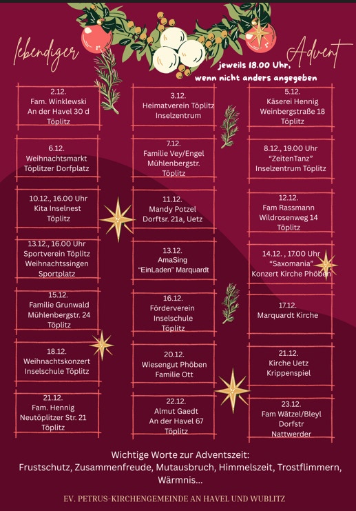 03.12.2025: Töplitz singt Weihnachtslieder, 18 Uhr, Inselzentrum