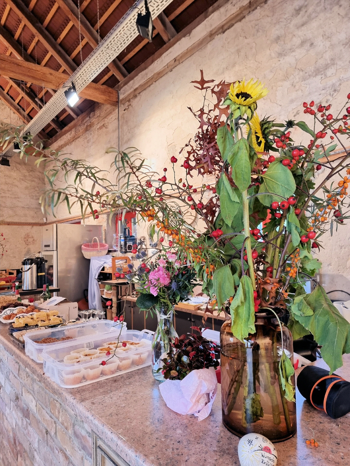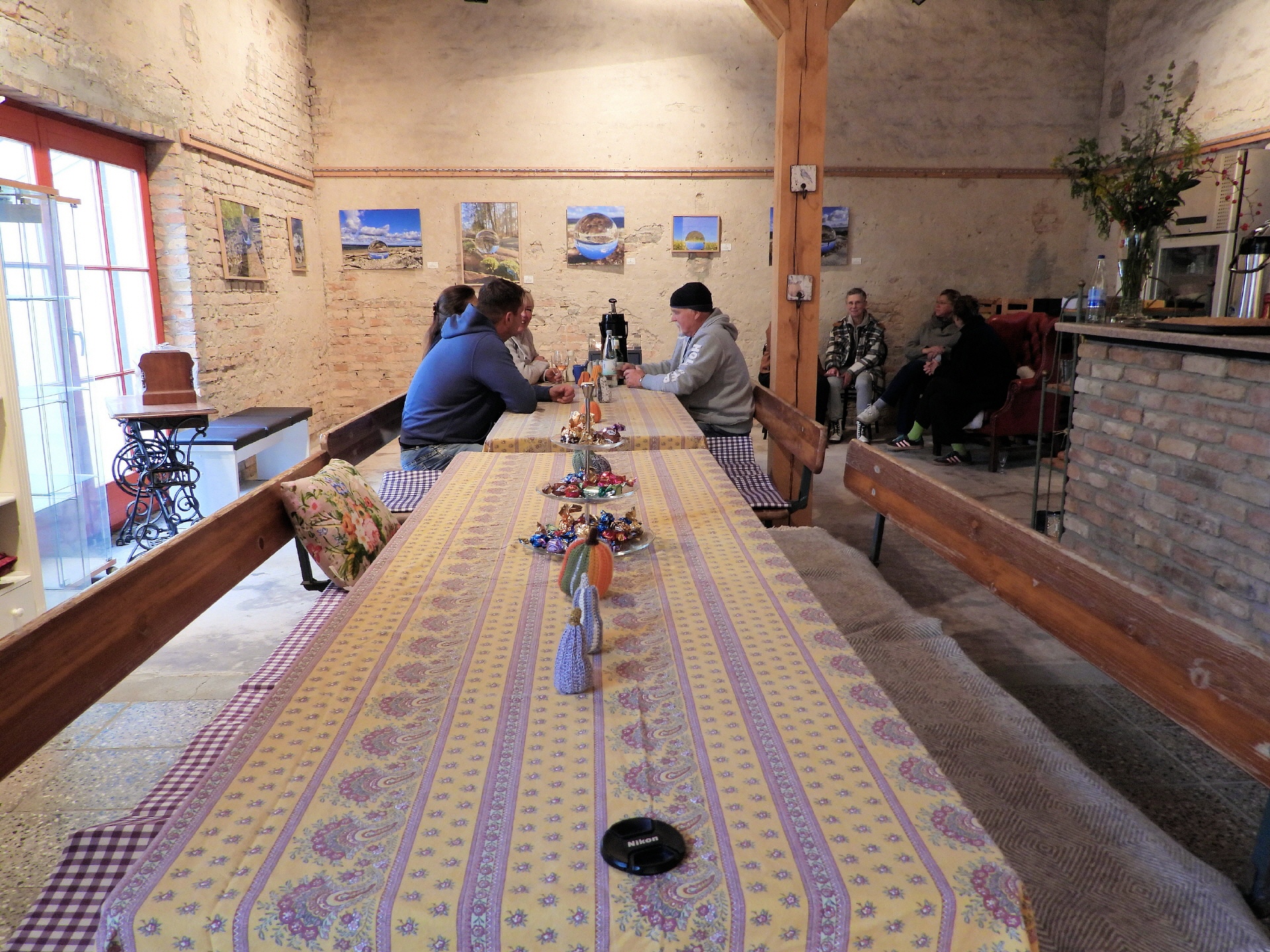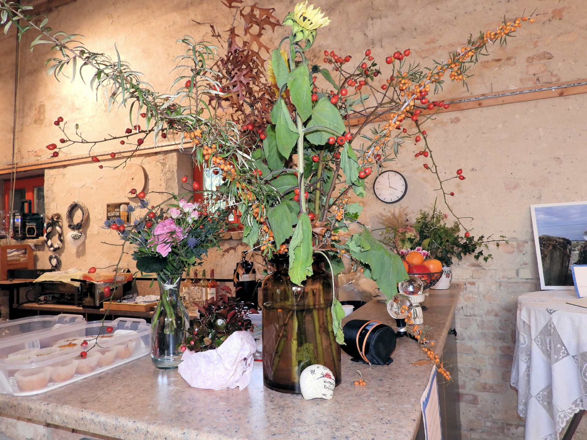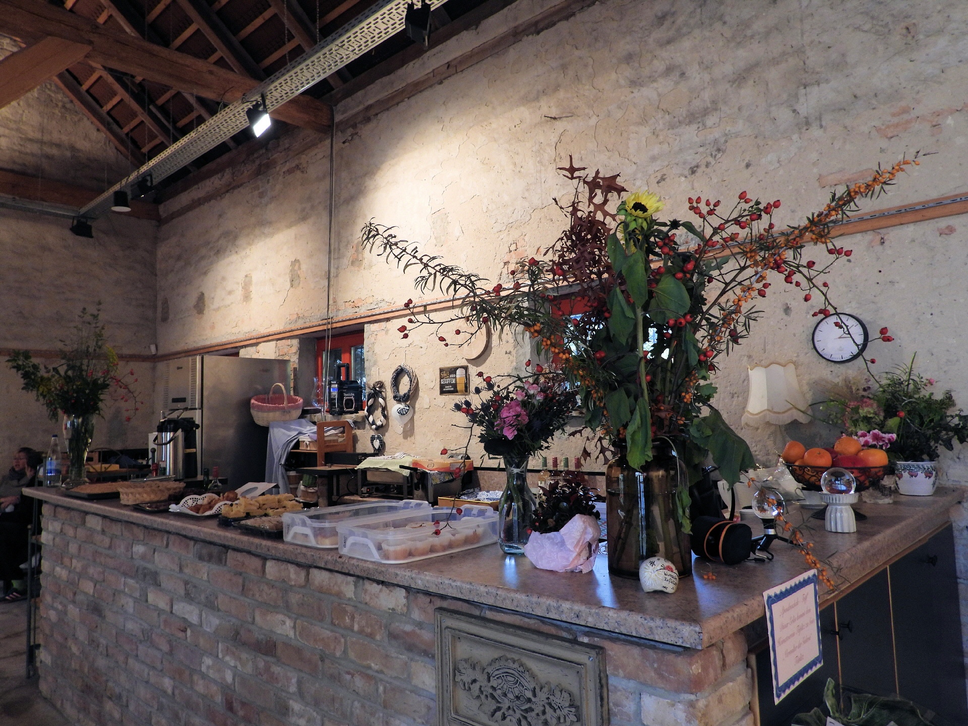 Im Angebot waren unter anderem: Rebenwein vom Klosterhof Töplitz, Rebenwein aus Höhnstedt, Bier und alkoholfreie Getränke, Kaffee und Kuchen in der Galerie, Flammkuchen, Kürbissuppe und Käseplatten.