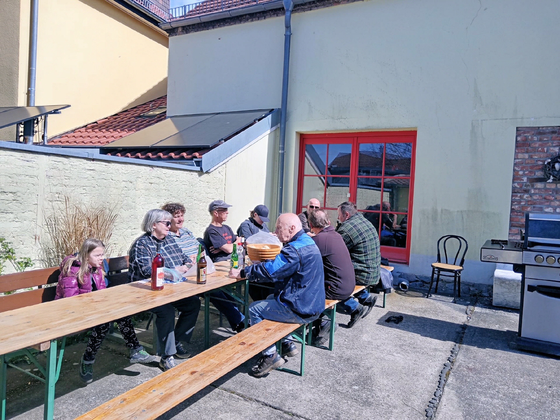 Zum Abschluss gab es als Stärkung und als Dankeschön noch vom Heimatverein Bratwurst vom Grill, etwas gegen den Durst und diesmal auch wieder leckeres Brot mit Aufstrich von Ilona Klapper (Ortsbeirat).