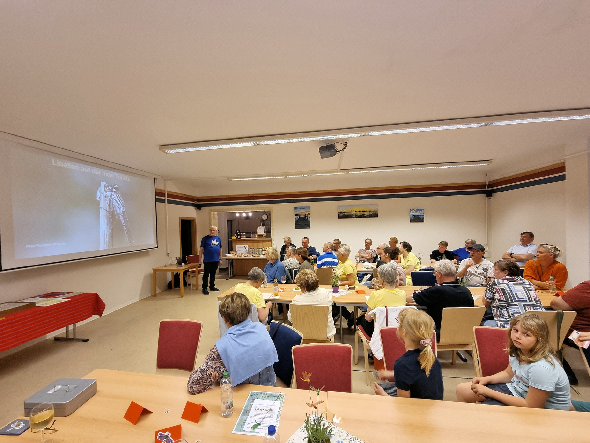 Mit vielen beeindruckenden Fotos und Videos aus dem natürlichen Lebensraum der Libellen hat Dr. Ramdhor uns alle in seinen Bann gezogen. Es gab reichlich Gelegenheit, Fragen zu stellen und in die bunte Welt dieser faszinierenden Insekten einzutauchen. Besonders die jüngsten Gäste waren mit Feuereifer dabei und haben sogar ihre eigenen Erlebnisse und Entdeckungen von der Insel mit uns geteilt.